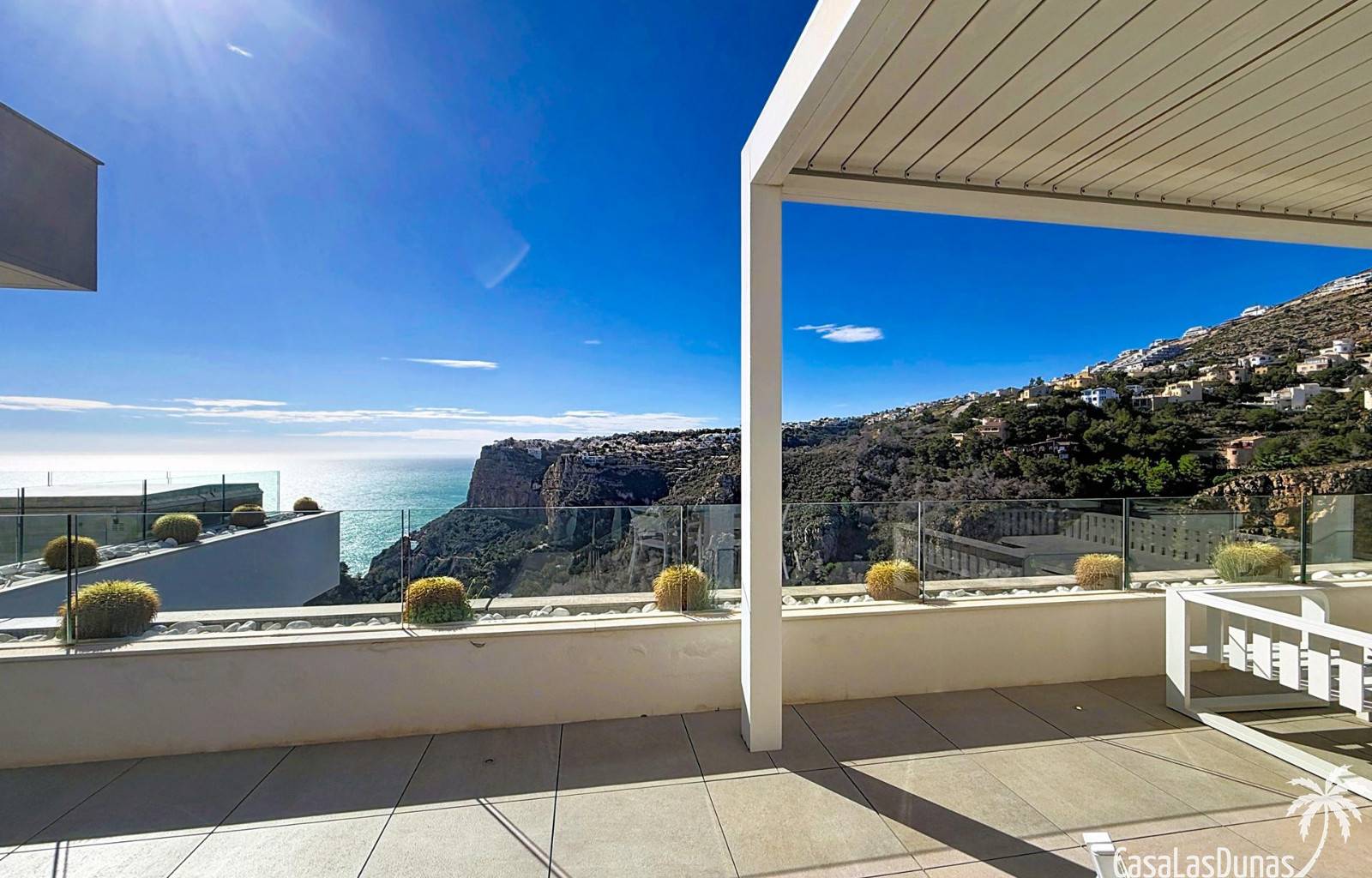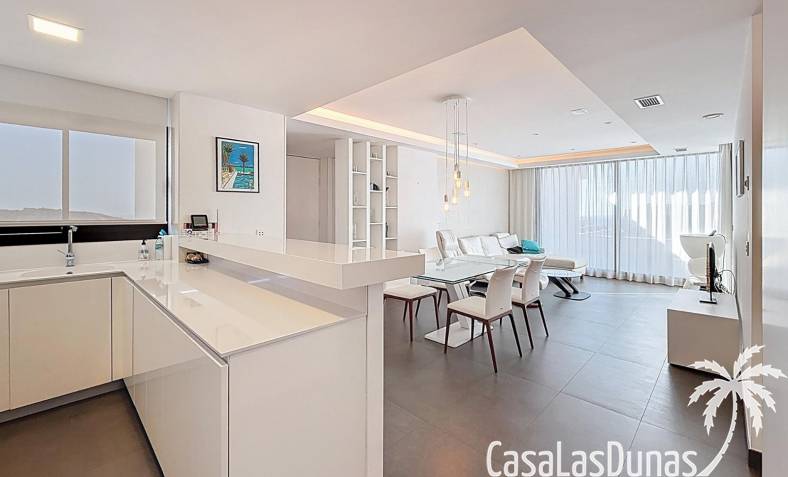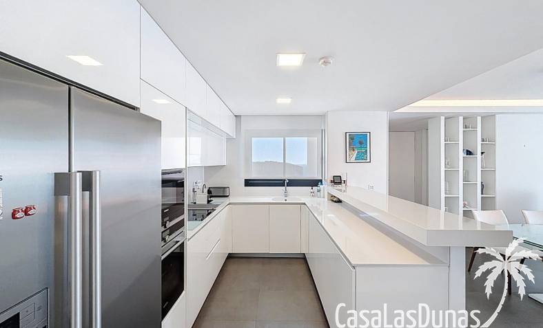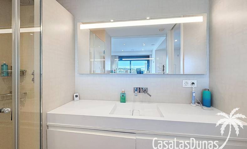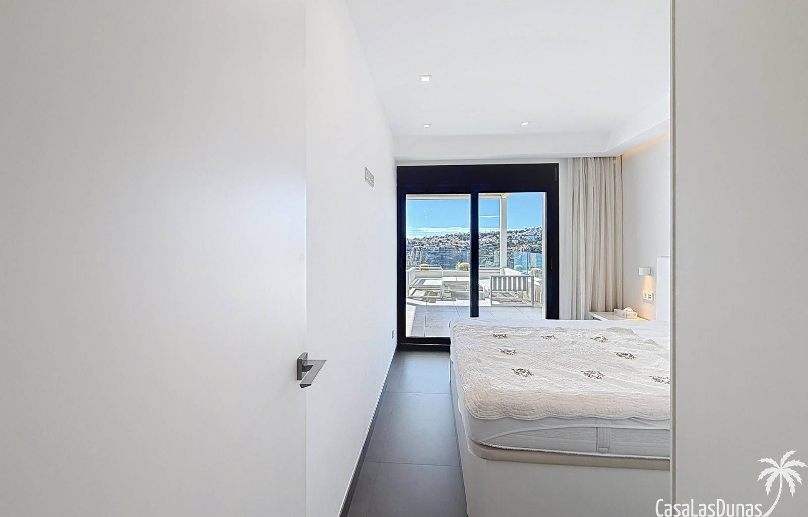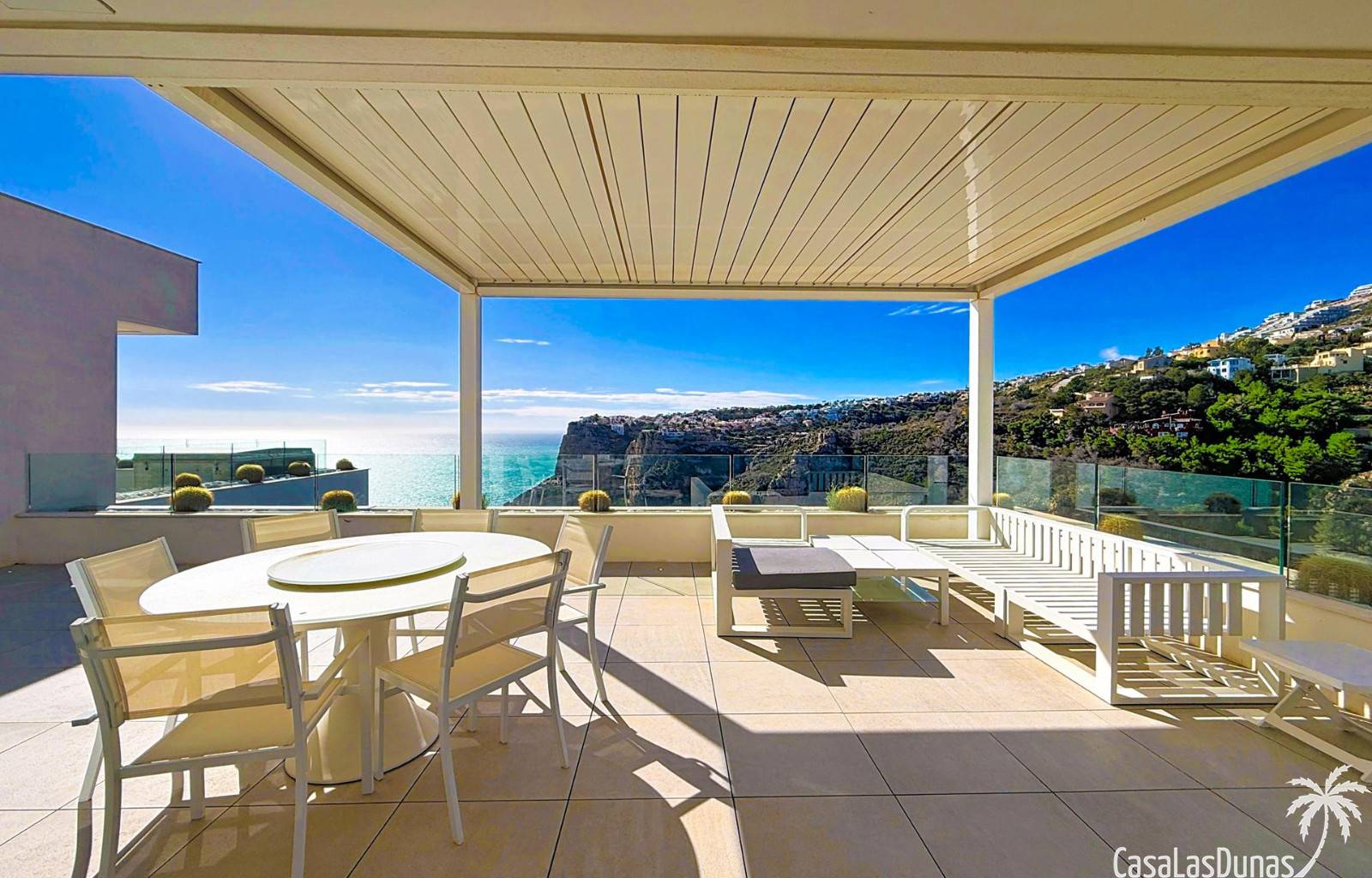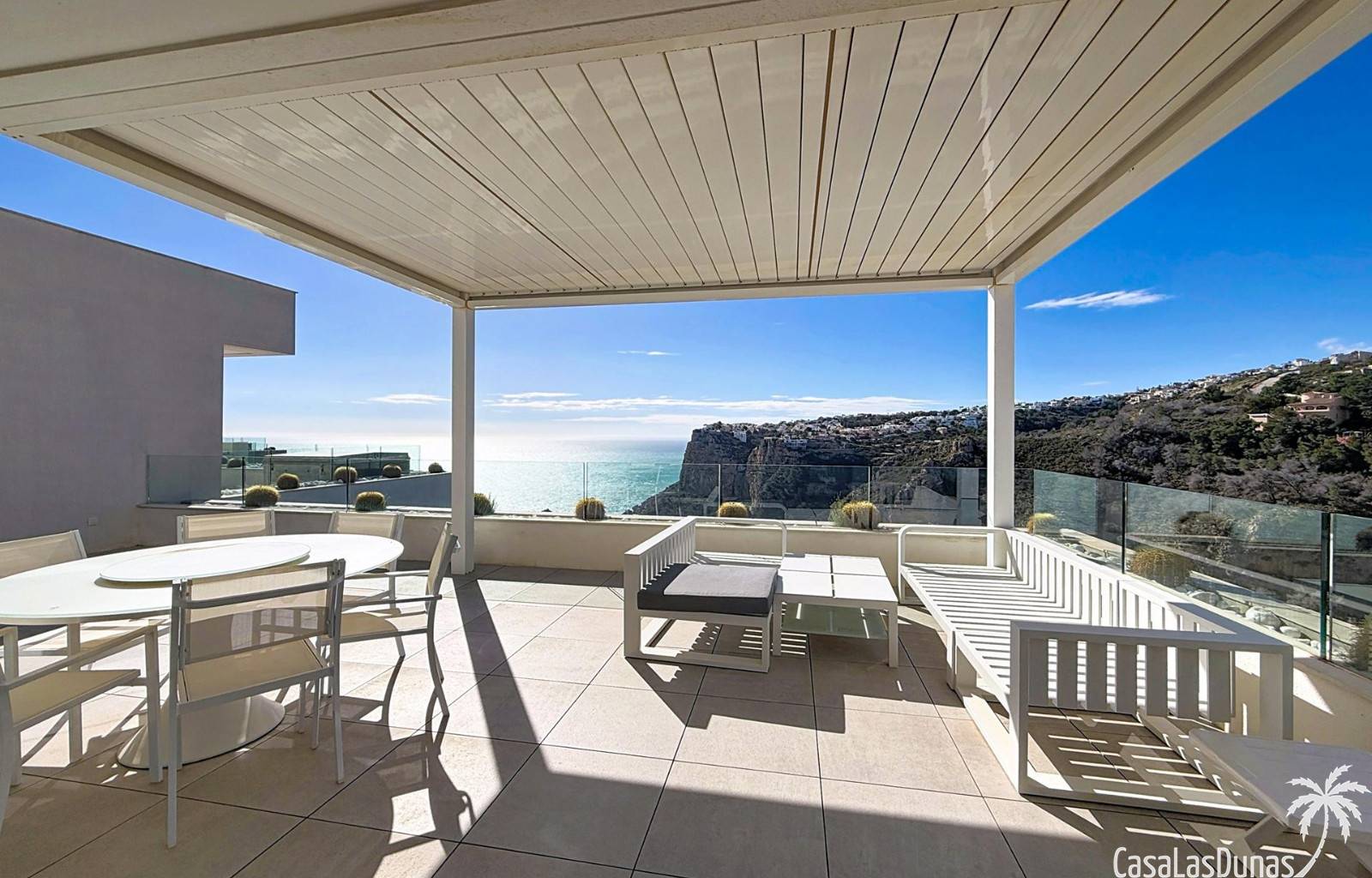Dieses Penthouse in erster Reihe auf der Cumbre liegt auf einer Klippe mit atemberaubendem Blick auf das Mittelmeer und wurde 2015 in einem modernen Komplex mit Innen- und Außenpools erbaut. Die Immobilie bietet 122 m² Wohnfläche und eine großzügige 70 m² große Terrasse. Das Apartment umfasst eine Eingangshalle, eine Küche mit Hauswirtschaftsraum/Abstellraum, ein geräumiges Wohn-/Esszimmer, ein Gästezimmer mit separatem Bad und ein geräumiges Hauptschlafzimmer mit eigenem Bad. Das Apartment bietet eine optimale Raumaufteilung mit Zugang zur vorderen Terrasse vom Wohnbereich und von beiden Schlafzimmern. Ursprünglich war es eine Dreizimmerwohnung, wobei ein Schlafzimmer für mehr Wohnraum geopfert wurde.
