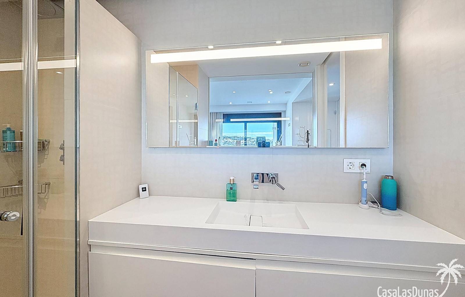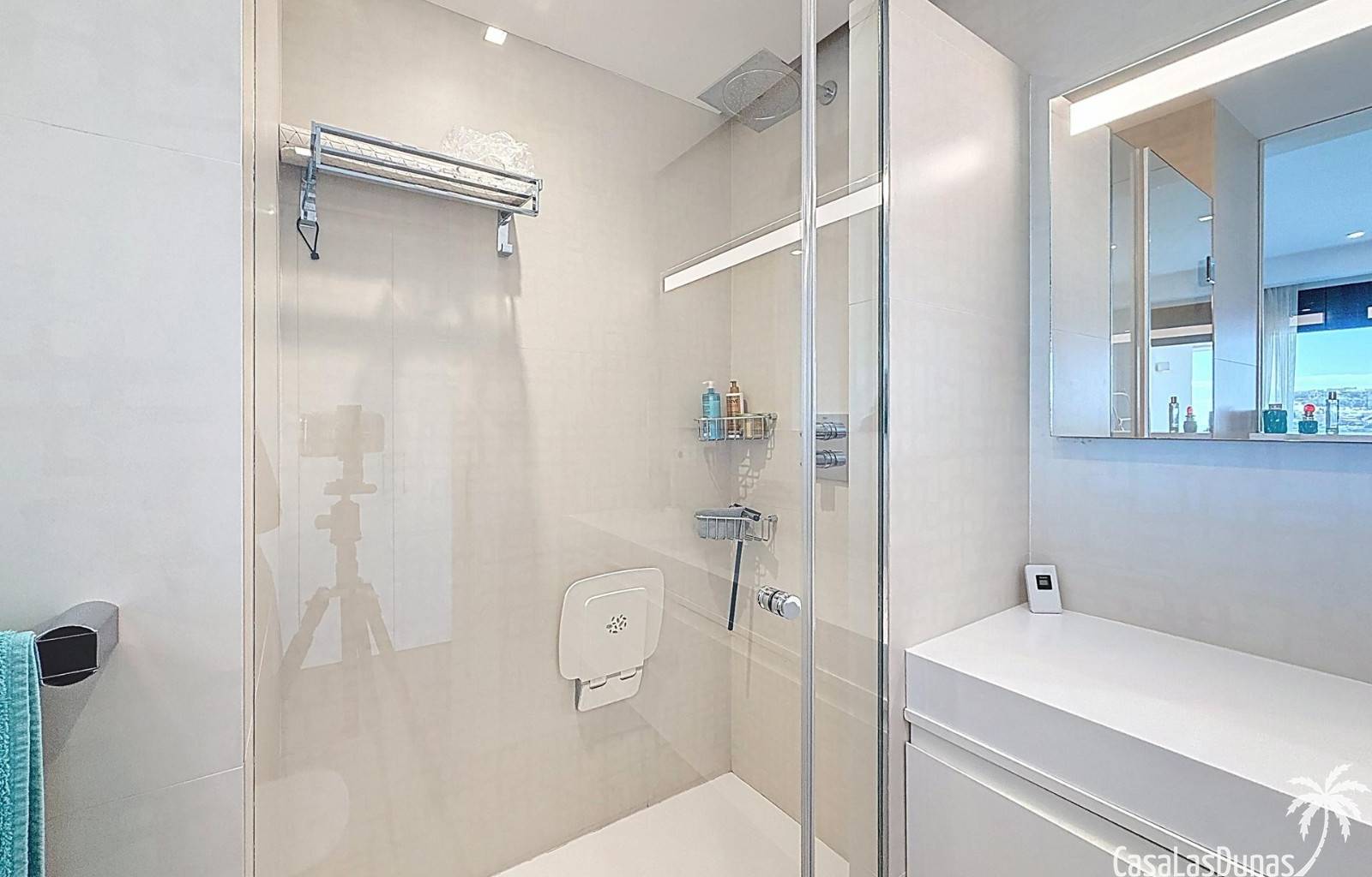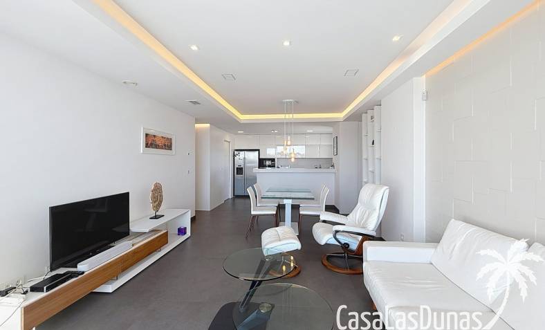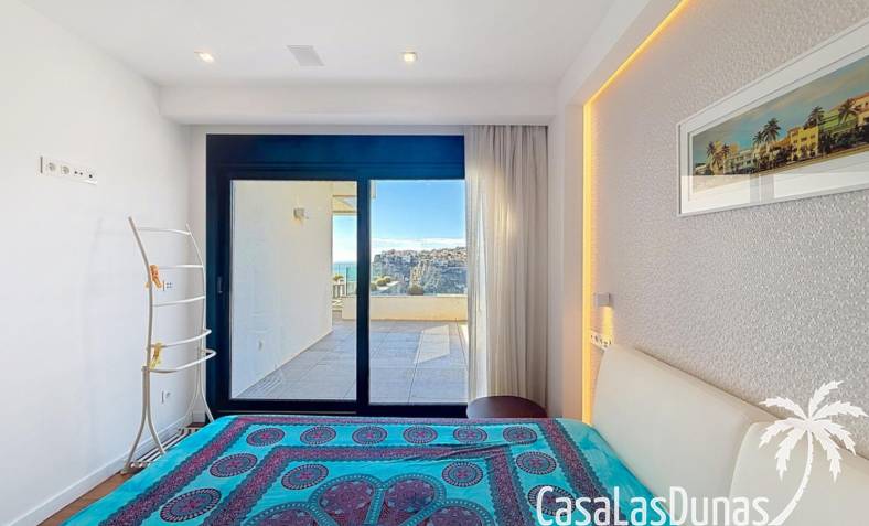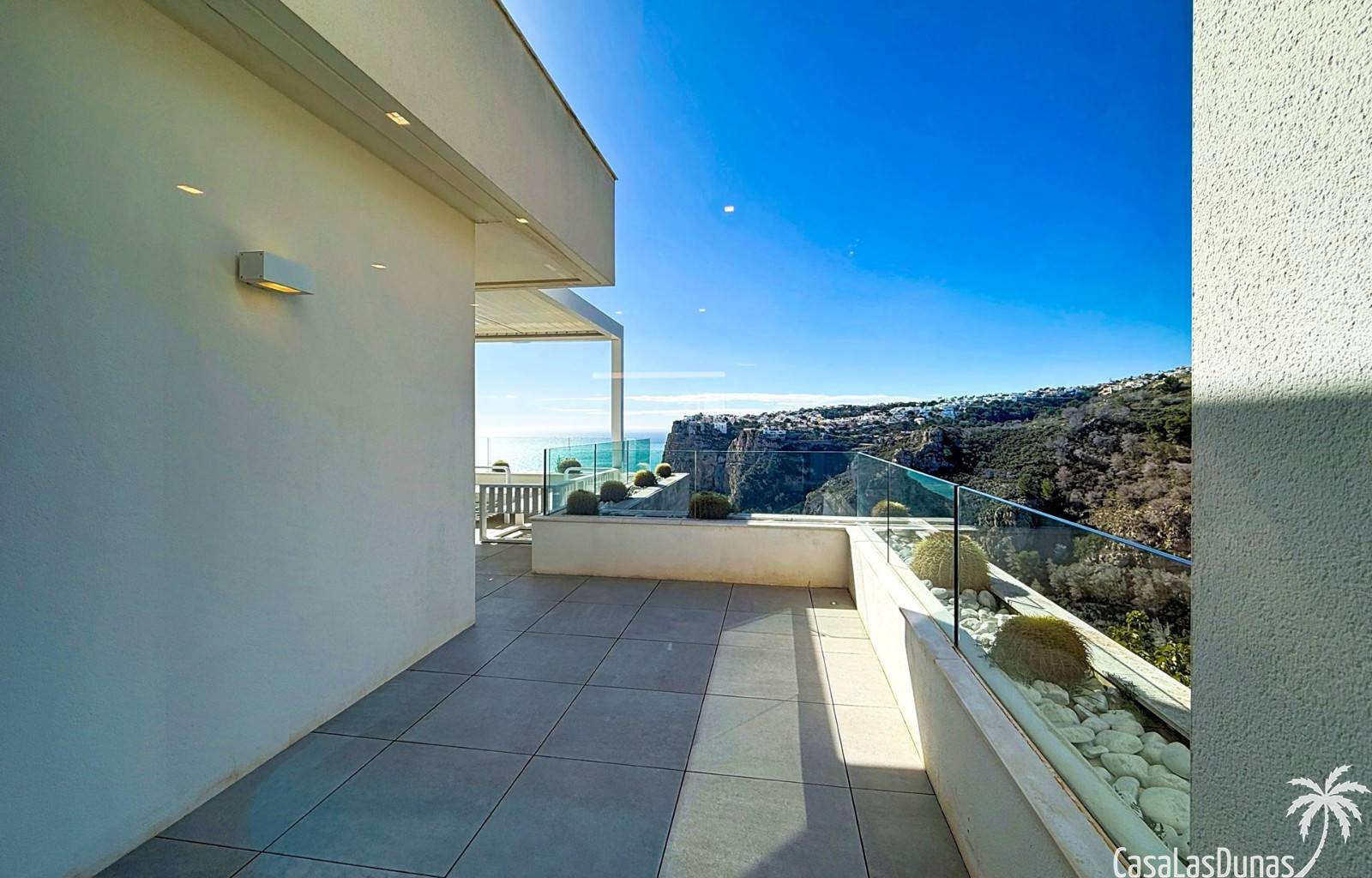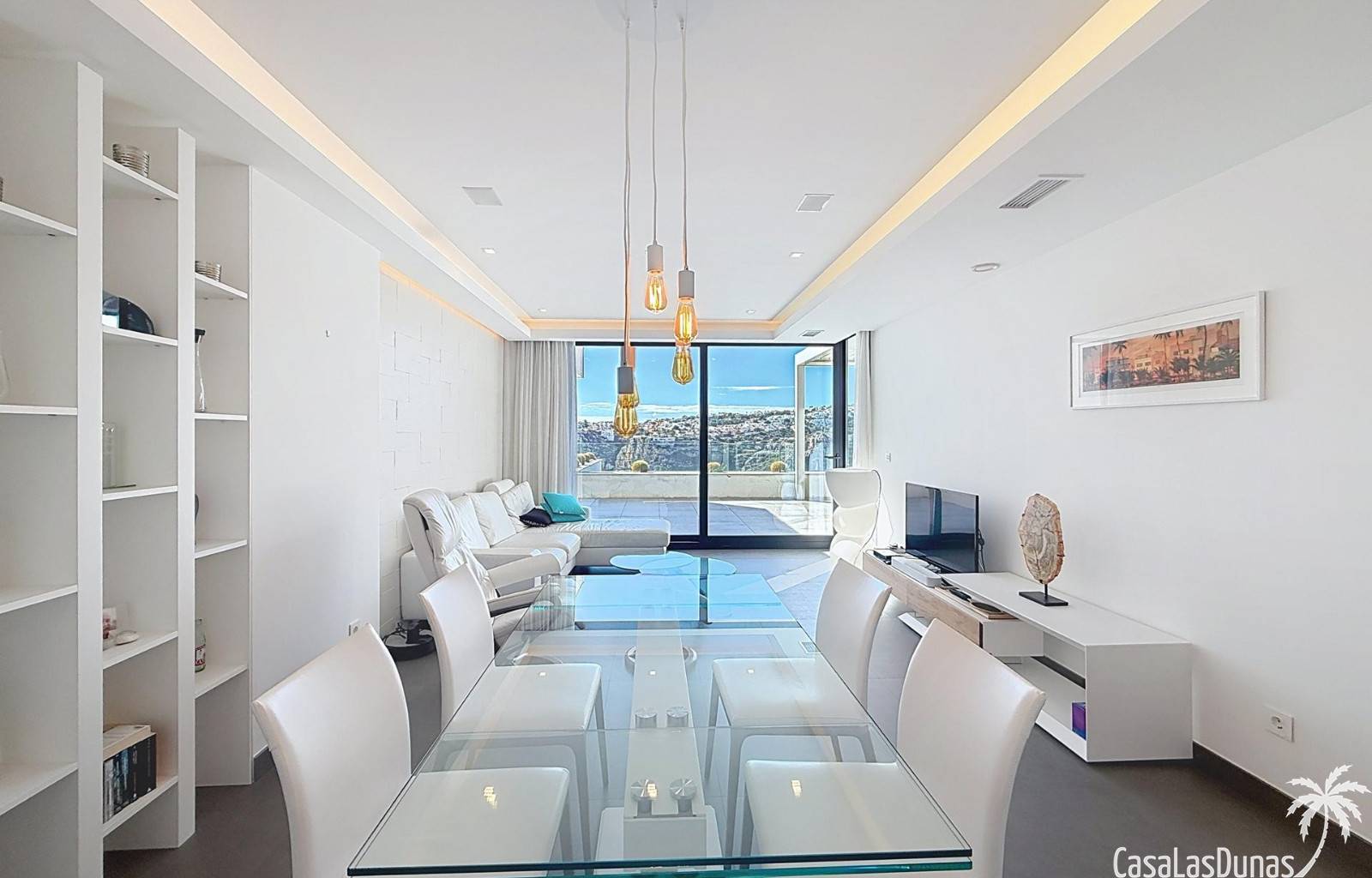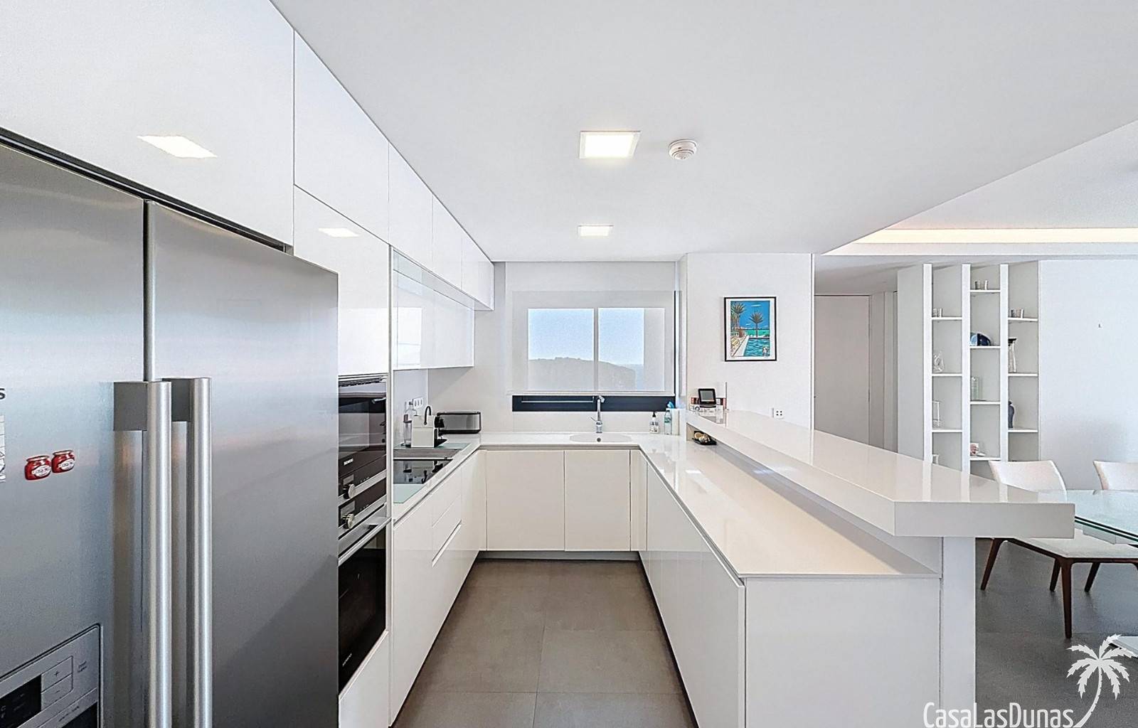 Dieses Penthouse in erster Reihe auf der Cumbre liegt auf einer Klippe mit atemberaubendem Blick auf das Mittelmeer und wurde 2015 in einem modernen Komplex mit Innen- und Außenpools erbaut. Die Immobilie bietet 122 m² Wohnfläche und eine großzügige 70 m² große Terrasse. Das Apartment umfasst eine Eingangshalle, eine Küche mit Hauswirtschaftsraum/Abstellraum, ein geräumiges Wohn-/Esszimmer, ein Gästezimmer mit separatem Bad und ein geräumiges Hauptschlafzimmer mit eigenem Bad. Das Apartment bietet eine optimale Raumaufteilung mit Zugang zur vorderen Terrasse vom Wohnbereich und von beiden Schlafzimmern. Ursprünglich war es eine Dreizimmerwohnung, wobei ein Schlafzimmer für mehr Wohnraum geopfert wurde.