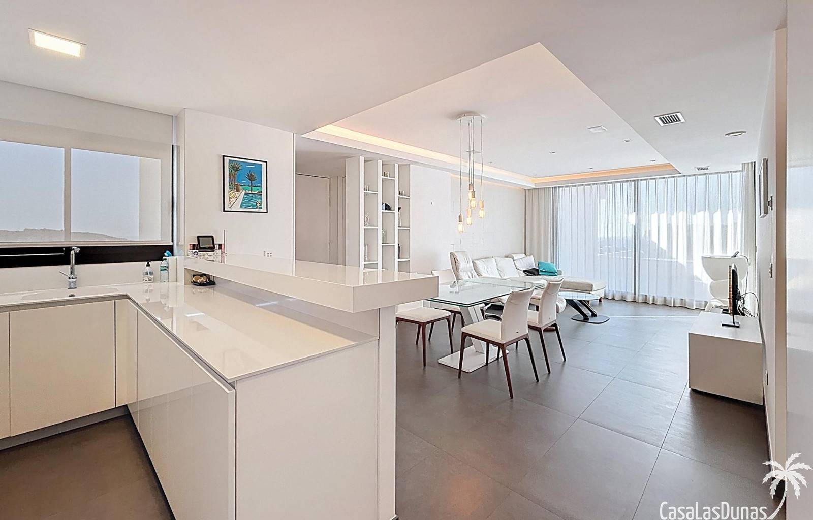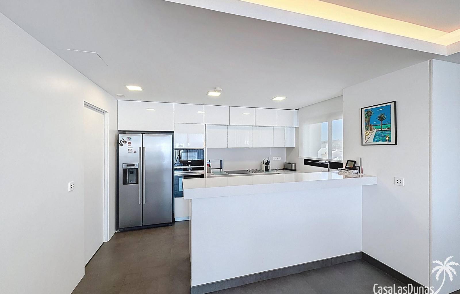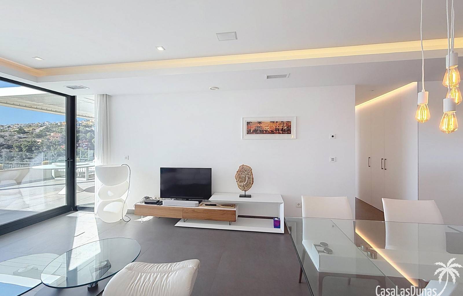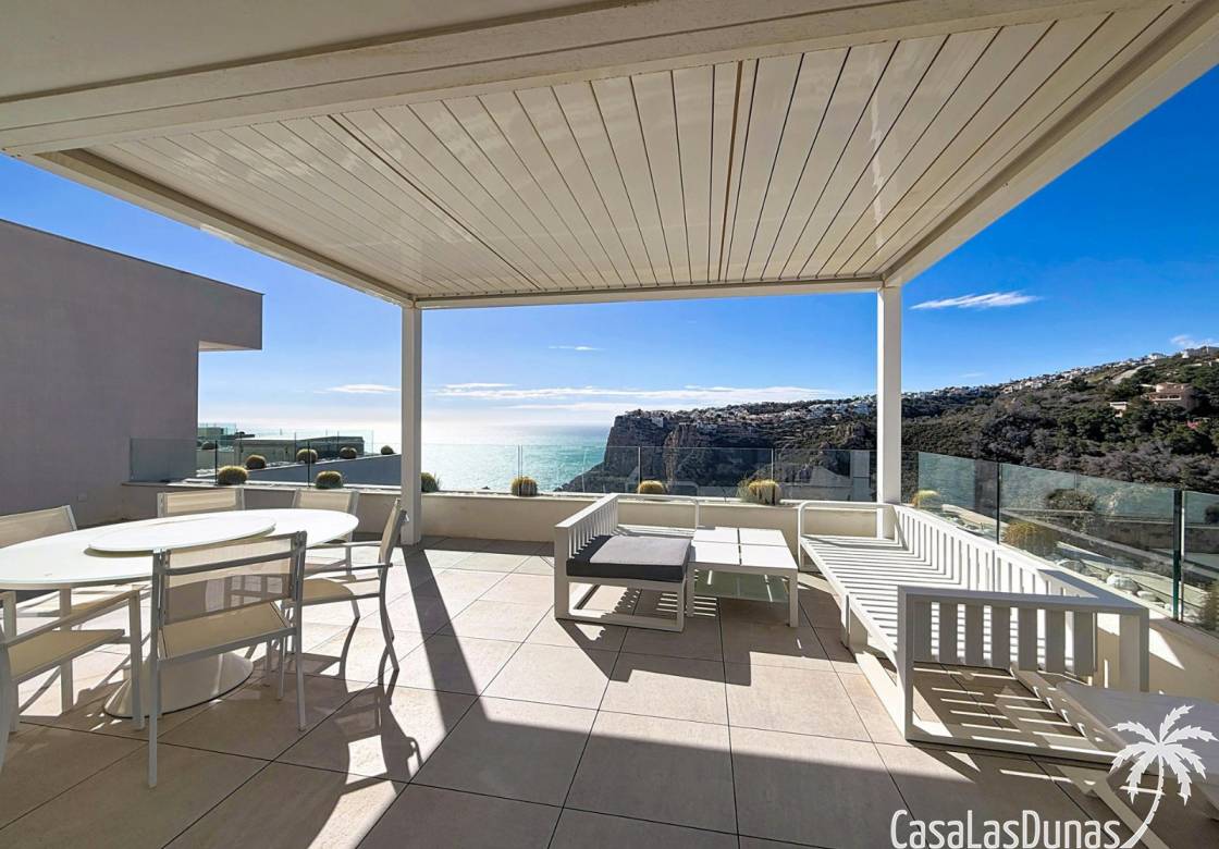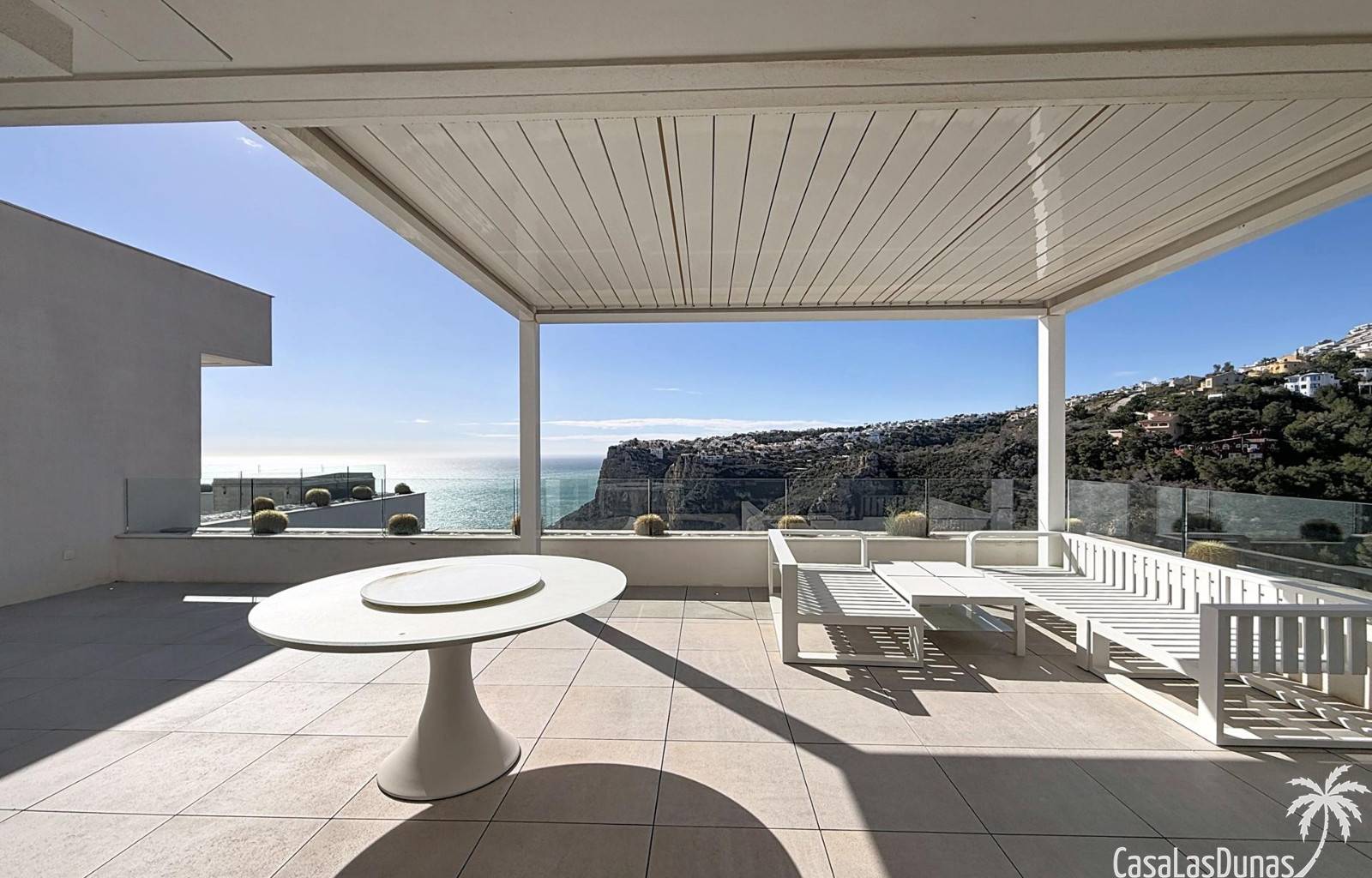 Dieses Penthouse in erster Reihe auf der Cumbre liegt auf einer Klippe mit atemberaubendem Blick auf das Mittelmeer und wurde 2015 in einem modernen Komplex mit Innen- und Außenpools erbaut. Die Immobilie bietet 122 m² Wohnfläche und eine großzügige 70 m² große Terrasse. Das Apartment umfasst eine Eingangshalle, eine Küche mit Hauswirtschaftsraum/Abstellraum, ein geräumiges Wohn-/Esszimmer, ein Gästezimmer mit separatem Bad und ein geräumiges Hauptschlafzimmer mit eigenem Bad. Das Apartment bietet eine optimale Raumaufteilung mit Zugang zur vorderen Terrasse vom Wohnbereich und von beiden Schlafzimmern. Ursprünglich war es eine Dreizimmerwohnung, wobei ein Schlafzimmer für mehr Wohnraum geopfert wurde.