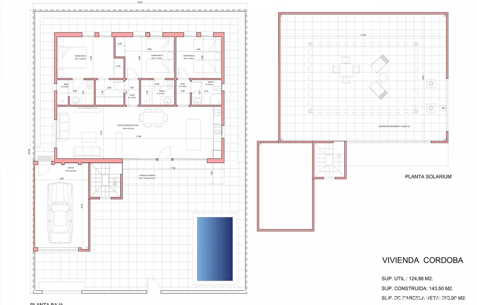 Das Haus besteht aus einem hellen Wohn-/Esszimmer, einer modernen offenen Küche, zwei Schlafzimmern mit Einbauschränken, zwei Badezimmern, einem 99,50 m² großen Solarium, einer großzügigen Terrasse mit Garten, einem privaten Swimmingpool und einem privaten Parkplatz.