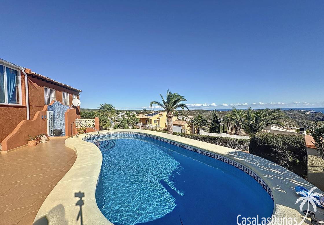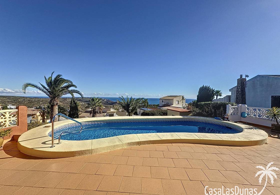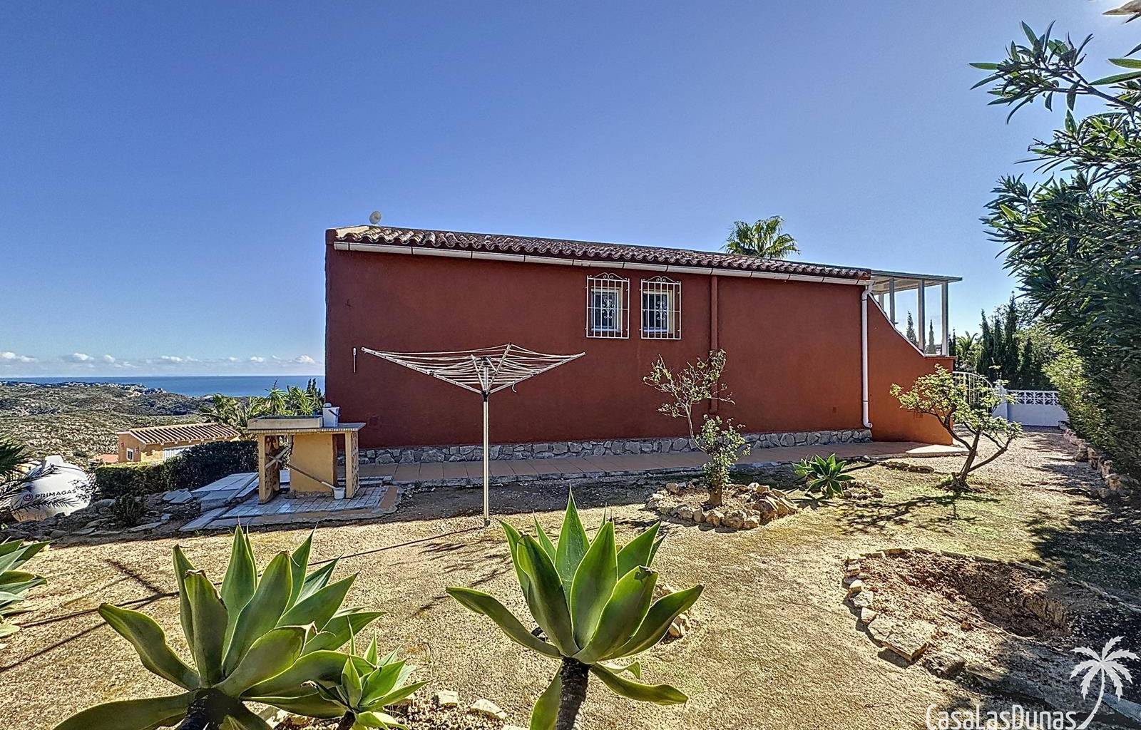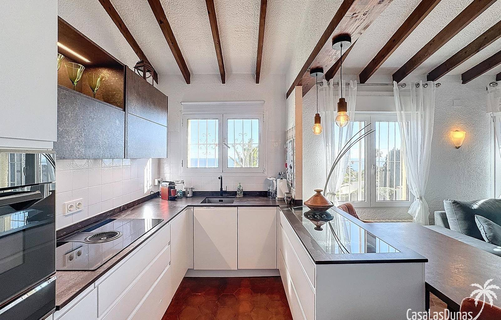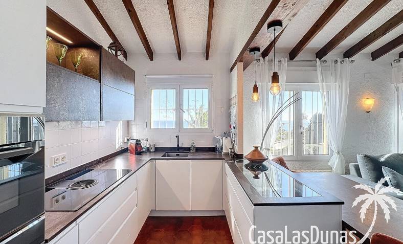 Diese Villa befindet sich auf einem wunderschönen Grundstück im Wohngebiet Cumbre del Sol mit Panoramablick über den Naturpark bis hin zum Mittelmeer. Das Haus bietet ein Wohn-/Esszimmer mit offener Küche, zwei Terrassen, zwei Schlafzimmer und zwei Badezimmer (eines davon im Untergeschoss).