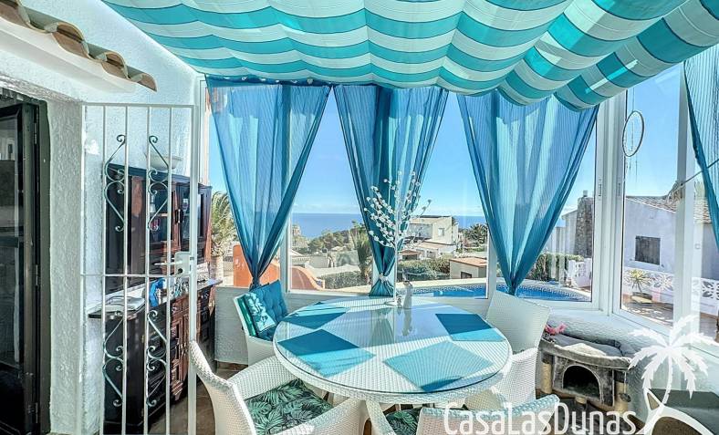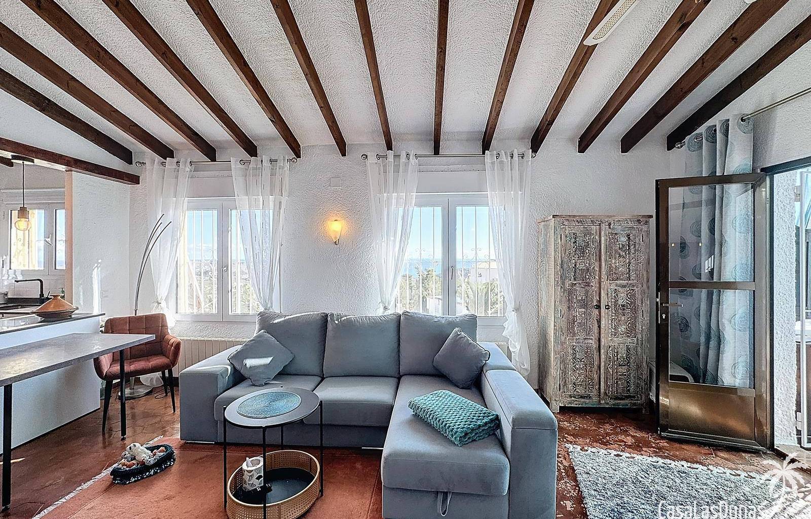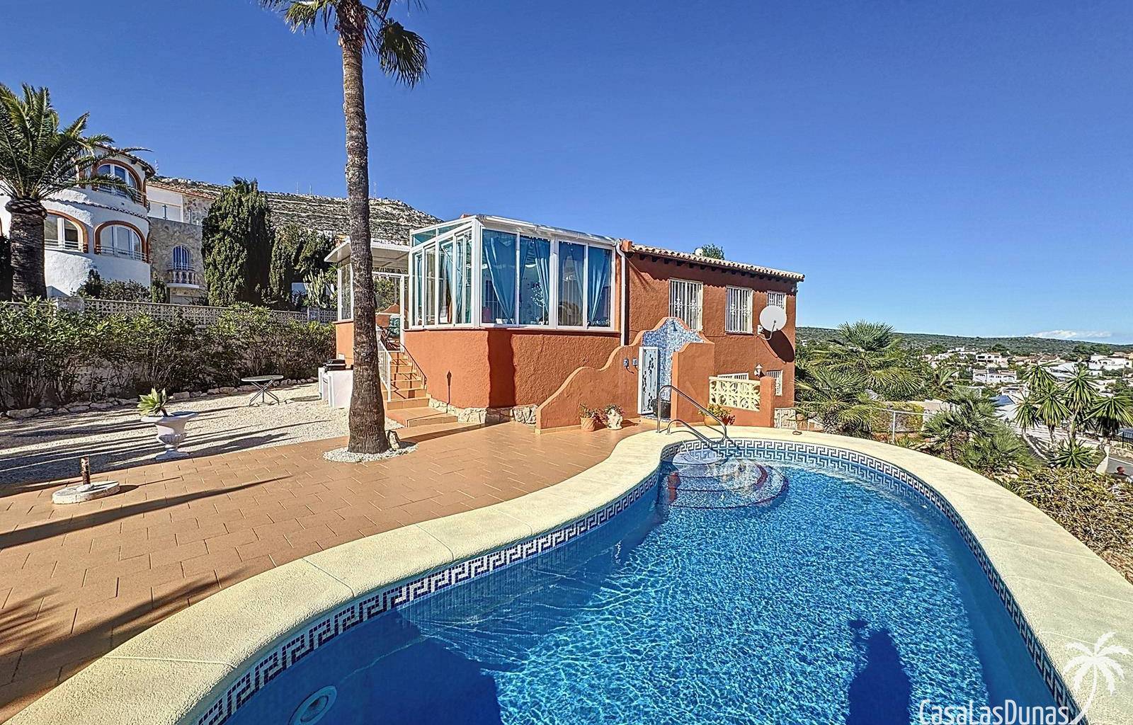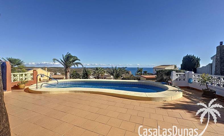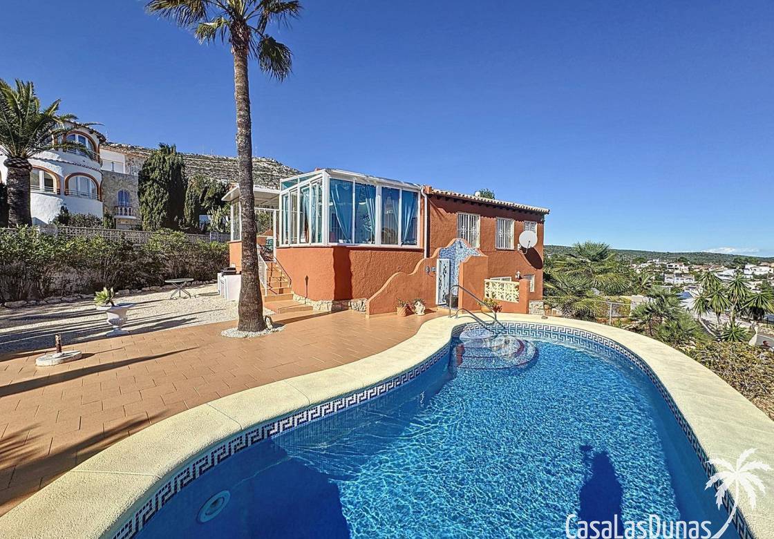 Diese Villa befindet sich auf einem wunderschönen Grundstück im Wohngebiet Cumbre del Sol mit Panoramablick über den Naturpark bis hin zum Mittelmeer. Das Haus bietet ein Wohn-/Esszimmer mit offener Küche, zwei Terrassen, zwei Schlafzimmer und zwei Badezimmer (eines davon im Untergeschoss).