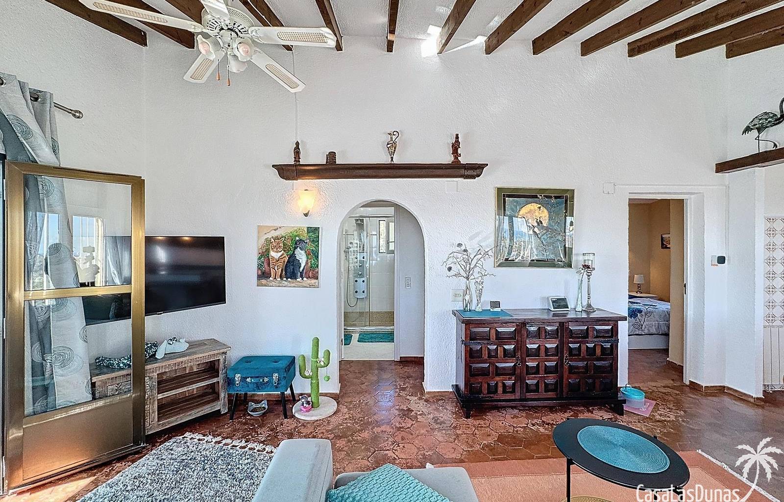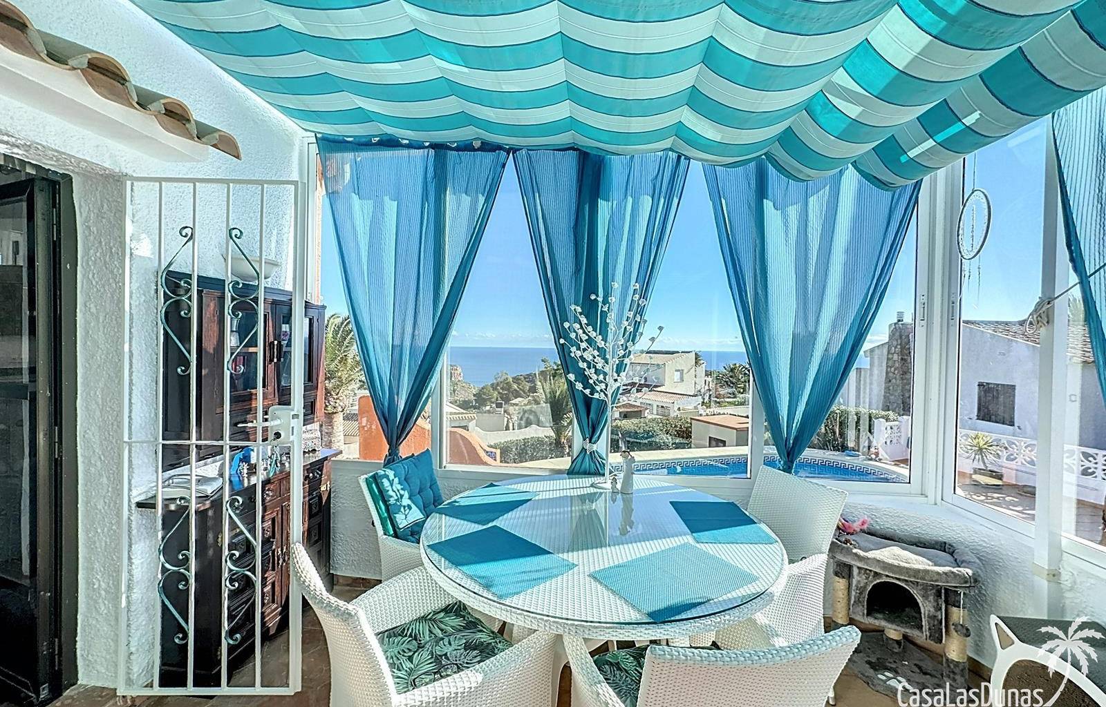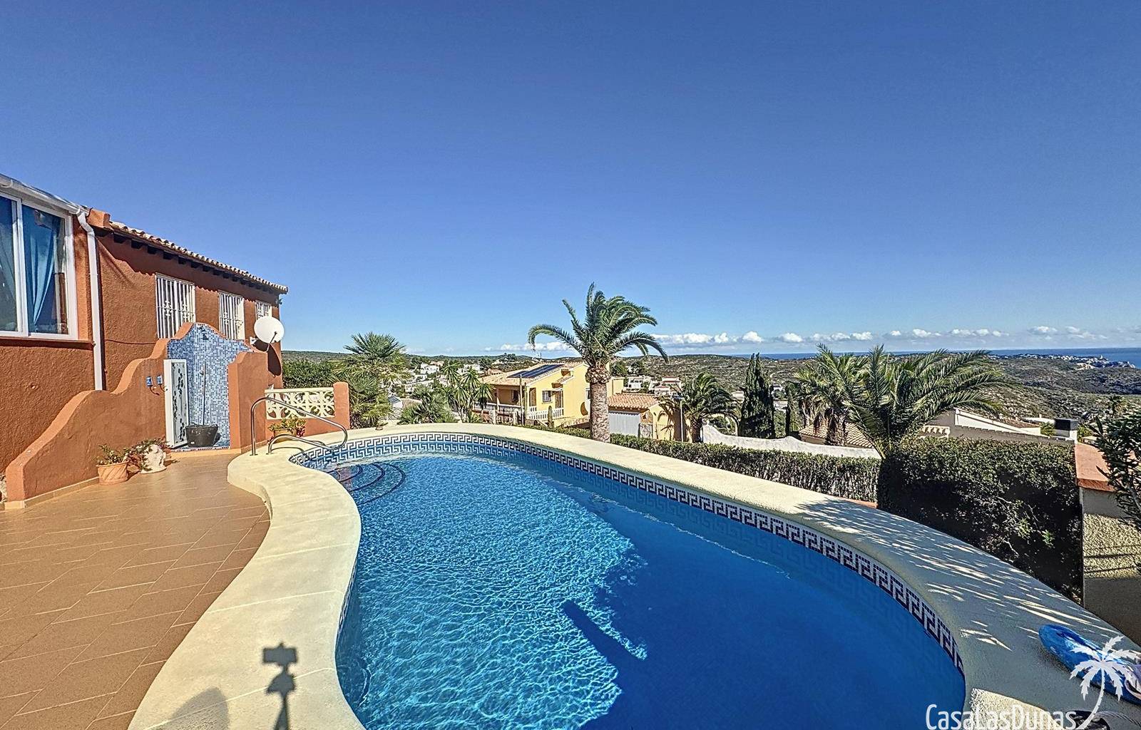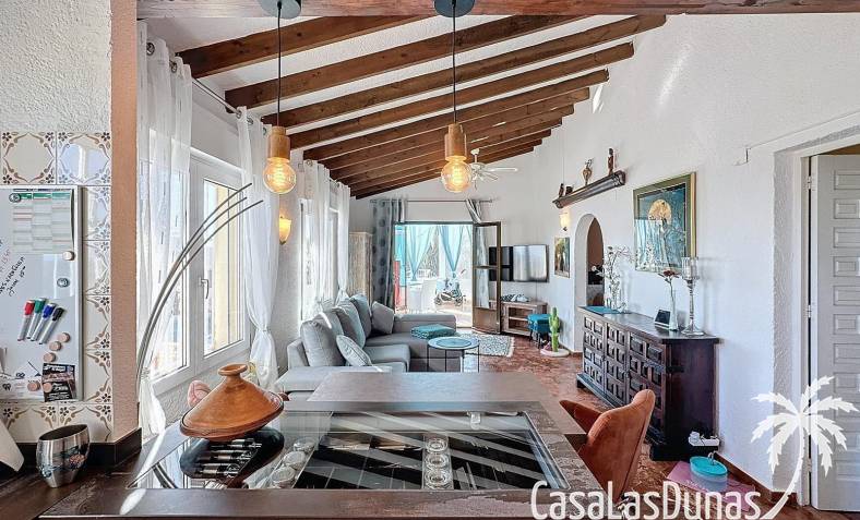 Diese Villa befindet sich auf einem wunderschönen Grundstück im Wohngebiet Cumbre del Sol mit Panoramablick über den Naturpark bis hin zum Mittelmeer. Das Haus bietet ein Wohn-/Esszimmer mit offener Küche, zwei Terrassen, zwei Schlafzimmer und zwei Badezimmer (eines davon im Untergeschoss).