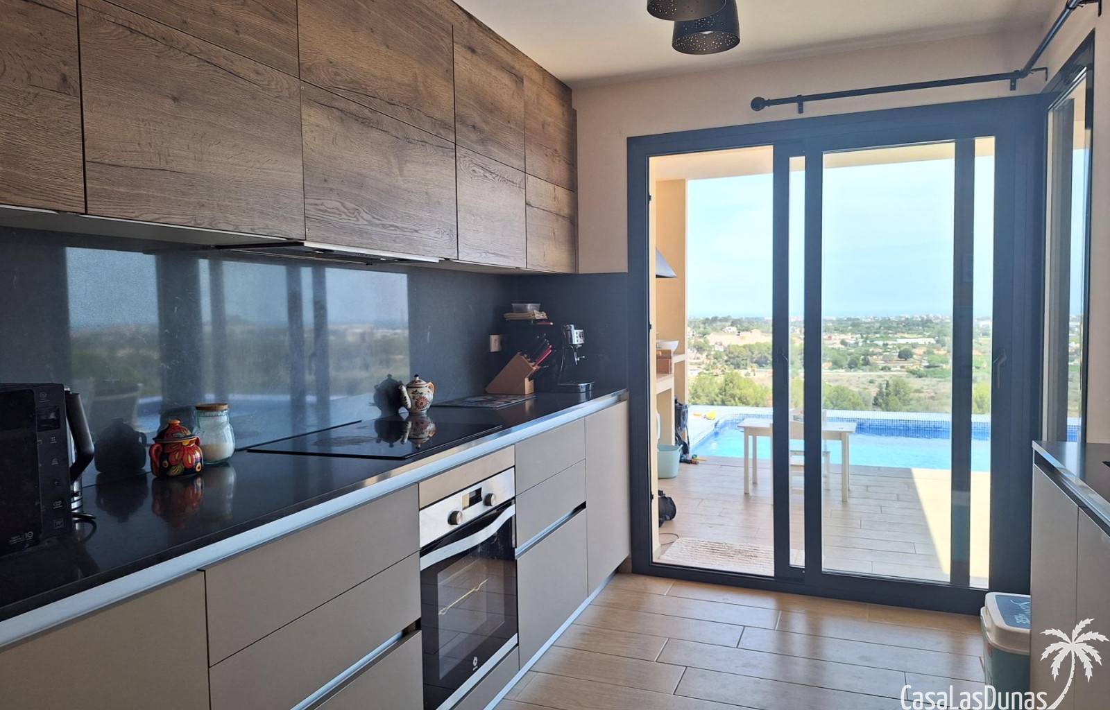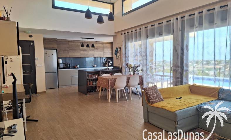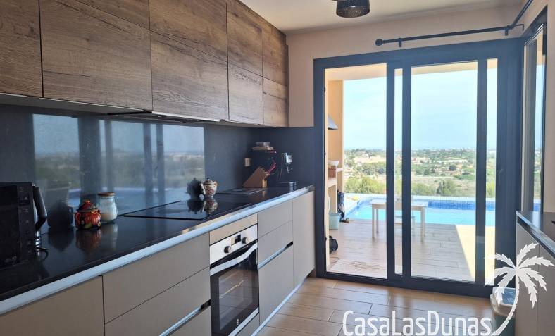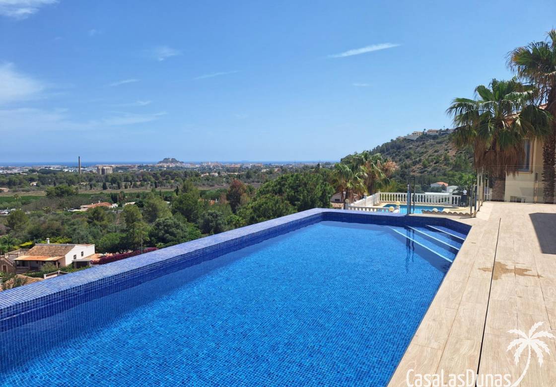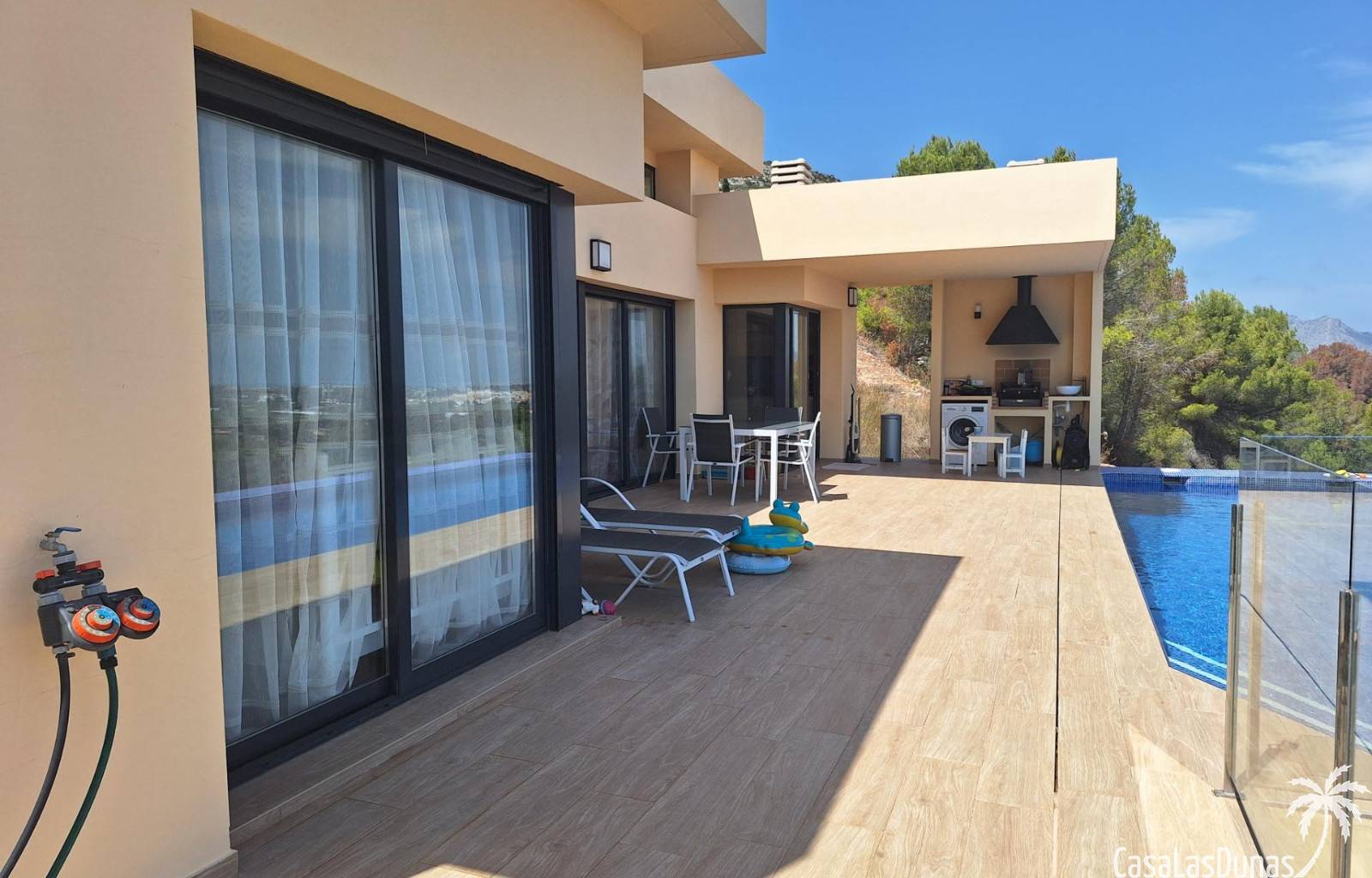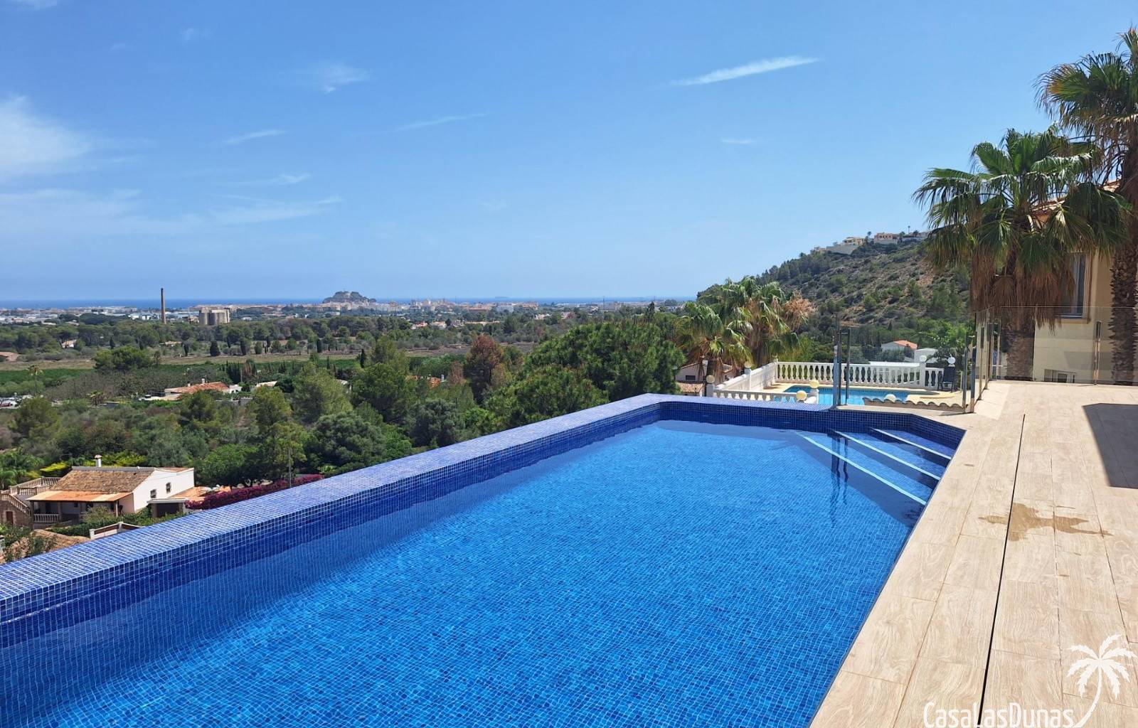 Diese moderne Villa mit Panoramablick auf das Meer wurde 2021 in einer luxuriösen Wohngegend von Denia gebaut. Das Haus ist komplett ebenerdig und verfügt über ein geräumiges Wohn-/Esszimmer mit offener Küche und hoher Decke mit großen Schiebetüren zur Poolterrasse. Es gibt drei Schlafzimmer und zwei Badezimmer (Hauptschlafzimmer mit eigenem Bad und ebenfalls Zugang zur Poolterrasse). Im Außenbereich gibt es einen Infinity-Pool, eine überdachte Terrasse mit Grill und eine großzügige Sonnenterrasse. Hinzu kommt ein Kellergeschoss von 180 m², welches zu einem Gästeapartment ausgebaut werden kann.