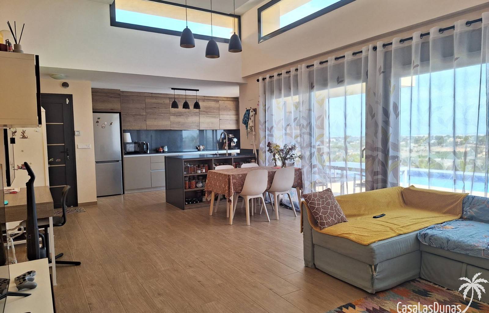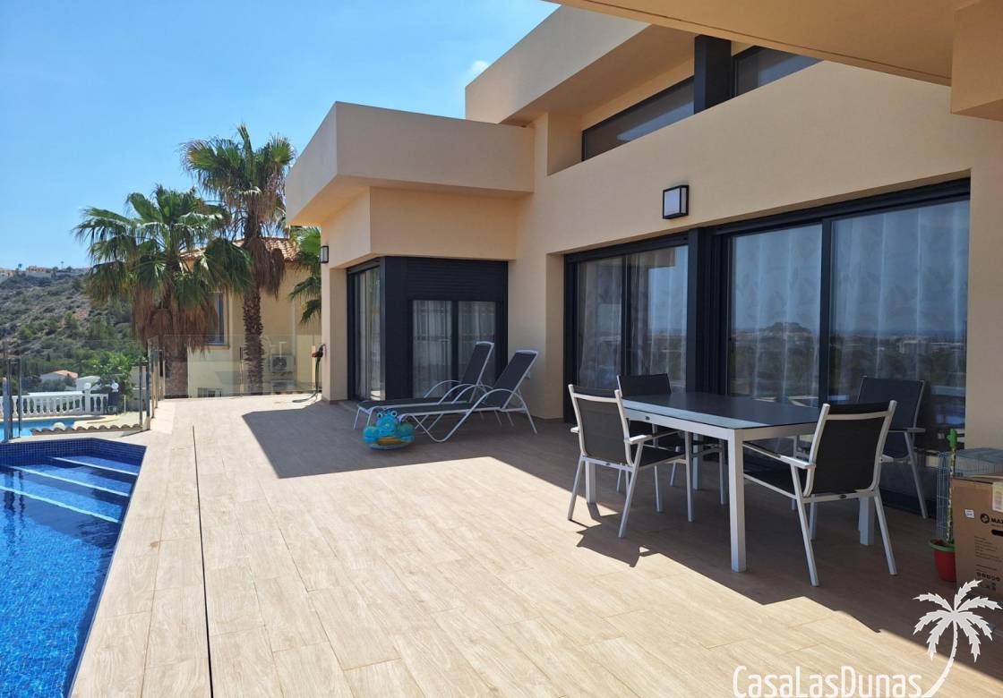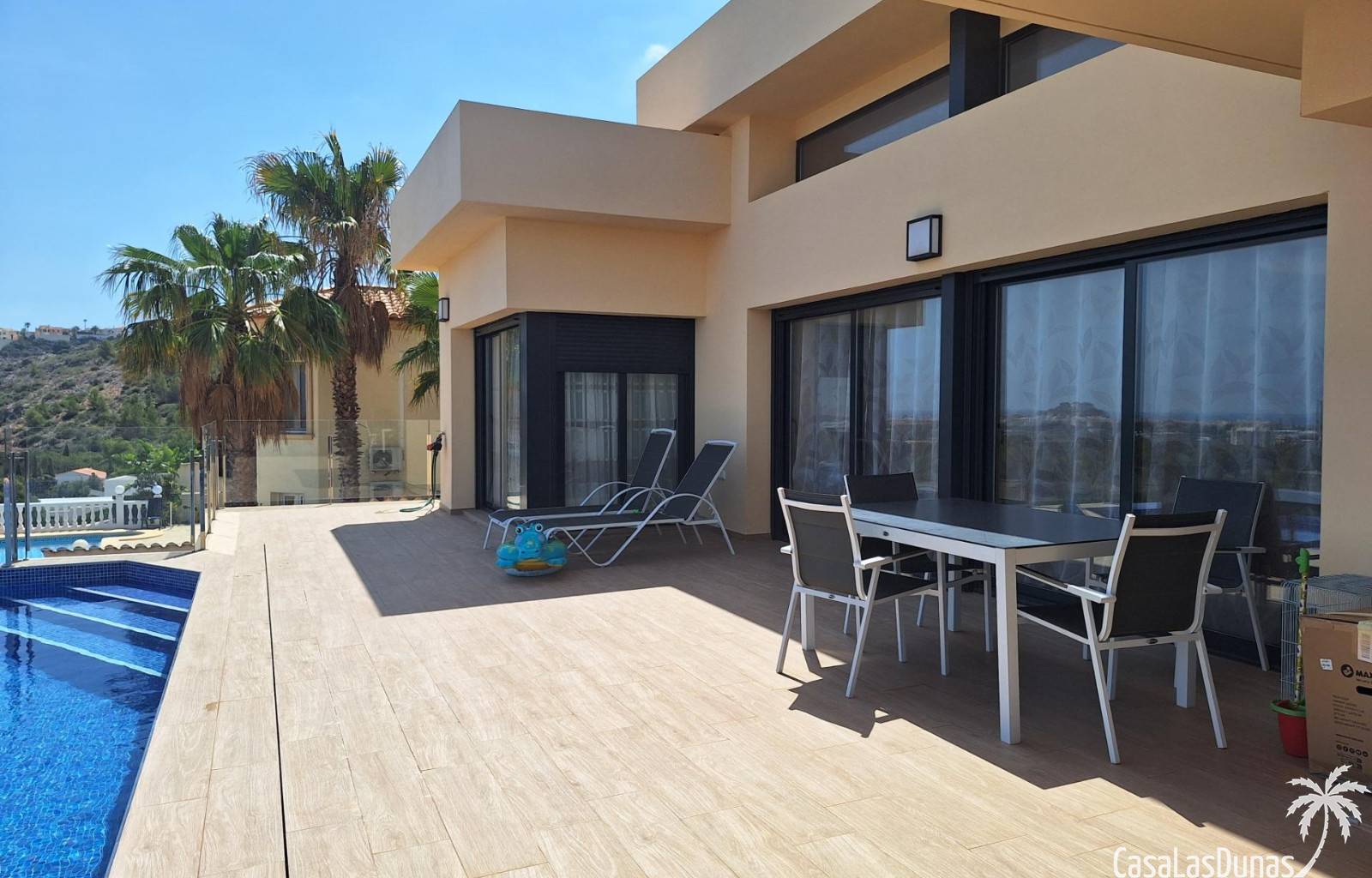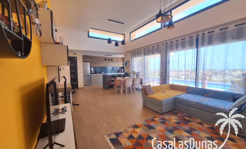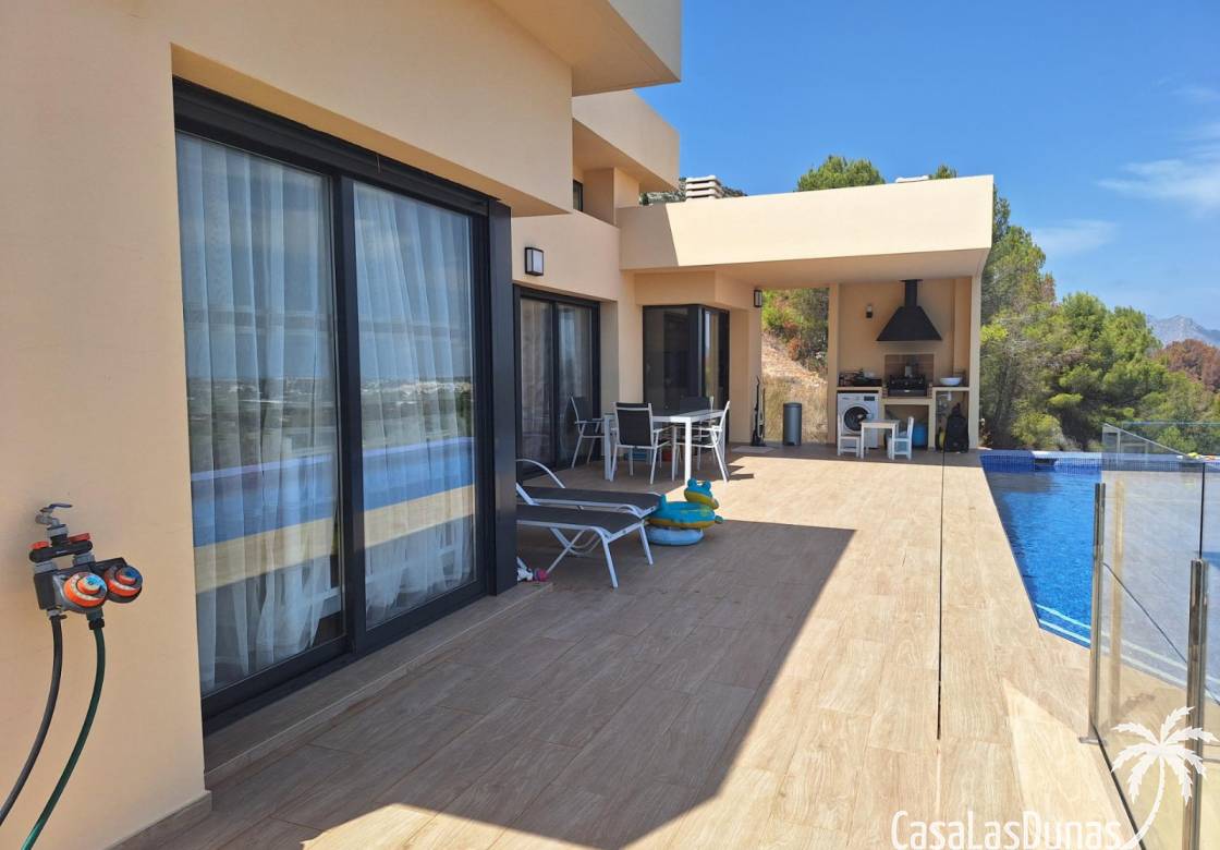 Diese moderne Villa mit Panoramablick auf das Meer wurde 2021 in einer luxuriösen Wohngegend von Denia gebaut. Das Haus ist komplett ebenerdig und verfügt über ein geräumiges Wohn-/Esszimmer mit offener Küche und hoher Decke mit großen Schiebetüren zur Poolterrasse. Es gibt drei Schlafzimmer und zwei Badezimmer (Hauptschlafzimmer mit eigenem Bad und ebenfalls Zugang zur Poolterrasse). Im Außenbereich gibt es einen Infinity-Pool, eine überdachte Terrasse mit Grill und eine großzügige Sonnenterrasse. Hinzu kommt ein Kellergeschoss von 180 m², welches zu einem Gästeapartment ausgebaut werden kann.