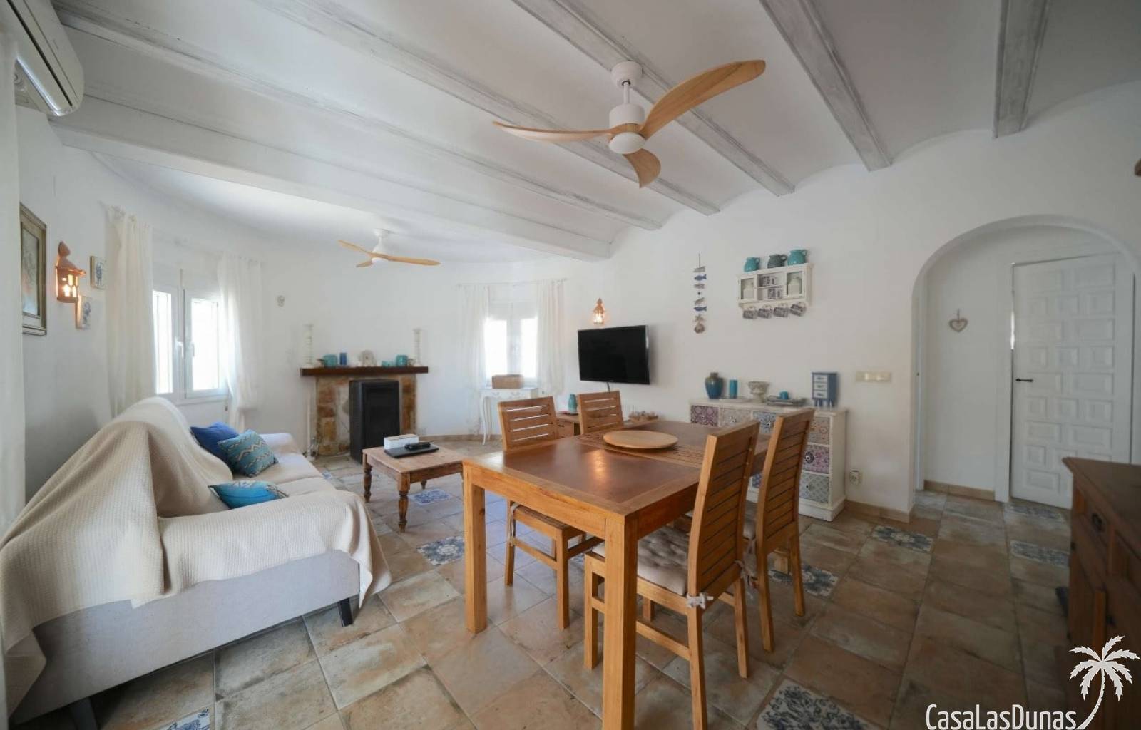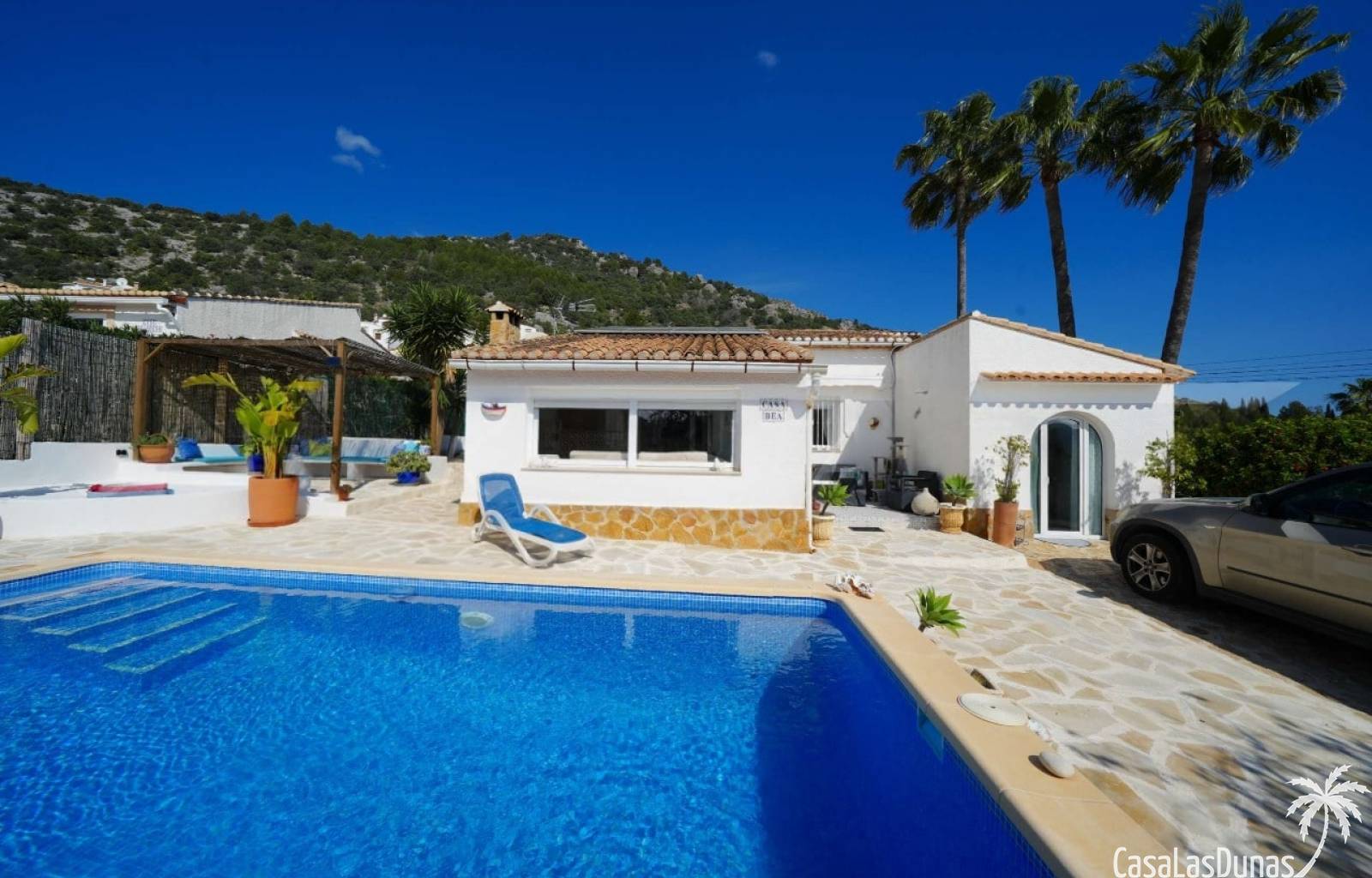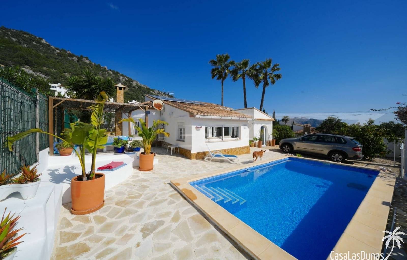 Charmante Villa auf einem sonnigen Eckgrundstück mit privatem Pool in Tormos, im Herzen des Orbatals. Das Haus verfügt über eine Fläche von ca. 115 m² und ist komplett auf einer Ebene verteilt, was hohen Komfort und einen einfachen Zugang zu allen Bereichen gewährleistet. Vom ersten Moment an lädt das Haus Sie ein, seine privilegierte Umgebung zu genießen, dank einer geräumigen verglasten Terrasse – ein idealer Ort zum Entspannen zu jeder Jahreszeit. Im Winter bietet es die perfekte Umgebung, um den Blick auf den Garten zu genießen und gleichzeitig vor der Kälte geschützt zu sein. Im Inneren dient ein helles und geräumiges Wohn-Esszimmer als Herzstück des Hauses und schafft eine warme und einladende Atmosphäre. Die voll ausgestattete Küche vereint Funktionalität und Design und ist somit ein idealer Ort für das tägliche Leben. Das Haus verfügt über zwei geräumige Doppelschlafzimmer, ein Badezimmer und eine Gästetoilette. Als zusätzlichen Bonus verfügt das Anwesen auch über ein separates Zimmer mit eigenem Bad, ein idealer Ort, um Gäste oder Familienmitglieder völlig unabhängig zu empfangen. Der Außenbereich der Villa ist eine Erweiterung des Komforts des Innenbereichs, mit einem Garten im ibizenkischen Stil, der nicht nur ästhetisch ansprechend ist, sondern auch nur minimalen Pflegeaufwand erfordert und das ganze Jahr über Sonnenlicht genießt. Darüber hinaus verfügt das Anwesen über eine Sommerküche, die sich perfekt für Mahlzeiten im Freien eignet, und einen Swimmingpool, der an warmen Tagen einen ruhigen Rückzugsort bietet. Die Villa verfügt außerdem über einen Parkplatz und liegt auf einem nahezu ebenen Grundstück, was einen einfachen Zugang und Mobilität ermöglicht. Alles in allem ist diese Immobilie eine außergewöhnliche Gelegenheit für alle, die ein Zuhause suchen, das Charme, Funktionalität und eine unschlagbare Lage an der Costa Blanca vereint.