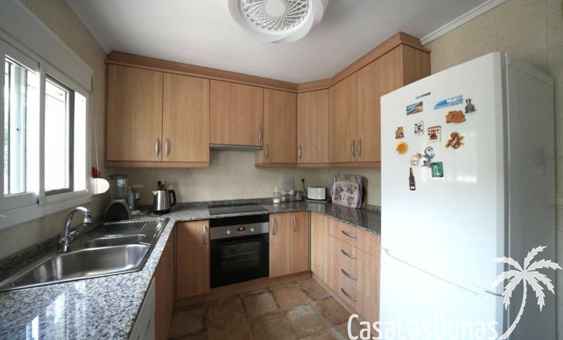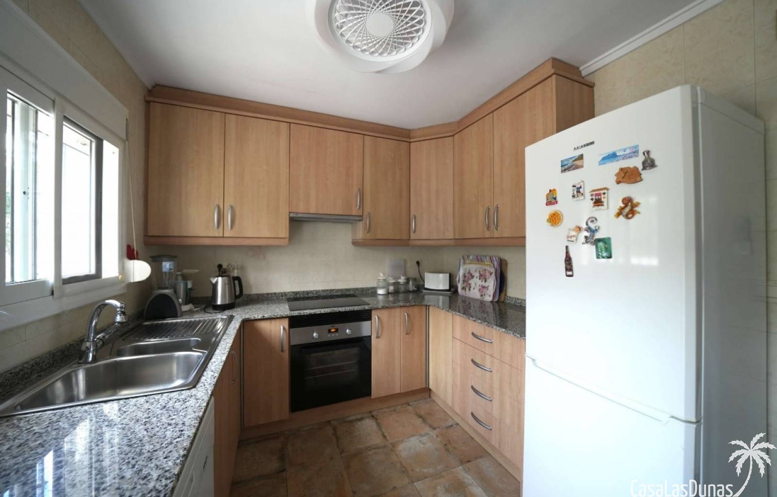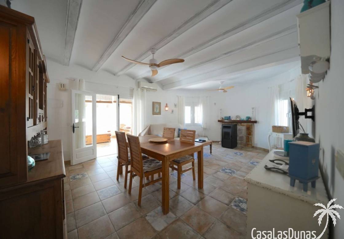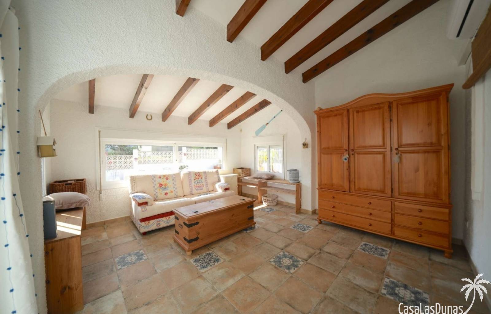 Charmante Villa auf einem sonnigen Eckgrundstück mit privatem Pool in Tormos, im Herzen des Orbatals. Das Haus verfügt über eine Fläche von ca. 115 m² und ist komplett auf einer Ebene verteilt, was hohen Komfort und einen einfachen Zugang zu allen Bereichen gewährleistet. Vom ersten Moment an lädt das Haus Sie ein, seine privilegierte Umgebung zu genießen, dank einer geräumigen verglasten Terrasse – ein idealer Ort zum Entspannen zu jeder Jahreszeit. Im Winter bietet es die perfekte Umgebung, um den Blick auf den Garten zu genießen und gleichzeitig vor der Kälte geschützt zu sein. Im Inneren dient ein helles und geräumiges Wohn-Esszimmer als Herzstück des Hauses und schafft eine warme und einladende Atmosphäre. Die voll ausgestattete Küche vereint Funktionalität und Design und ist somit ein idealer Ort für das tägliche Leben. Das Haus verfügt über zwei geräumige Doppelschlafzimmer, ein Badezimmer und eine Gästetoilette. Als zusätzlichen Bonus verfügt das Anwesen auch über ein separates Zimmer mit eigenem Bad, ein idealer Ort, um Gäste oder Familienmitglieder völlig unabhängig zu empfangen. Der Außenbereich der Villa ist eine Erweiterung des Komforts des Innenbereichs, mit einem Garten im ibizenkischen Stil, der nicht nur ästhetisch ansprechend ist, sondern auch nur minimalen Pflegeaufwand erfordert und das ganze Jahr über Sonnenlicht genießt. Darüber hinaus verfügt das Anwesen über eine Sommerküche, die sich perfekt für Mahlzeiten im Freien eignet, und einen Swimmingpool, der an warmen Tagen einen ruhigen Rückzugsort bietet. Die Villa verfügt außerdem über einen Parkplatz und liegt auf einem nahezu ebenen Grundstück, was einen einfachen Zugang und Mobilität ermöglicht. Alles in allem ist diese Immobilie eine außergewöhnliche Gelegenheit für alle, die ein Zuhause suchen, das Charme, Funktionalität und eine unschlagbare Lage an der Costa Blanca vereint.