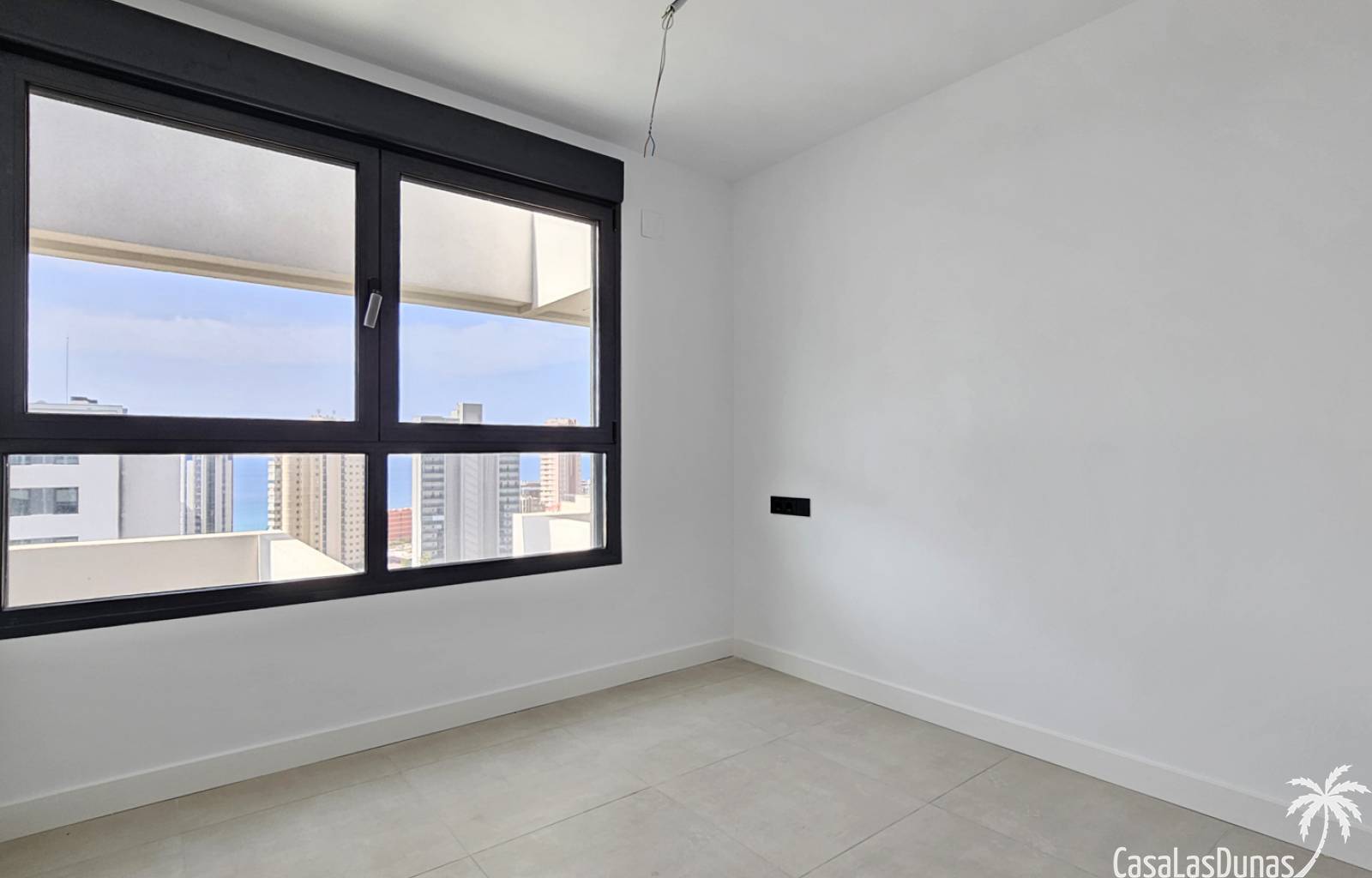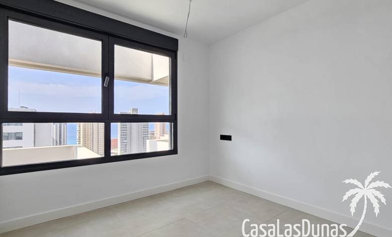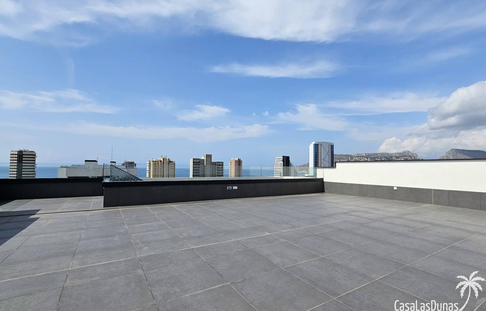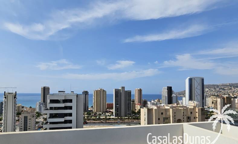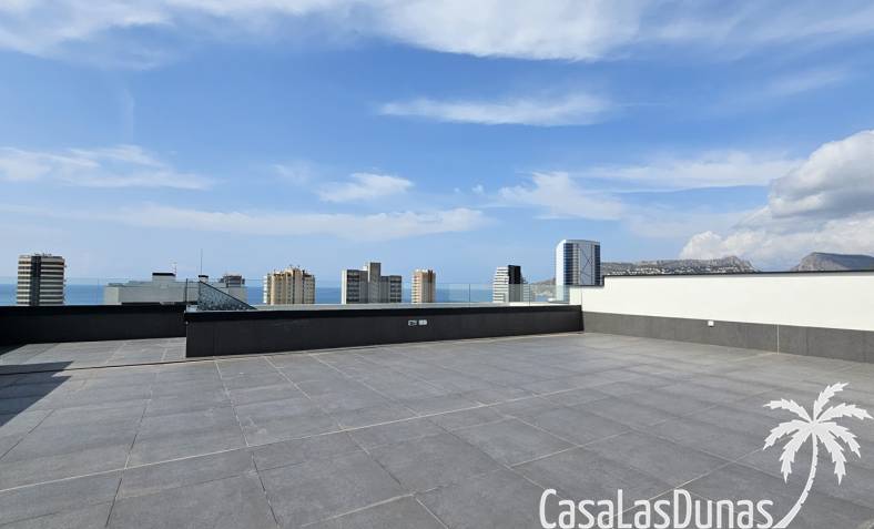 Dieses moderne Penthouse wurde 2023 erbaut und befindet sich im 15. Stock eines modernen Komplexes mit einer großen Dachterrasse von 77,63 m² mit wunderschönem Meerblick. Der Komplex befindet sich nur wenige Gehminuten vom Strand, dem Zentrum und allen Annehmlichkeiten entfernt. Die Wohnung verfügt über 2 Schlafzimmer, 2 Badezimmer (1 en-suite), ein geräumiges Wohn-/Esszimmer mit direktem Zugang zur Terrasse mit Panoramablick auf das Meer sowie zur großen Dachterrasse. Es gibt auch einen privaten Parkplatz und einen Abstellraum und der Komplex bietet Gemeinschaftsbereiche mit Gärten, einen Swimmingpool, einen Paddle-Tennisplatz und einen Indoor-Spielplatz.