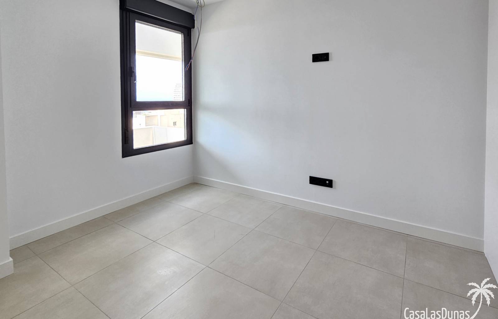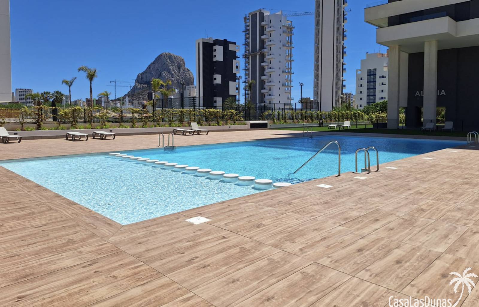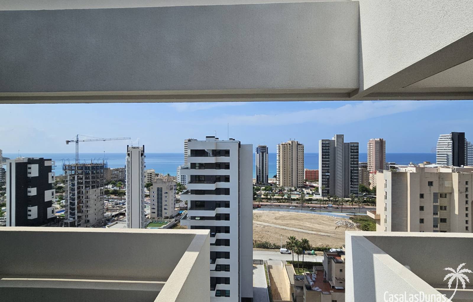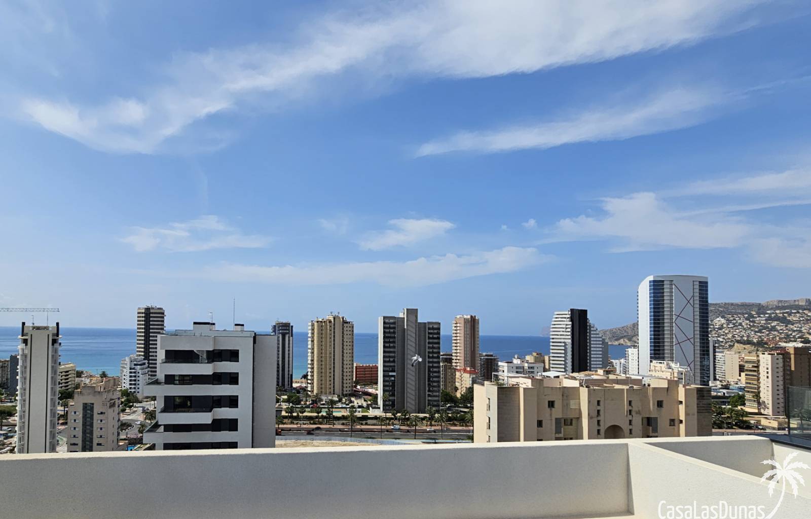 Dieses moderne Penthouse wurde 2023 erbaut und befindet sich im 15. Stock eines modernen Komplexes mit einer großen Dachterrasse von 77,63 m² mit wunderschönem Meerblick. Der Komplex befindet sich nur wenige Gehminuten vom Strand, dem Zentrum und allen Annehmlichkeiten entfernt. Die Wohnung verfügt über 2 Schlafzimmer, 2 Badezimmer (1 en-suite), ein geräumiges Wohn-/Esszimmer mit direktem Zugang zur Terrasse mit Panoramablick auf das Meer sowie zur großen Dachterrasse. Es gibt auch einen privaten Parkplatz und einen Abstellraum und der Komplex bietet Gemeinschaftsbereiche mit Gärten, einen Swimmingpool, einen Paddle-Tennisplatz und einen Indoor-Spielplatz.
