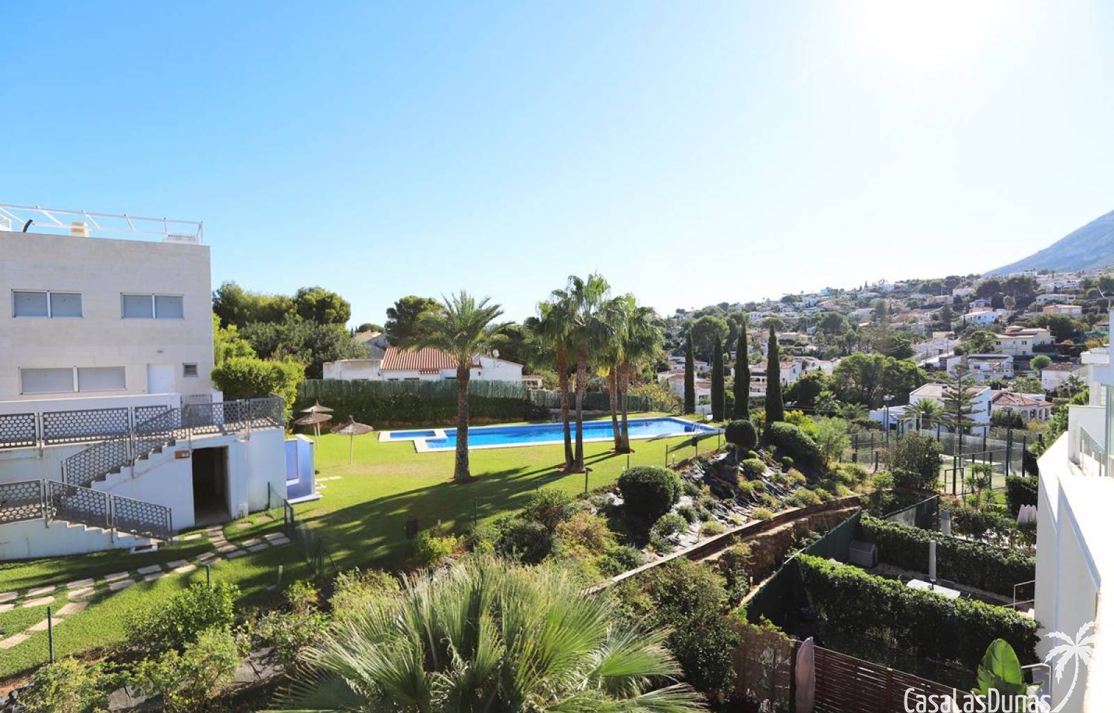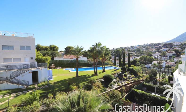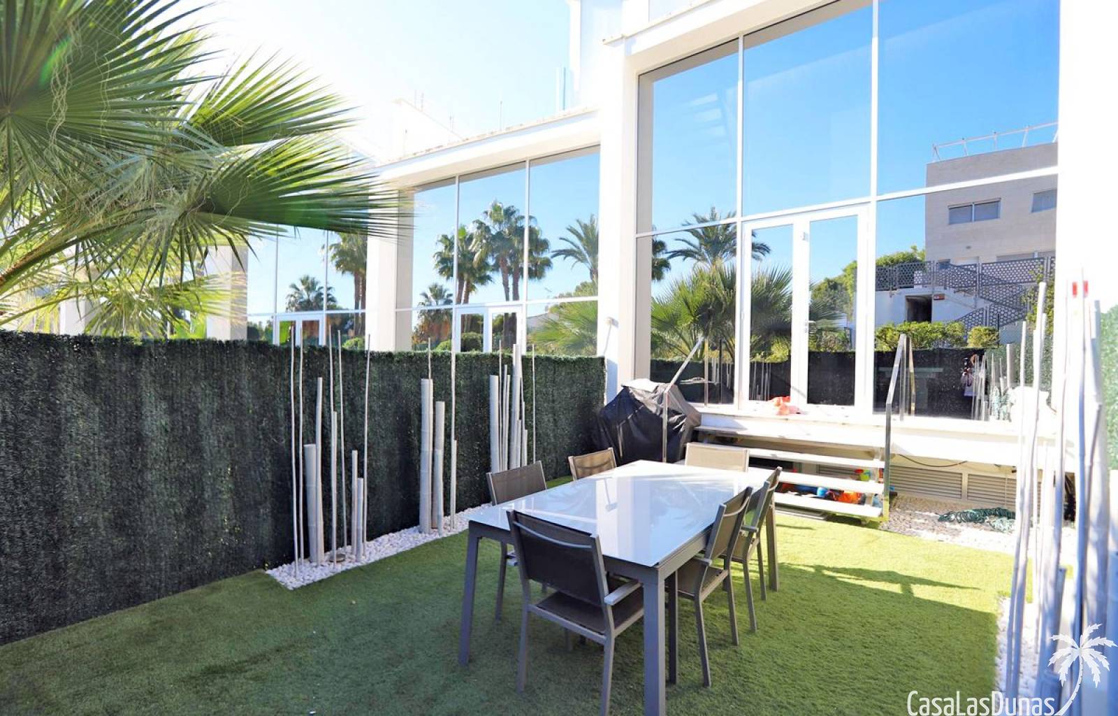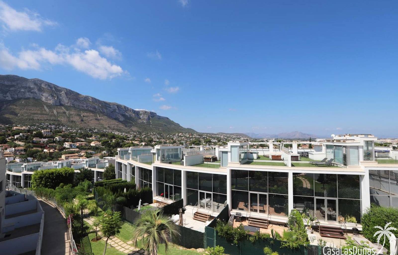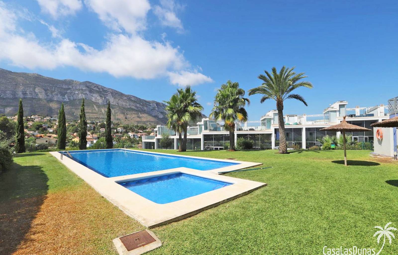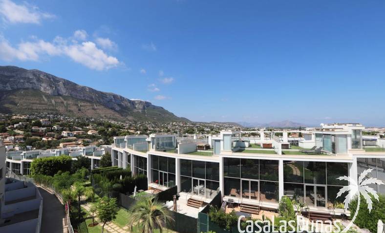 Dieses moderne Doppelhaus befindet sich in einer kleinen Anlage, nur wenige Gehminuten vom Strand, dem Yachthafen und dem Zentrum von Denia entfernt. Das Haus wurde 2008 erbaut und bietet im Untergeschoss eine private Garage mit einem Schlafzimmer, einem Badezimmer und einer Waschküche. Auf der Hauptebene befinden sich ein geräumiges Wohn-/Esszimmer mit hoher Decke, eine offene Küche und ein Schlafzimmer mit eigenem Bad. Vom Wohnzimmer aus haben Sie über große Glastüren Zugang zur nach Südosten ausgerichteten Gartenterrasse. Über eine moderne Treppe gelangt man in den ersten Stock, wo sich zwei Schlafzimmer und ein Badezimmer mit Badewanne befinden. Schließlich gibt es eine wunderschöne Dachterrasse mit herrlicher Aussicht auf den Montgo. Das gesamte Gebäude ist mit einer Hausautomationssteuerung, Warmwasser über Solarmodule und einer Klimaanlage (warm/kalt) ausgestattet. Der Komplex ist makellos gepflegt und verfügt über einen großen Gemeinschaftspool mit altem Baumbestand, Südausrichtung und Blick auf den Montgo sowie einen Paddle-Tennisplatz.