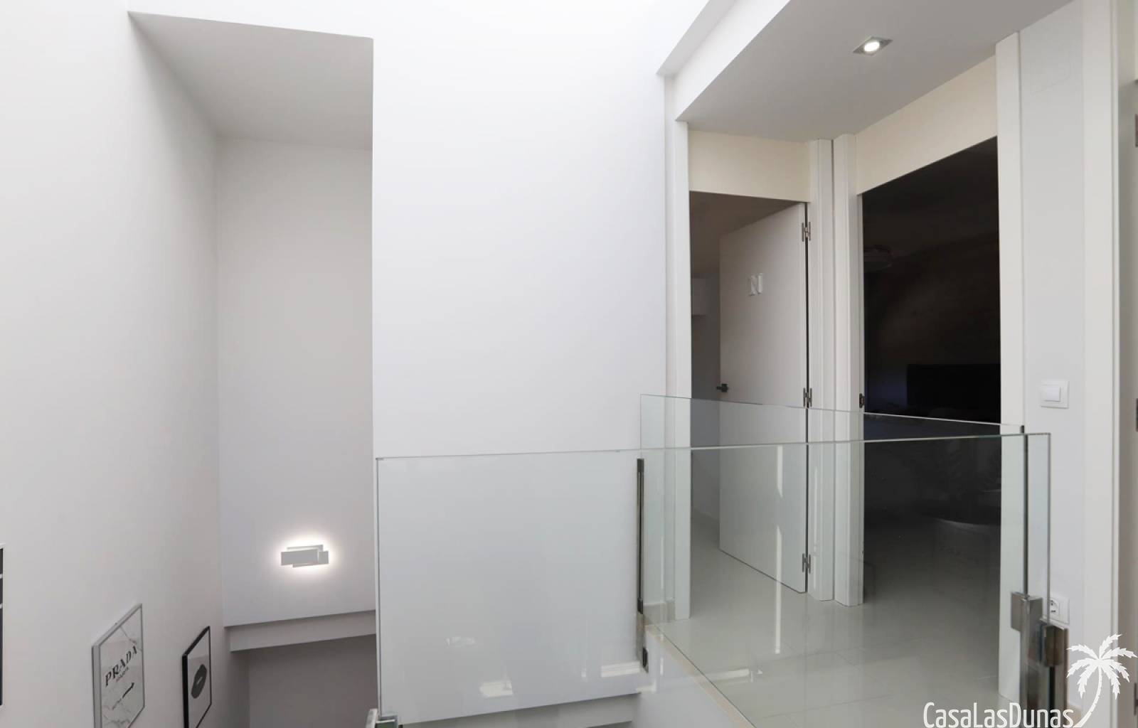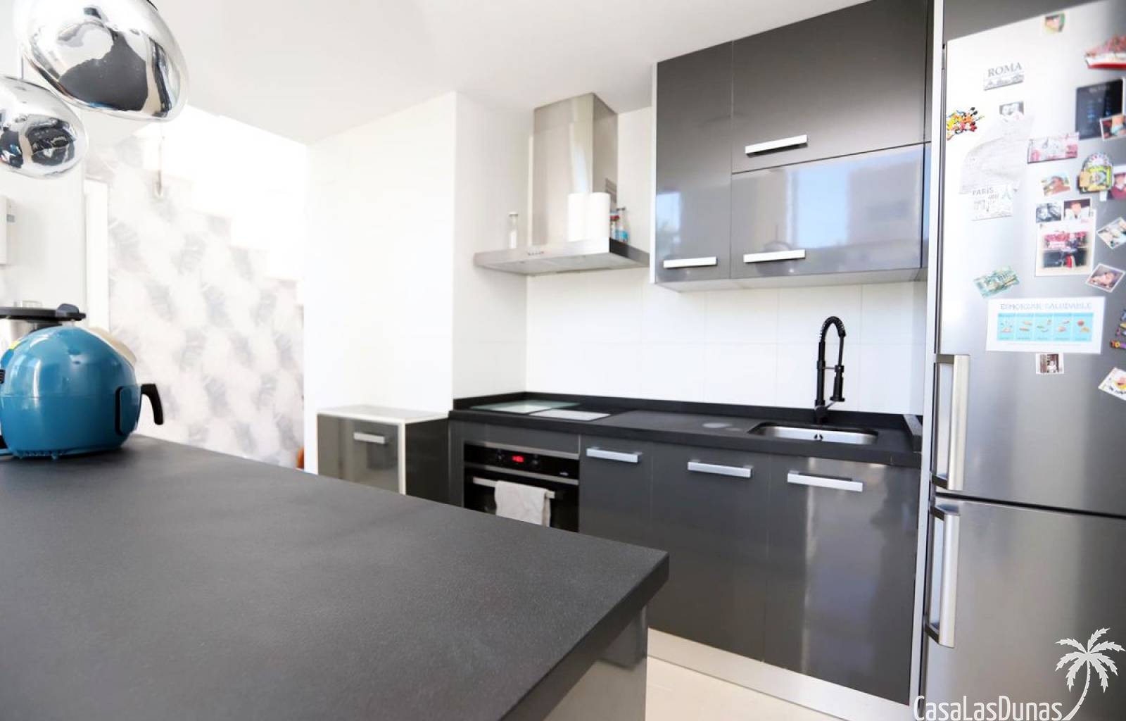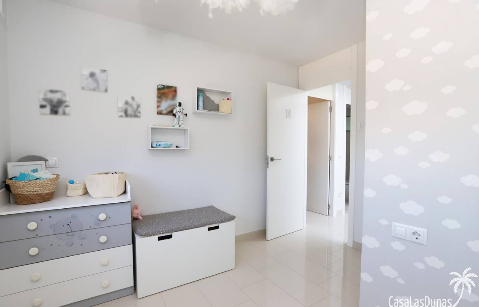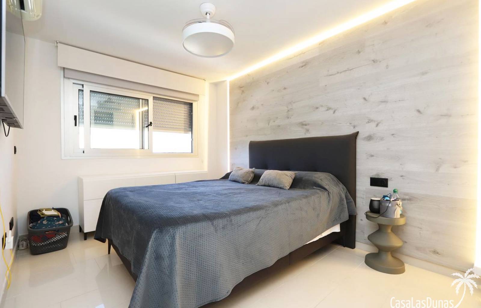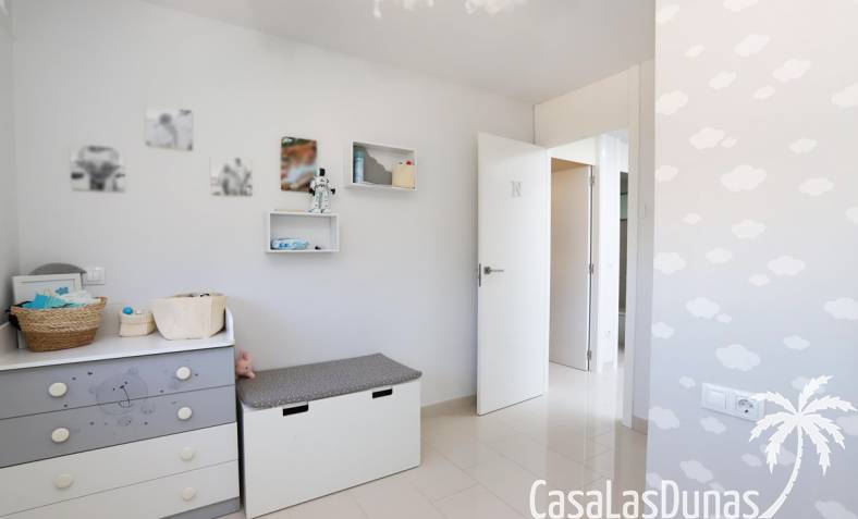 Dieses moderne Doppelhaus befindet sich in einer kleinen Anlage, nur wenige Gehminuten vom Strand, dem Yachthafen und dem Zentrum von Denia entfernt. Das Haus wurde 2008 erbaut und bietet im Untergeschoss eine private Garage mit einem Schlafzimmer, einem Badezimmer und einer Waschküche. Auf der Hauptebene befinden sich ein geräumiges Wohn-/Esszimmer mit hoher Decke, eine offene Küche und ein Schlafzimmer mit eigenem Bad. Vom Wohnzimmer aus haben Sie über große Glastüren Zugang zur nach Südosten ausgerichteten Gartenterrasse. Über eine moderne Treppe gelangt man in den ersten Stock, wo sich zwei Schlafzimmer und ein Badezimmer mit Badewanne befinden. Schließlich gibt es eine wunderschöne Dachterrasse mit herrlicher Aussicht auf den Montgo. Das gesamte Gebäude ist mit einer Hausautomationssteuerung, Warmwasser über Solarmodule und einer Klimaanlage (warm/kalt) ausgestattet. Der Komplex ist makellos gepflegt und verfügt über einen großen Gemeinschaftspool mit altem Baumbestand, Südausrichtung und Blick auf den Montgo sowie einen Paddle-Tennisplatz.