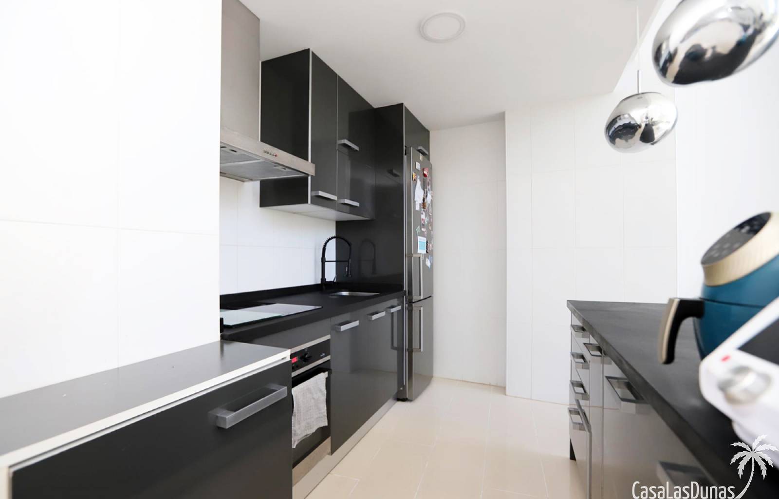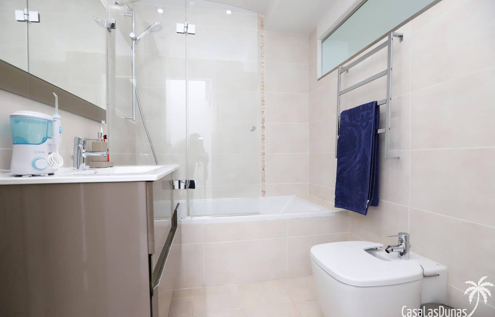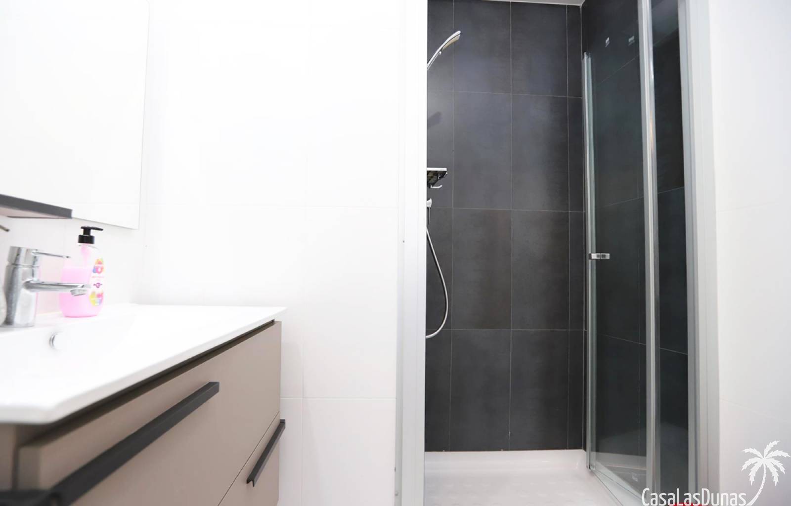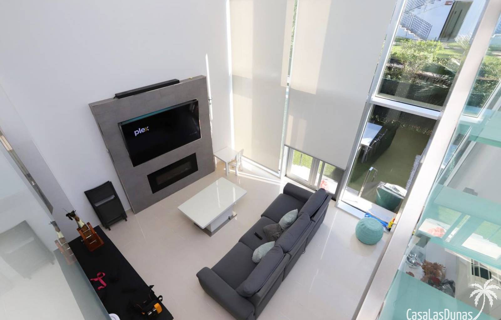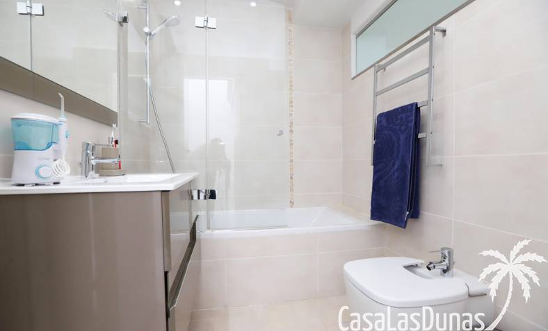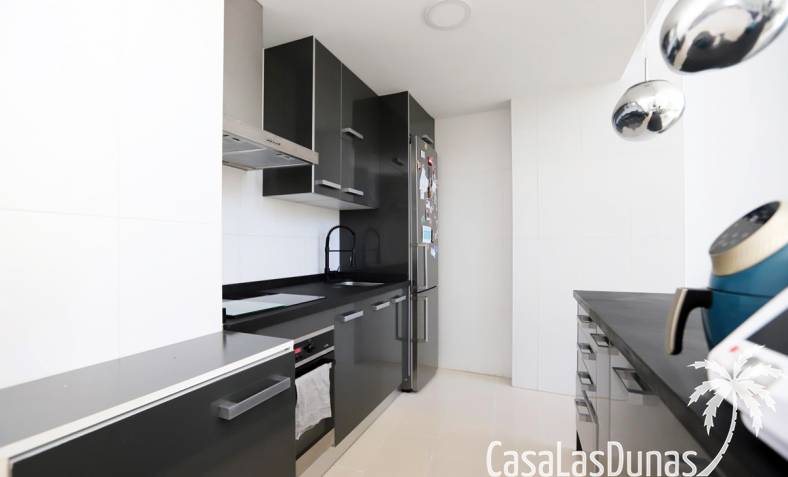 Dieses moderne Doppelhaus befindet sich in einer kleinen Anlage, nur wenige Gehminuten vom Strand, dem Yachthafen und dem Zentrum von Denia entfernt. Das Haus wurde 2008 erbaut und bietet im Untergeschoss eine private Garage mit einem Schlafzimmer, einem Badezimmer und einer Waschküche. Auf der Hauptebene befinden sich ein geräumiges Wohn-/Esszimmer mit hoher Decke, eine offene Küche und ein Schlafzimmer mit eigenem Bad. Vom Wohnzimmer aus haben Sie über große Glastüren Zugang zur nach Südosten ausgerichteten Gartenterrasse. Über eine moderne Treppe gelangt man in den ersten Stock, wo sich zwei Schlafzimmer und ein Badezimmer mit Badewanne befinden. Schließlich gibt es eine wunderschöne Dachterrasse mit herrlicher Aussicht auf den Montgo. Das gesamte Gebäude ist mit einer Hausautomationssteuerung, Warmwasser über Solarmodule und einer Klimaanlage (warm/kalt) ausgestattet. Der Komplex ist makellos gepflegt und verfügt über einen großen Gemeinschaftspool mit altem Baumbestand, Südausrichtung und Blick auf den Montgo sowie einen Paddle-Tennisplatz.