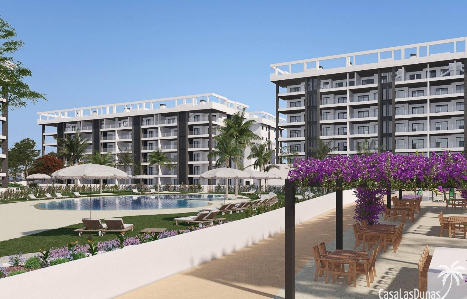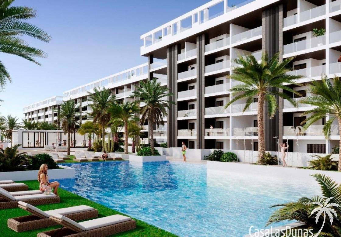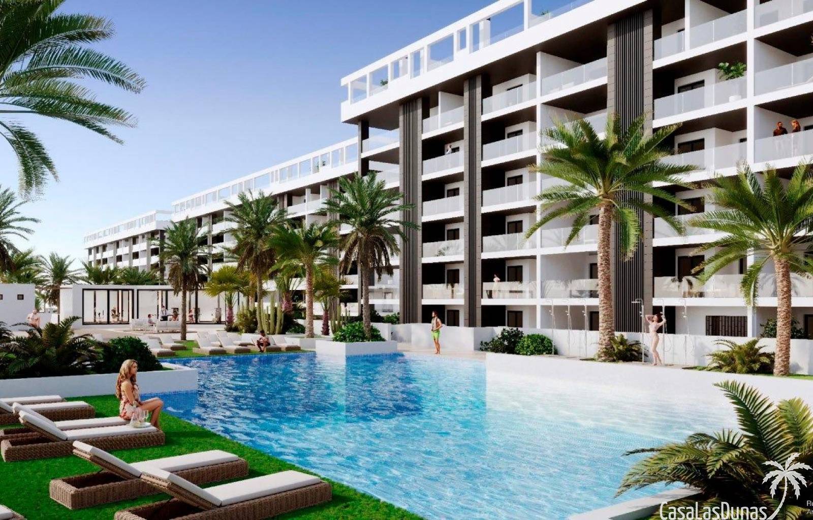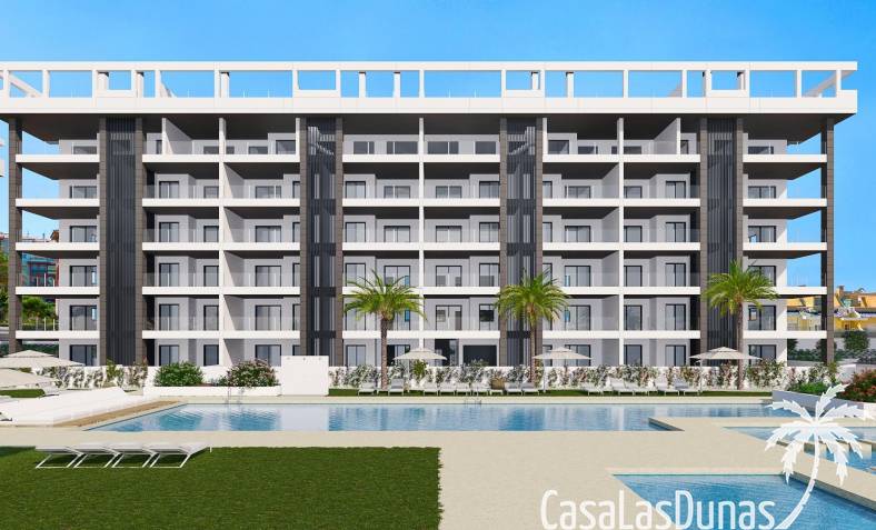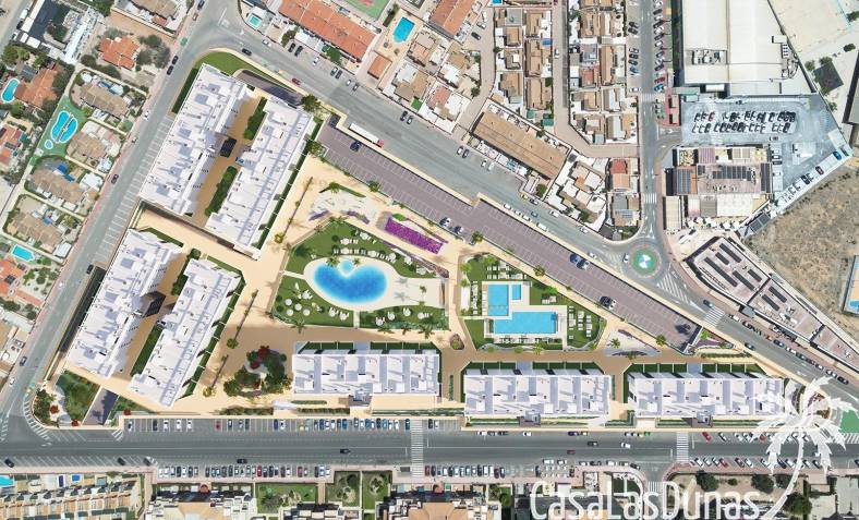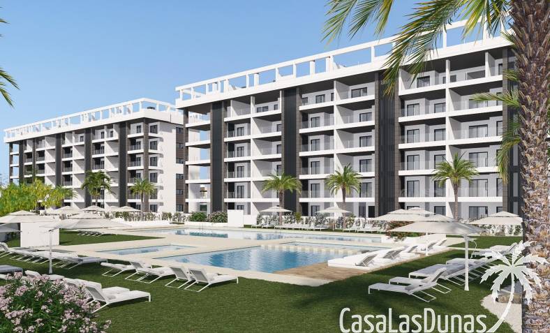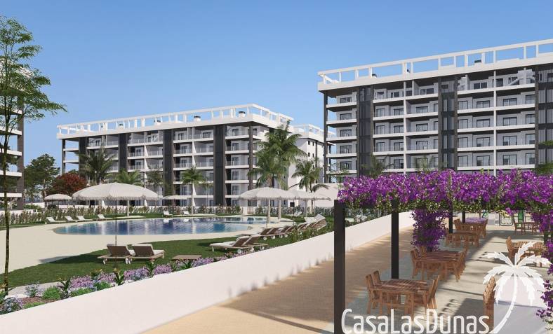 Diese neue, sichere Wohnanlage in Torrevieja liegt nur wenige Schritte vom Strand La Mata entfernt. Sie umfasst 362 moderne Apartments , die um großzügige Gemeinschaftsbereiche angeordnet sind und das Ambiente einer Hotelanlage mit dem Komfort des Alltags an der Costa Blanca verbinden.