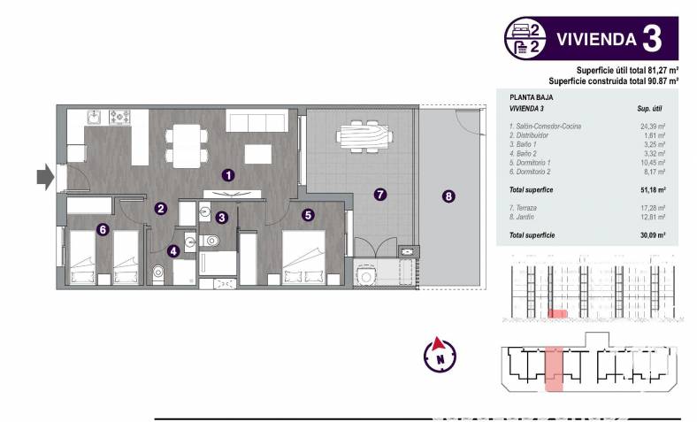 Fast alle Wohnungen verfügen über große Terrassen zur Straßenseite mit Blick auf die Gemeinschaftsbereiche. Viele Wohnungen bieten zudem (teilweisen) Meerblick .