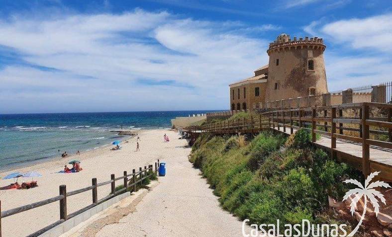 Villa 100 m vom Strand Higuericas entfernt, in Torre de la Horadada, ein Paradies in jeder Hinsicht, wo Sie die Unermesslichkeit des Mittelmeers genießen können, die Promenade, erfrischende Bäder im Meer, Wassersport, Segeln, Surfen, Schnorcheln und nur 8 km von Lo Romero Golf, einer der 21 Golfplätze an der Costa Blanca.