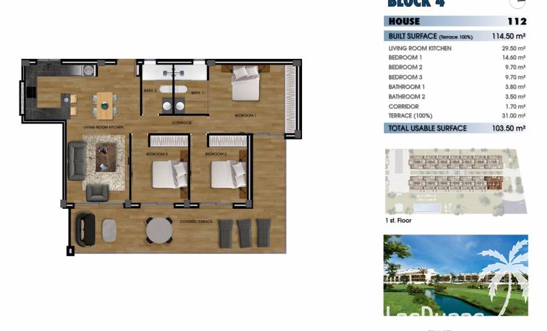 Dieser erstaunliche Komplex wird aus 244 Wohnungen mit 2 und 3 Schlafzimmern bestehen, die in 8 Blöcke und 20 private Villen aufgeteilt sind.