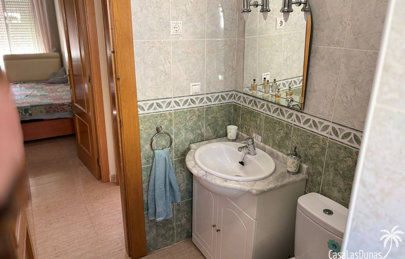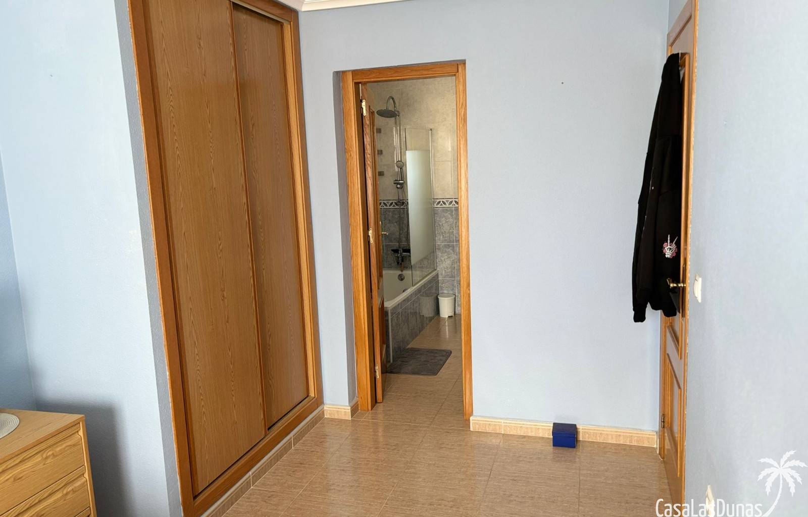 Das Haus verfügt über drei Doppelzimmer, alle mit Einbauschränken ausgestattet, und bietet so einen komfortablen und gut aufgeteilten Wohnraum. Das Hauptschlafzimmer hat ein eigenes Badezimmer und direkten Zugang zur Terrasse.