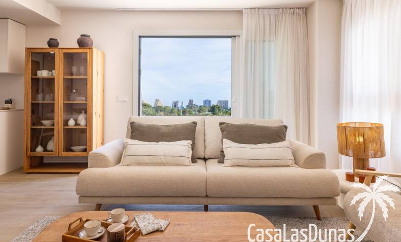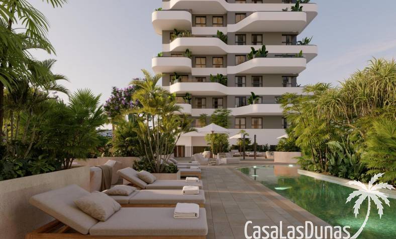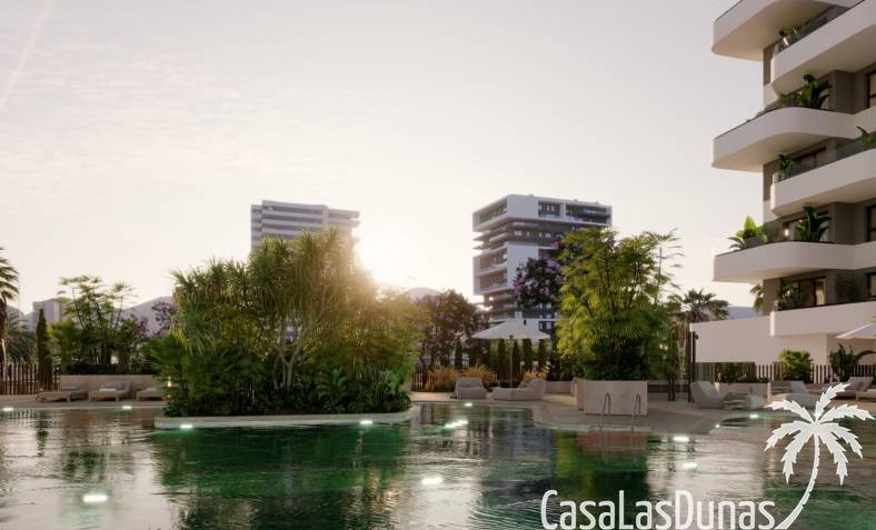 Entdecken Sie diese exklusive Neubauanlage mit 120 modernen 2- und 3-Zimmer-Apartments, verteilt auf drei elegante Wohntürme. Nur 450 Meter vom Strand Playa del Cantal Roig entfernt, im ruhigen Viertel El Saladar gelegen, bietet dieser Komplex die perfekte Balance zwischen Küstenleben und urbanem Komfort. Das Stadtzentrum von Calpe ist in wenigen Minuten erreichbar, während die Salinen von Calpe und der markante Peñón de Ifach eine außergewöhnliche Naturkulisse bieten. Genießen Sie den atemberaubenden Meerblick aus dem dritten Stock.