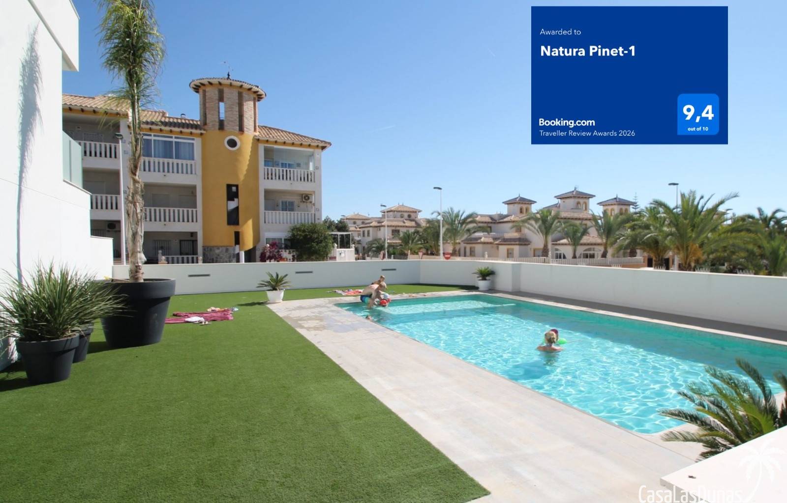 Von Natura Pinet-1 erreichen Sie das Dorfzentrum in nur 1,5 Kilometern und die weitläufigen Sandstrände von La Marina in nur 400 Metern. Vom Wohnzimmer aus gelangen Sie auf die teilweise überdachte Terrasse und anschließend auf das private Solarium. Dieses Haus verspricht Ihnen einen unvergesslichen Urlaub!