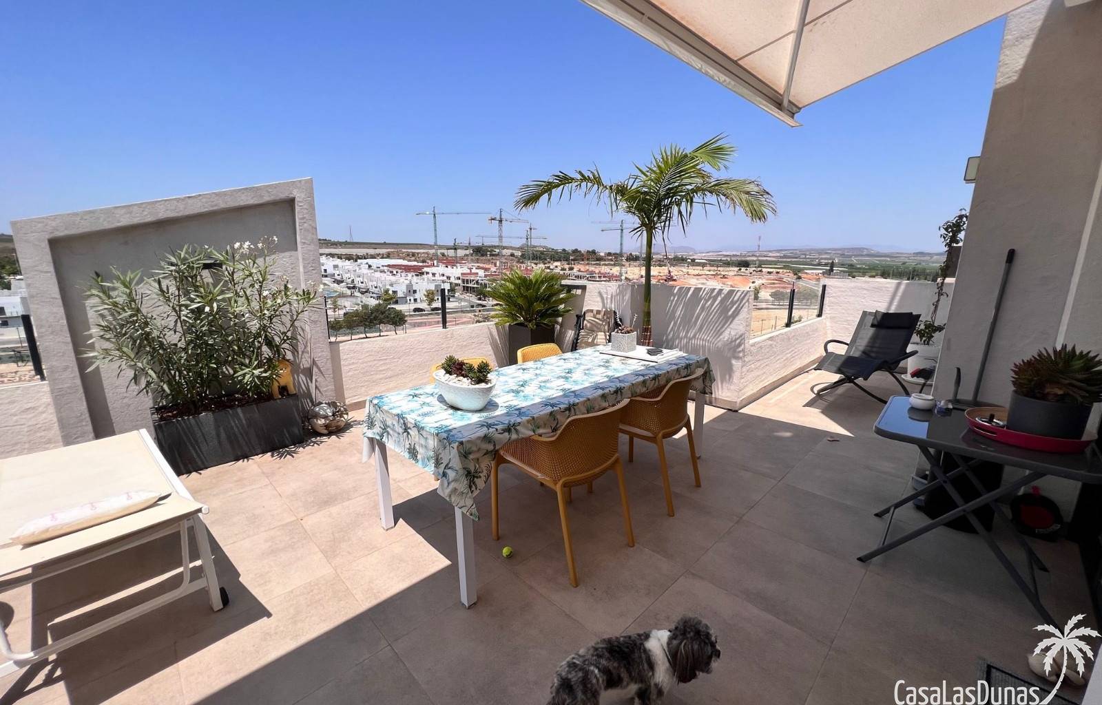 Das Anwesen bietet eine Wohnfläche von 70 m², aufgeteilt in zwei Schlafzimmer mit Einbauschränken, ein Badezimmer und eine Toilette, eine voll ausgestattete offene Küche und ein helles Wohnzimmer mit Zugang zu einer privaten Terrasse, ideal, um das schöne Wetter zu genießen. Sein größter Vorteil ist der großzügige Außenbereich: eine 58 m² große Terrasse, die an das Wohnzimmer angrenzt und auf ein 53 m² großes privates Solarium blickt! Mit spektakulärem Panoramablick auf die Umgebung!