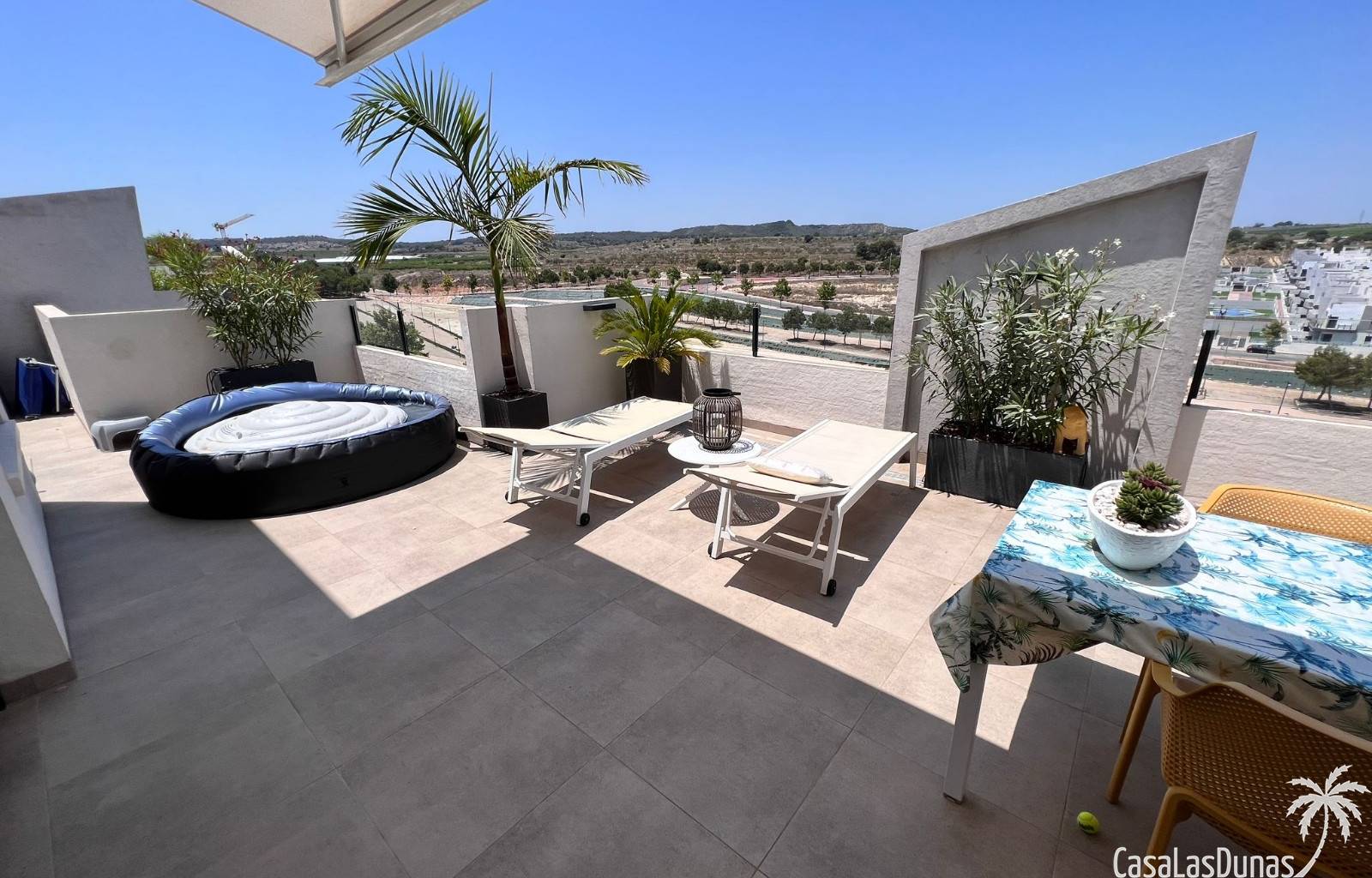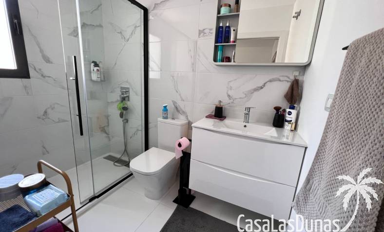 Das Haus liegt in einem Wohngebiet mit Gemeinschaftspool und in der Nähe aller Annehmlichkeiten: nur 5 Minuten von Freizeiteinrichtungen, 10 Minuten von Golfplätzen, 20 Minuten vom Strand und 40 Minuten vom Flughafen entfernt. Dank der West-Südwest-Ausrichtung profitieren Sie den ganzen Tag über von reichlich Tageslicht.