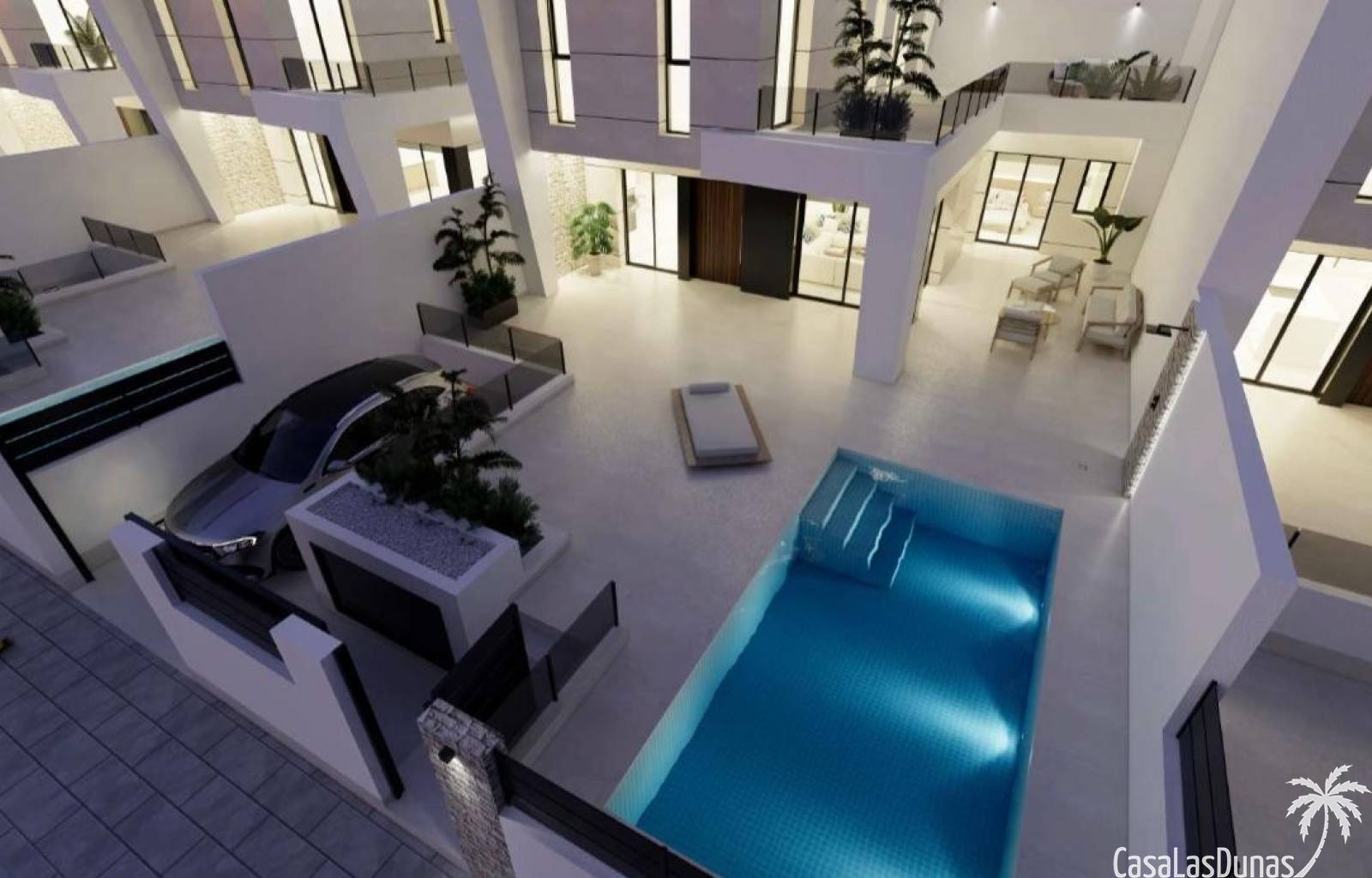 Das Haus besticht durch eine schöne offene Küche mit integrierten Geräten und Frühstücksbar, ein gemütliches und geräumiges Wohnzimmer, Schlafzimmer mit Einbauschränken und vieles mehr. Die großzügige Raumaufteilung sorgt für viel Tageslicht und einen schönen Blick auf die Terrasse und den Stadtpark. Neben der Terrasse im Erdgeschoss bietet die Villa auch eine geräumige Terrasse im ersten Stock sowie einen privaten Pool – ideal zum Entspannen oder für gesellige Stunden – und einen Parkplatz direkt am Haus.