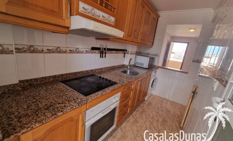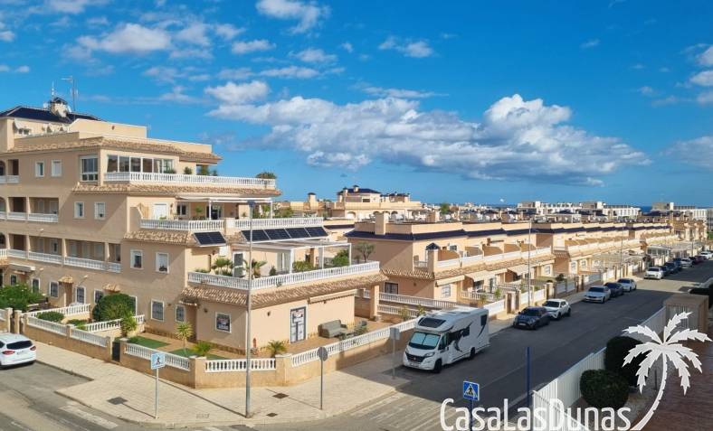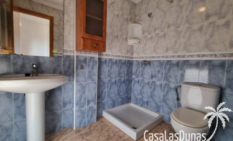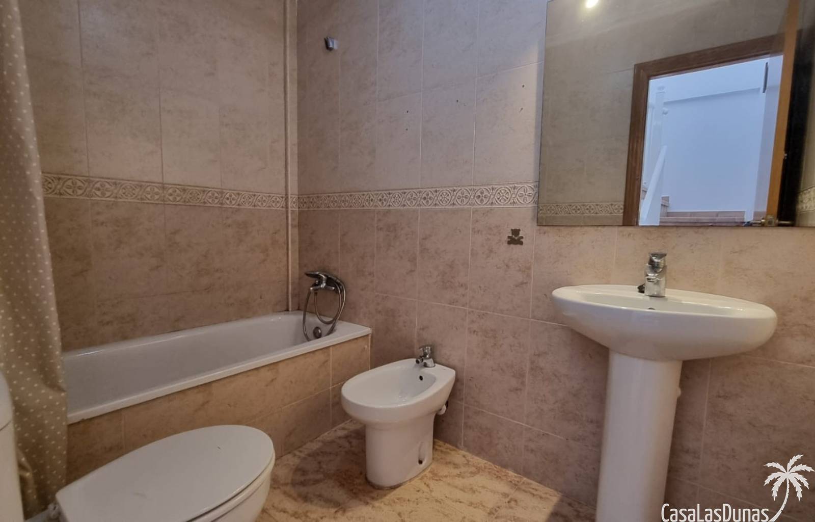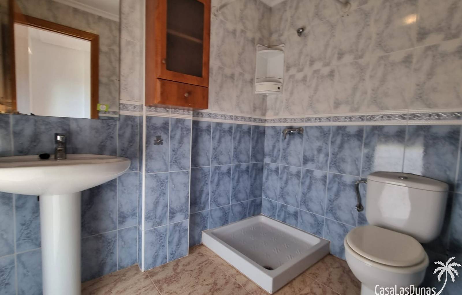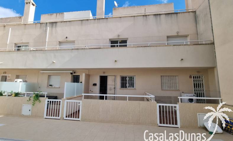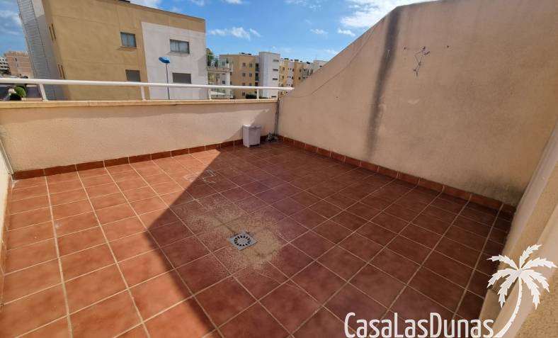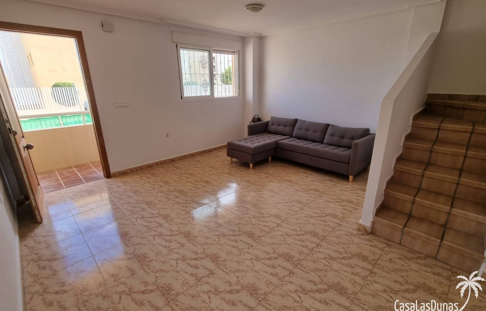 Dieses charmante, nach Süden ausgerichtete Reihenhaus in der C/ Cilantro (Los Dolses) ist das perfekte Zuhause für alle, die Komfort, viel Tageslicht und mediterranes Flair suchen. Im Erdgeschoss befinden sich ein heller Wohn- und Essbereich, eine halboffene Küche mit Zugang zur Terrasse und ein praktisches Gäste-WC. Vor dem Haus bietet sich eine großzügige 25 m² große Terrasse mit Parkmöglichkeit.