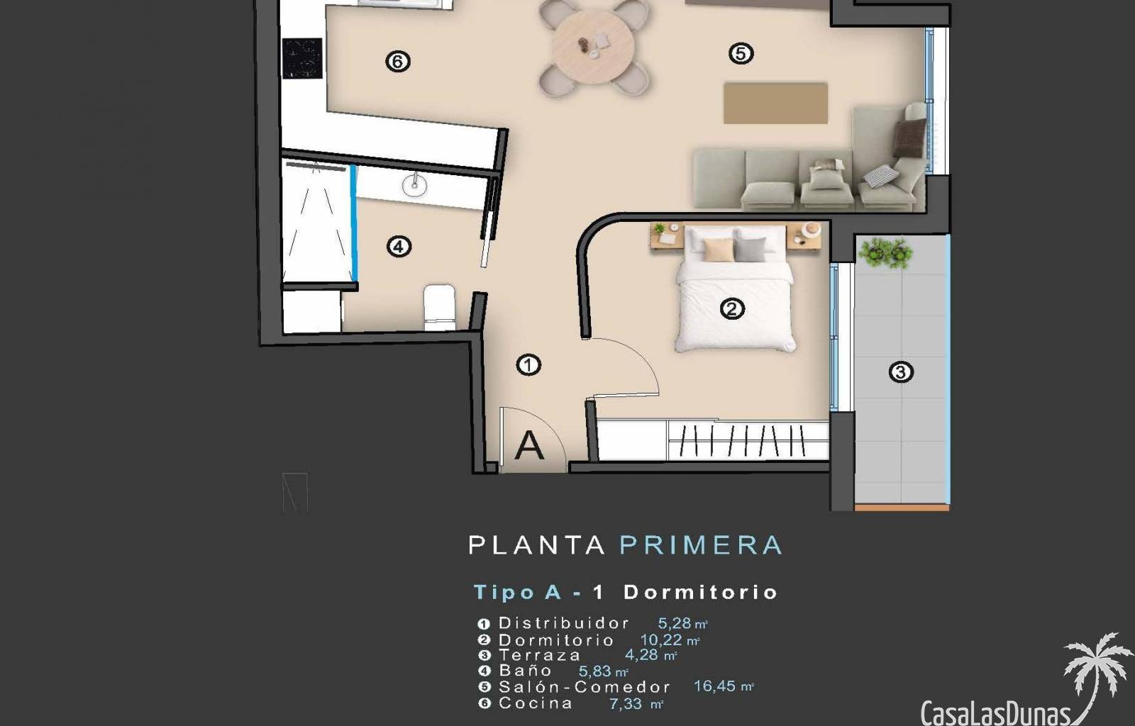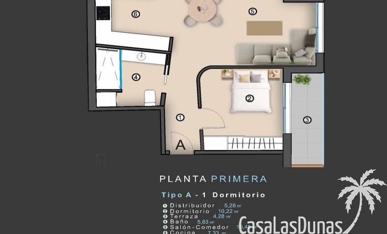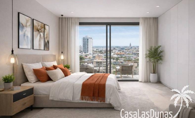 Die Wohnanlage besteht aus 10 modernen Apartments, die sich über das Erdgeschoss und vier Obergeschosse verteilen. Käufer können zwischen Grundrissen mit 1, 2 oder 3 Schlafzimmern wählen, darunter zwei exklusive Duplex-Penthäuser mit privater Terrasse, Solarium und privatem Swimmingpool.