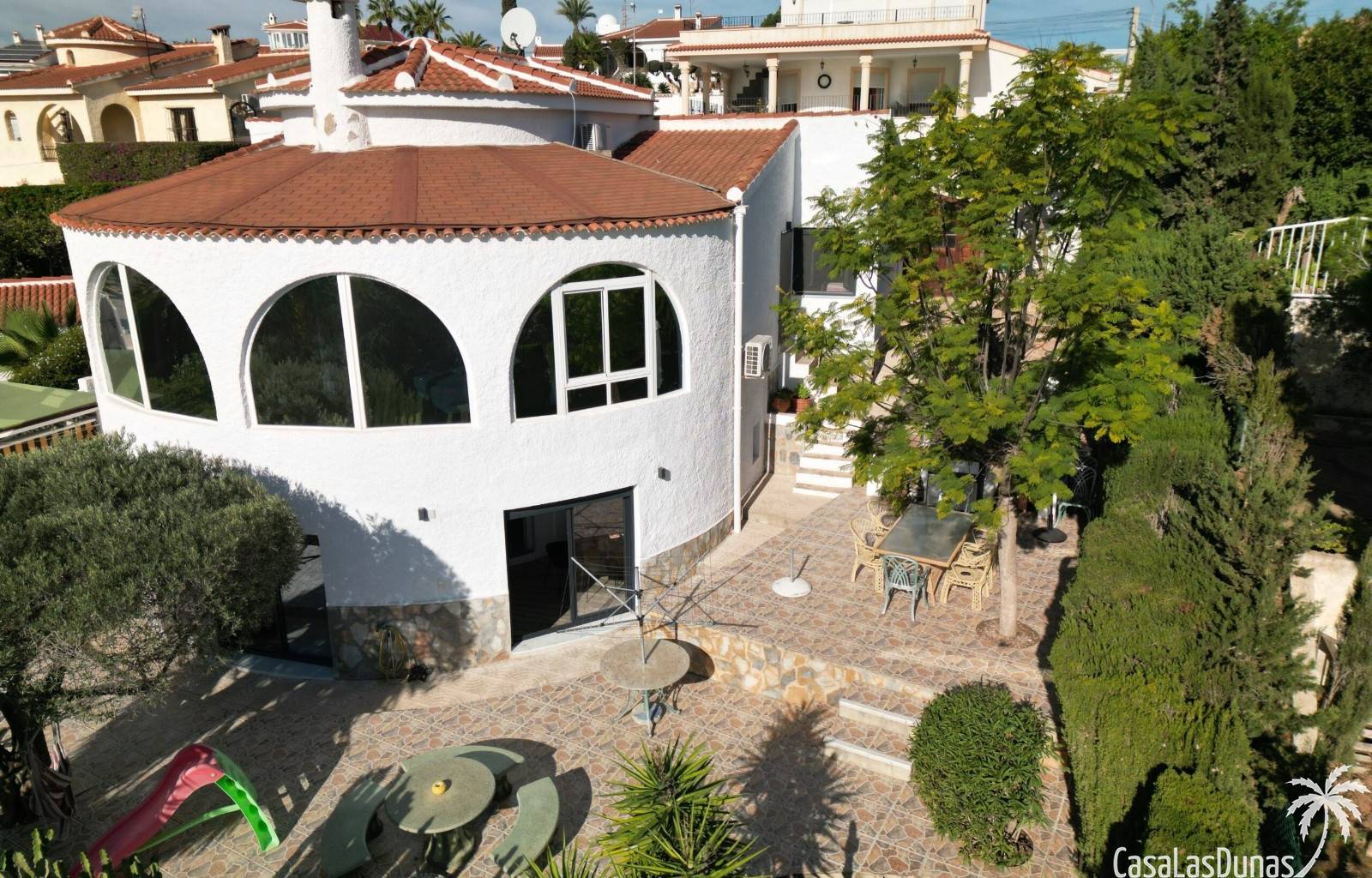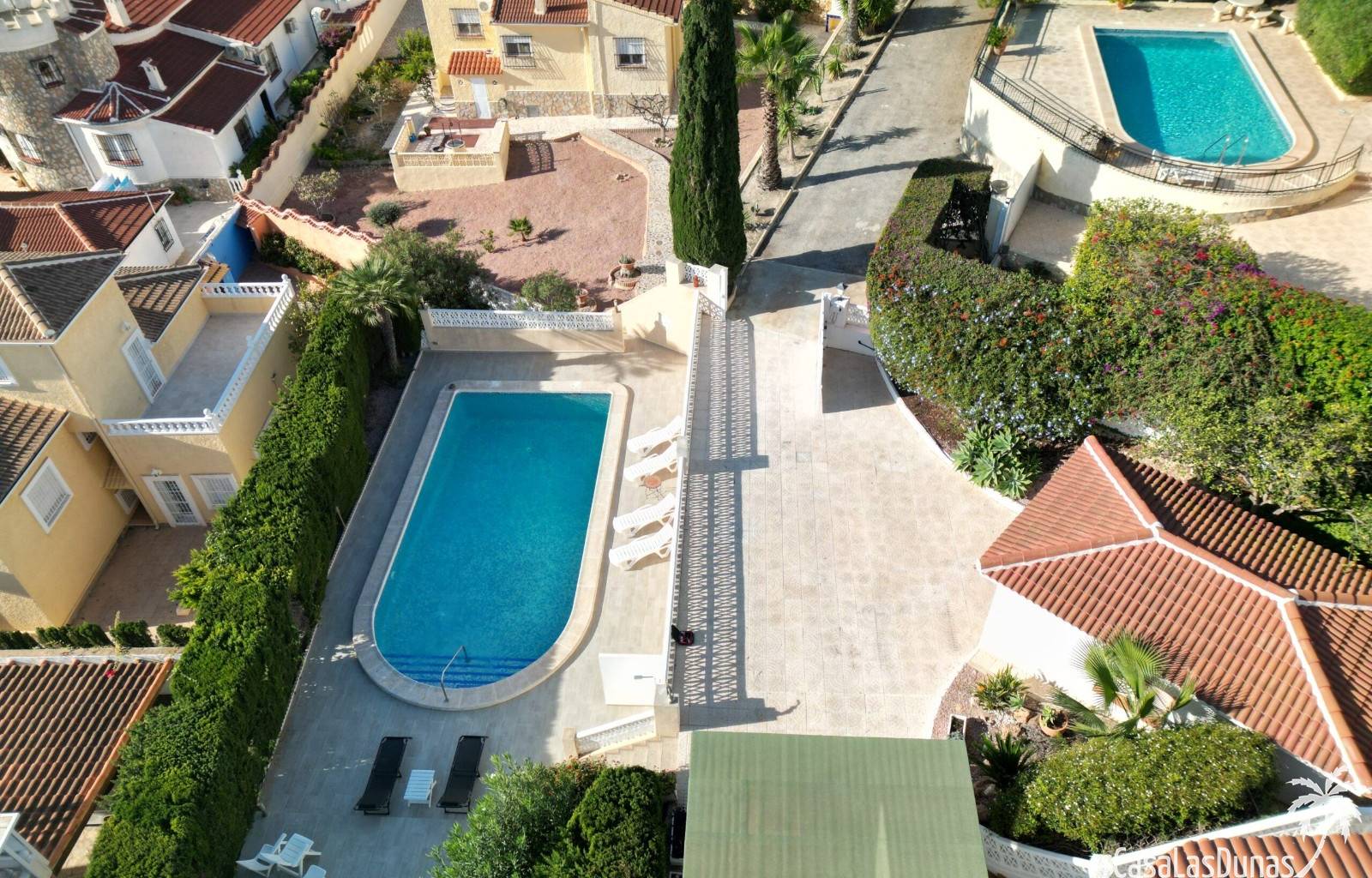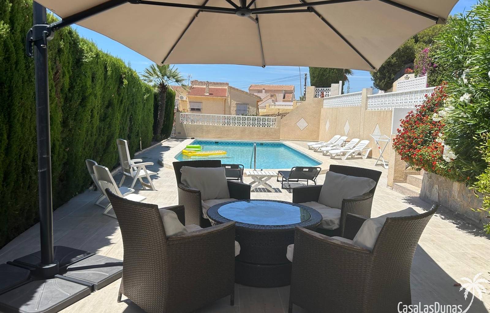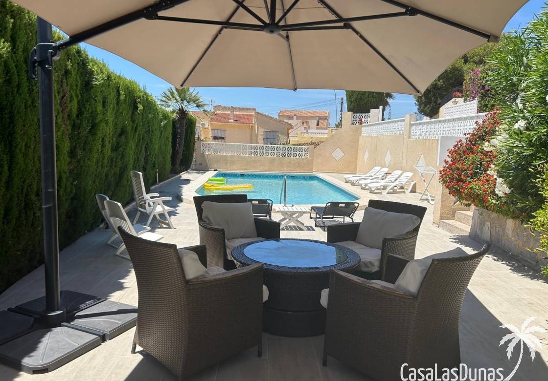 Wir freuen uns, Ihnen dieses herrliche, komplett renovierte Anwesen vorzustellen, das eine spektakuläre Aussicht mit außergewöhnlichem Komfort verbindet. Es besteht aus zwei völlig unabhängigen Etagen, bietet eine bebaute Fläche von 200 m² und ein Grundstück von fast 1000 m².Diese atemberaubende Villa ist so konzipiert, dass sie einen Lebensstil voller Luxus und Komfort bietet. Sie befindet sich in einer privilegierten Gegend, nur wenige Schritte vom Zentrum von Ciudad Quesada und dem prestigeträchtigen Golfplatz La Marquesa entfernt und genießt eine unschlagbare Lage.Mit 5 Schlafzimmern und 3 Badezimmern, darunter ein en-suite Badezimmer, bietet die Immobilie reichlich Platz, ideal für eine große Familie oder diejenigen, die gerne Gäste empfangen.Die Lage ist strategisch günstig, in der Nähe von Geschäften, Restaurants, öffentlichen Verkehrsmitteln und nur wenige Minuten vom Strand und dem Stadtzentrum entfernt. Alles in allem ist diese Luxusvilla die perfekte Wahl für diejenigen, die eine anspruchsvolle Immobilie in einer unschlagbaren Umgebung suchen.Eine wahre Oase des Friedens und der Ruhe! Über eine private Zufahrt gelangt man zu den elektrischen Toren mit Fernöffnungssystem. Am Eingang befindet sich ein geräumiger Innenhof, in dem bis zu vier Autos bequem geparkt werden können. Dieser große Hof trennt auch die Garage von einem überdachten Parkplatz, der sich direkt unter der Treppe befindet, die zum Hauptgeschoss führt.Die Immobilie befindet sich auf einem Grundstück, das von wunderschönen, gepflegten Gärten umgeben ist, die die Schönheit der Immobilie unterstreichen. Im Außenbereich befindet sich ein 10x5 Meter großer privater Swimmingpool, der die verschiedenen Chill-out-Bereiche perfekt ergänzt und eine ideale Umgebung zum Entspannen und Genießen der freien Natur schafft. Außerdem steht den Bewohnern eine Außenküche mit Grill zur Verfügung, um Gäste zu bewirten oder angenehme Mahlzeiten im Freien zu genießen.Wenn man die geschwungene Außentreppe im mediterranen Stil hinaufsteigt, trifft man auf der rechten Seite auf einen offenen Flur, der nicht nur als Eingang, sondern auch als effektive Wärmedämmung dient.Im Obergeschoss zieht die atemberaubende Aussicht die Blicke auf sich. Der Wohn- und Essbereich ist perfekt in die moderne Küche integriert, wodurch ein offener und heller Raum entsteht. Die Küche ist mit einer imposanten zentralen Insel, hochwertigen Geräten und reichlich Stauraum ausgestattet und ist somit der ideale Ort zum Kochen und für die Bewirtung von Gästen.Der Schlafbereich ist in zwei Bereiche unterteilt: Einer umfasst das geräumige Hauptschlafzimmer mit eigenem Bad und spektakulärem Blick auf den Salzsee; der andere besteht aus zwei weiteren Schlafzimmern, die sich ein Bad teilen. Alle Schlafzimmer sind mit wärmeisolierten Fenstern, zentraler Klimaanlage und Internetverteilungssystem in jedem Zimmer ausgestattet. Außerdem verfügt die Immobilie über eine Alarmanlage, die an alle Fenster angeschlossen ist, zwei Sicherheitskameras und eine Sicherheitstür.Die untere Etage bietet ein geräumiges, offenes Wohn- und Küchenkonzept mit großen Fenstern und Blick auf den privaten Garten. Auf dieser Etage befinden sich zwei Schlafzimmer und ein großes Badezimmer. Darüber hinaus gibt es einen Internetzugang über Modem im Verteiler im Obergeschoss sowie einen Anschluss an das Hauptalarm- und Klimasystem.Die Immobilie verfügt auch über eine geräumige Waschküche mit genügend Platz für eine Waschmaschine und einen Trockner.