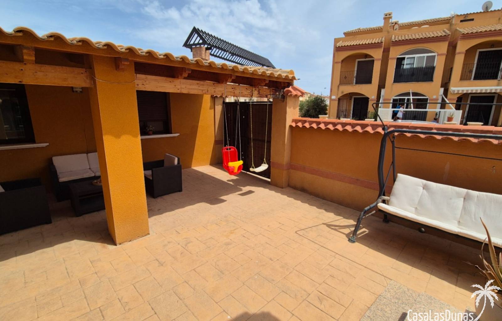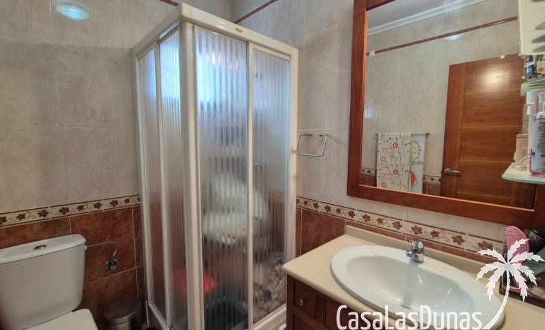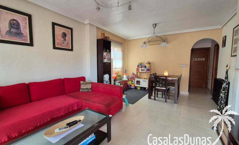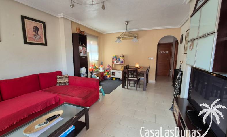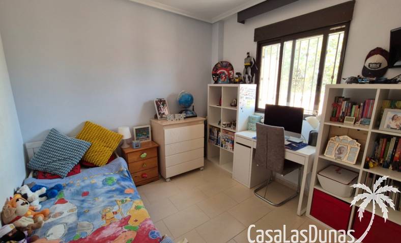 Diese reizende, nach Südosten ausgerichtete, unabhängige Villa befindet sich im begehrten Aguas Nuevas, Sektor 25, und bietet die perfekte Mischung aus Komfort, Privatsphäre und mediterranem Lebensstil. Eingebettet in eine sichere Wohnanlage mit Gemeinschaftspool verfügt die Immobilie über 2 geräumige Schlafzimmer und 2 moderne Badezimmer, von denen eines ein en-suite Badezimmer ist.