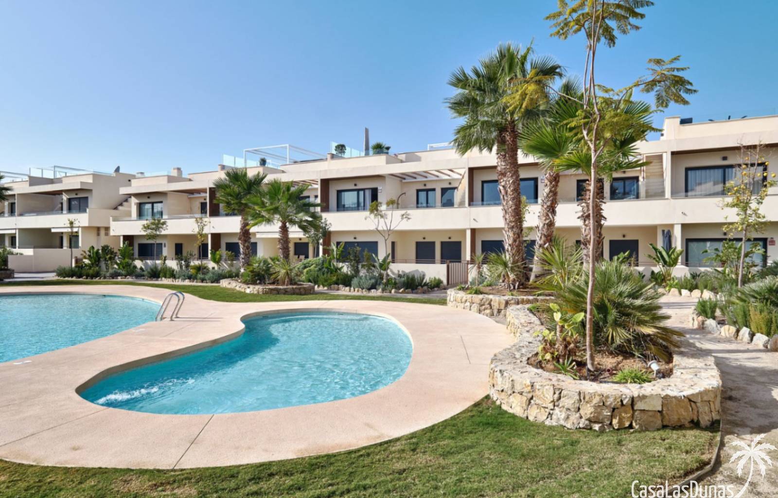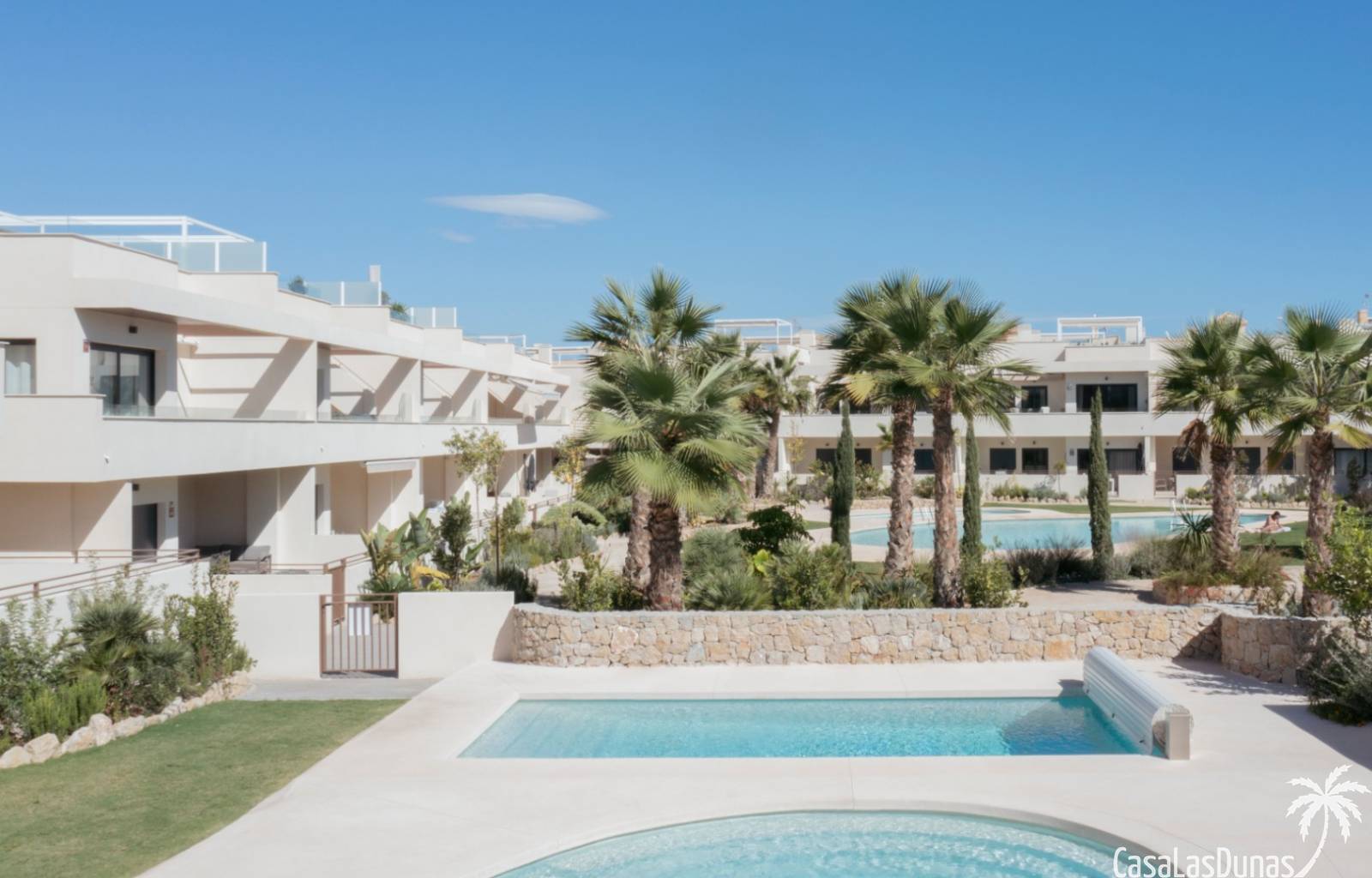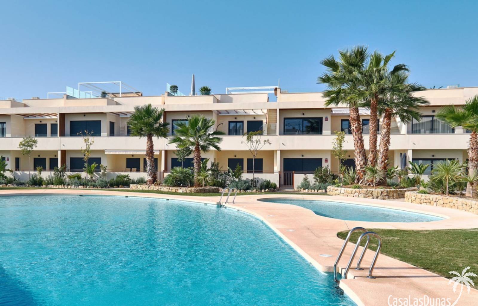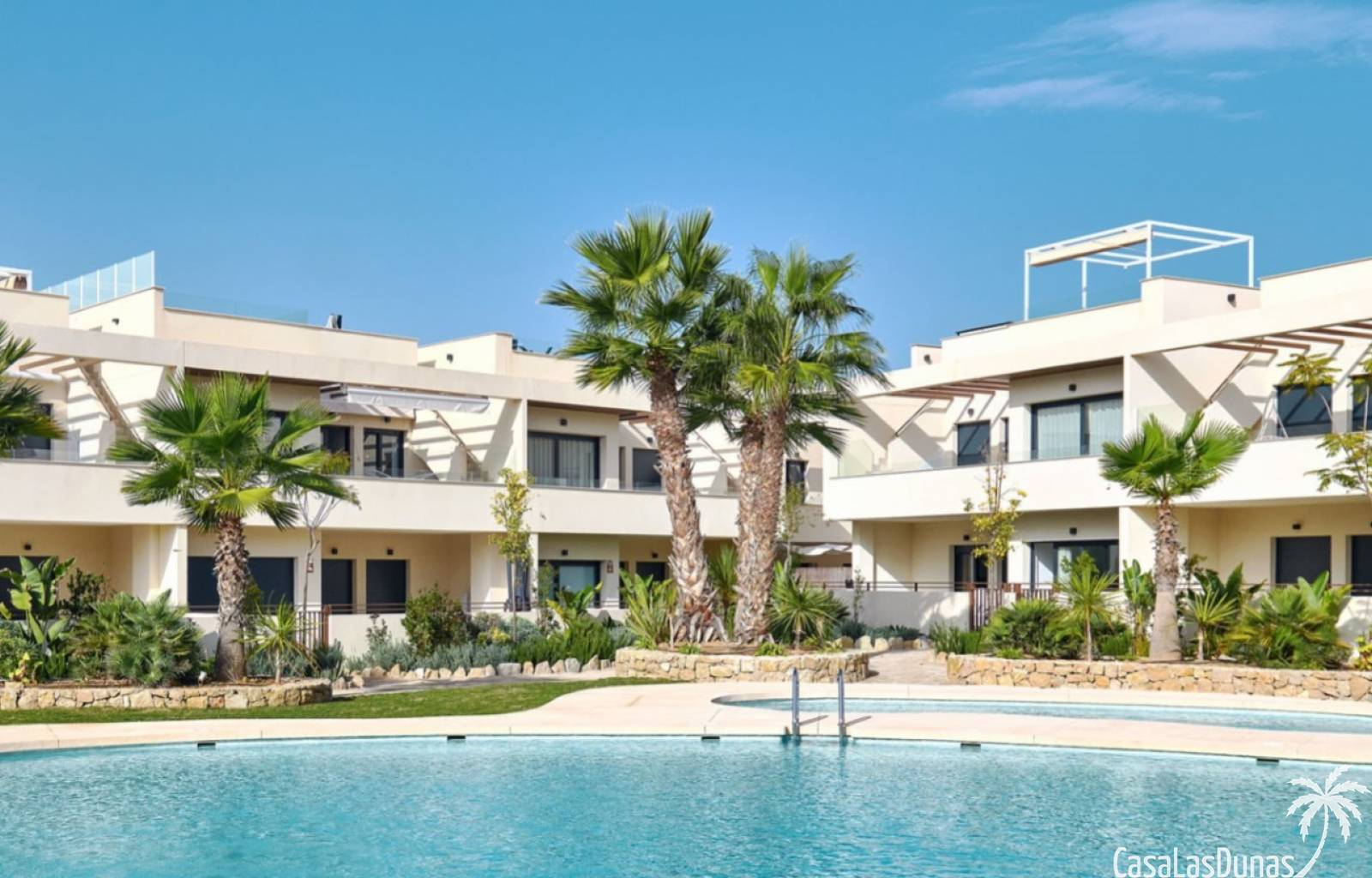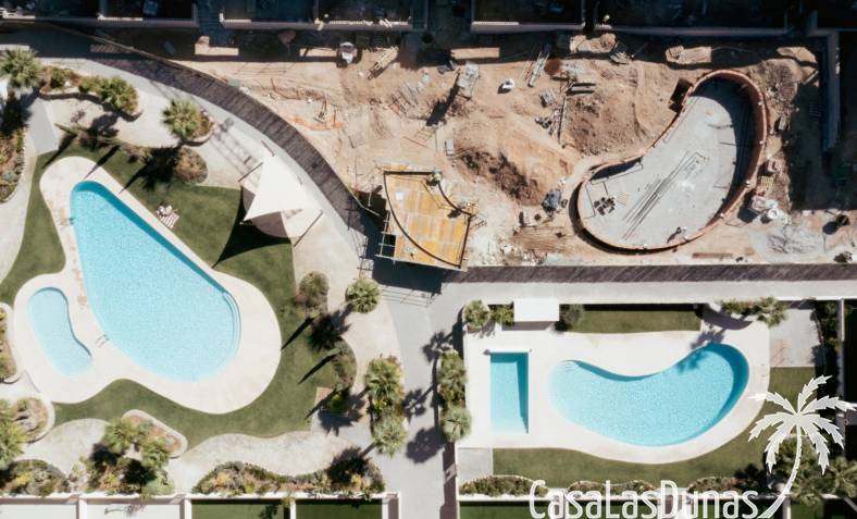 Großer zentraler mediterraner Garten3 große SchwimmbäderKlimaüberwachte PoolanlageKinderpoolAufzug für alle WohnungenUniverselle ZugänglichkeitFitnessstudio und AußenfitnessbereichChill-out-BereichPicknickbereichSehr große und helle Terrassen und VerandenBio-klimatisches und mediterranes DesignUnterirdische Privatparkplätze40 Minuten von den Flughäfen Alicante & Murcia