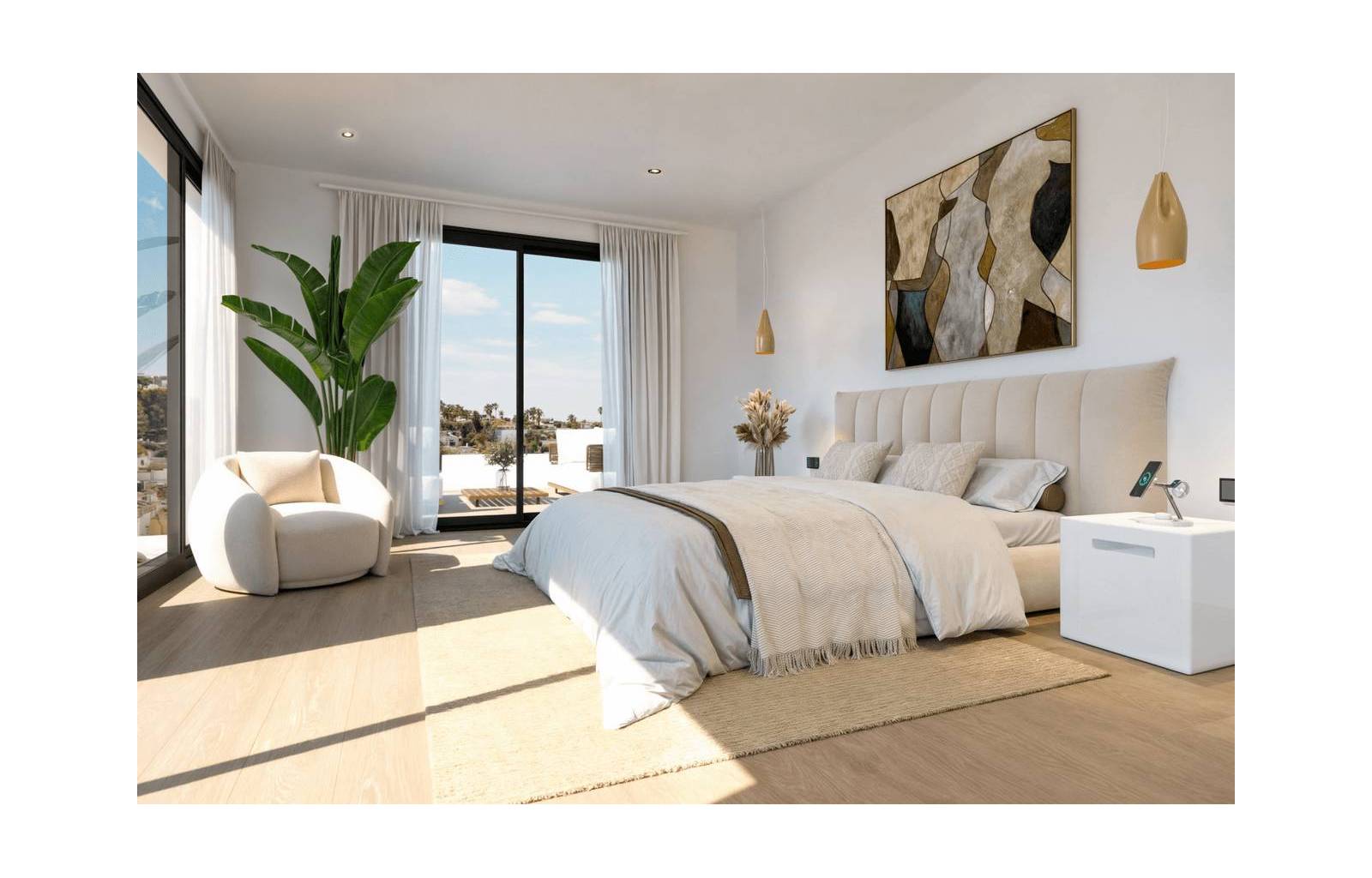 Dieses geschmackvoll gestaltete Neubauprojekt befindet sich in einer ruhigen Wohngegend von Pedreguer an der Costa Blanca und bietet einen atemberaubenden Panoramablick auf Meer und Berge. Die freistehende Villa mit einer Wohnfläche von 210 m² liegt auf einem wunderschönen Grundstück mit privatem Pool, vier Schlafzimmern, vier Badezimmern, einem großzügigen, offenen Wohnbereich mit Wohnzimmer, Essbereich und Küche sowie einer Dachterrasse mit Solarium. Das 1.250 m² große Grundstück garantiert viel Privatsphäre und Ruhe. Dank der günstigen Lage sind die Autobahn, das Einkaufszentrum Portal de la Marina und die Küstenstädte Dénia und Jávea schnell zu erreichen.