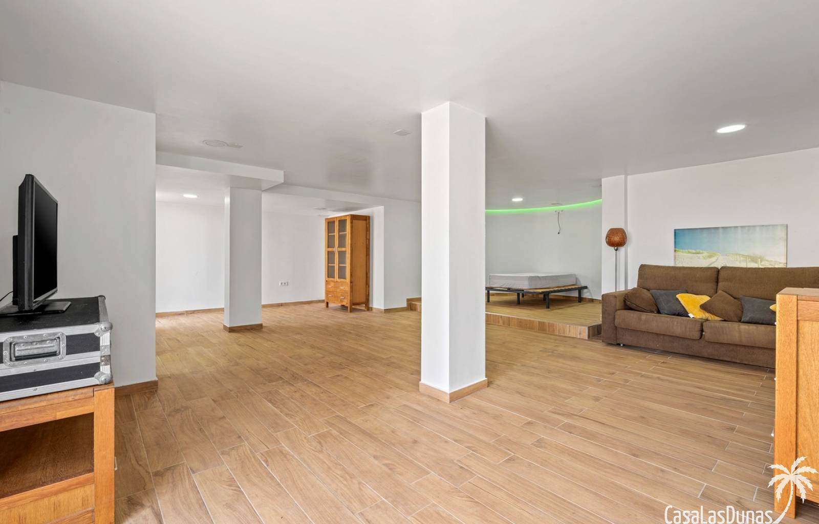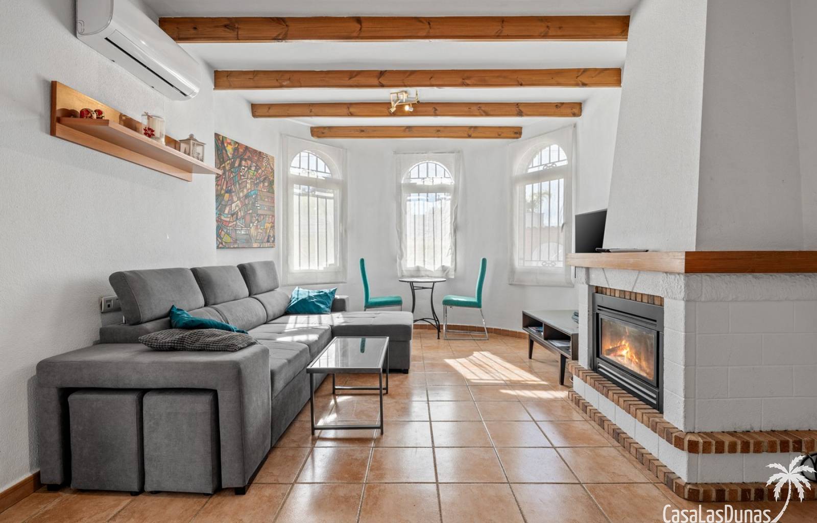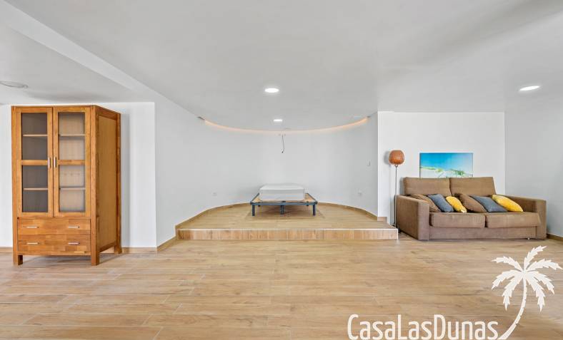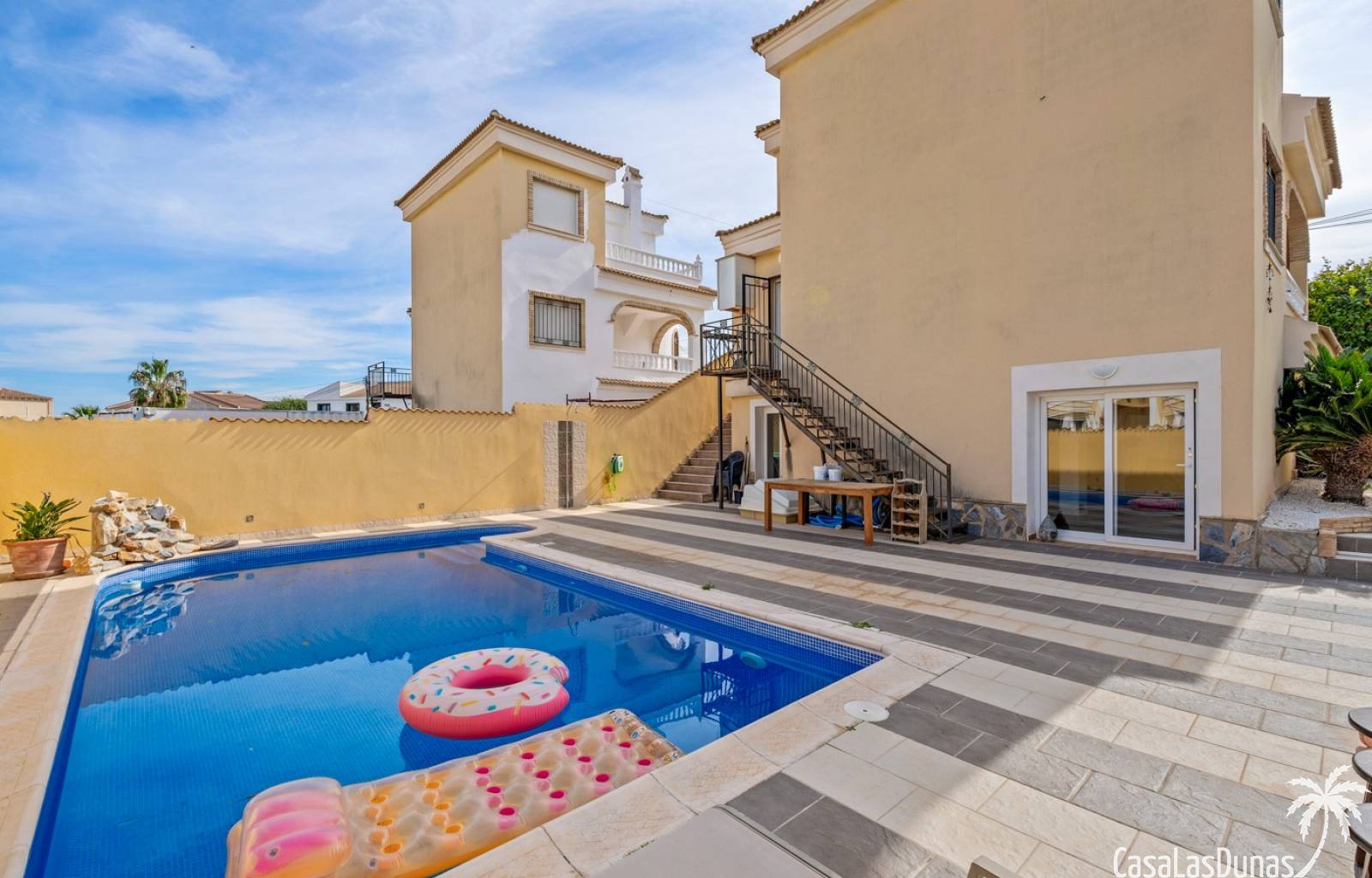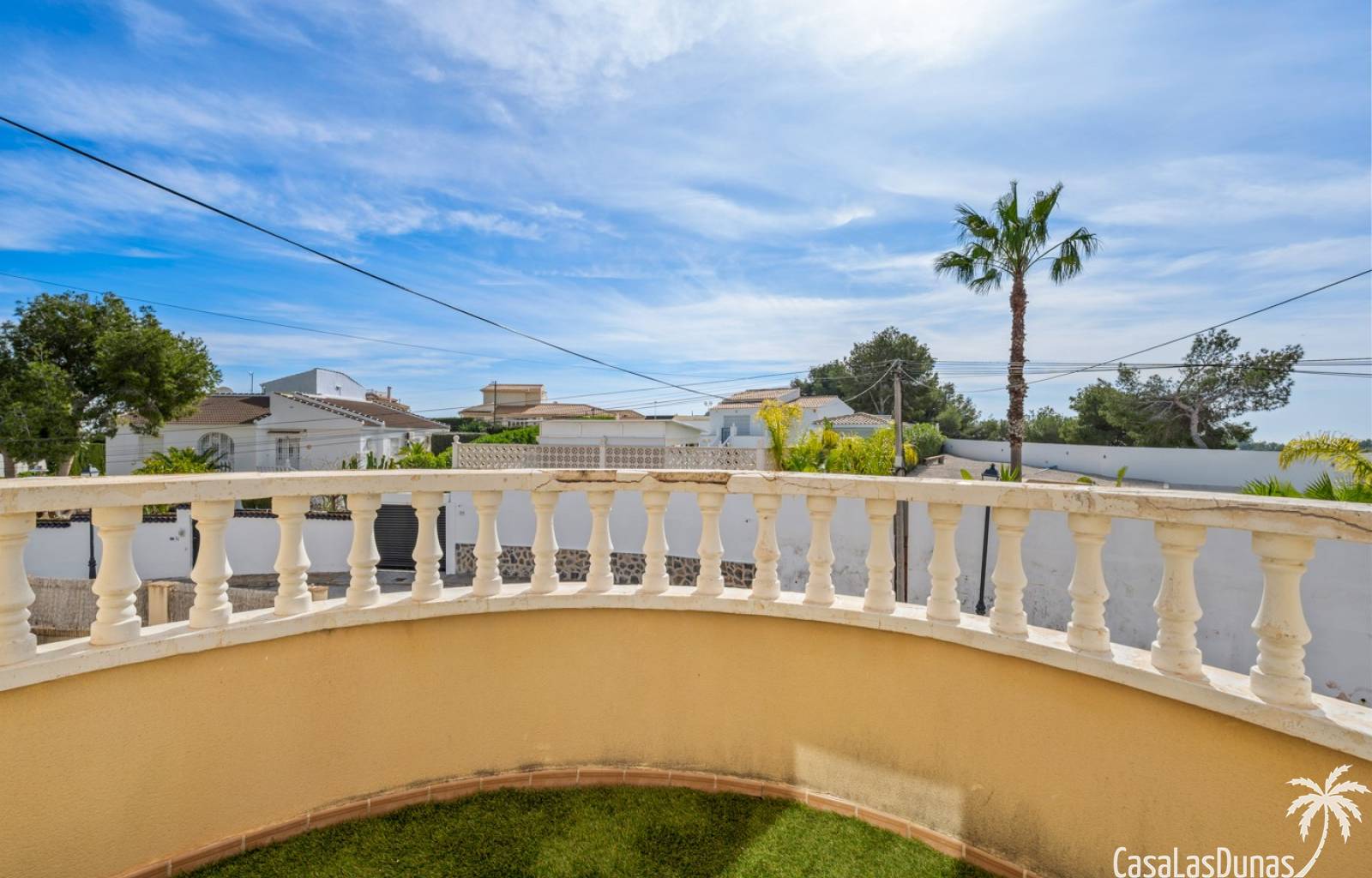 Der pflegeleichte Garten mit Kunstrasen schafft eine grüne, gepflegte Atmosphäre ohne großen Pflegeaufwand, sodass Sie sich vollkommen entspannen und das spanische Klima genießen können. Der vorhandene Whirlpool macht das Außenleben noch komfortabler und einladender.