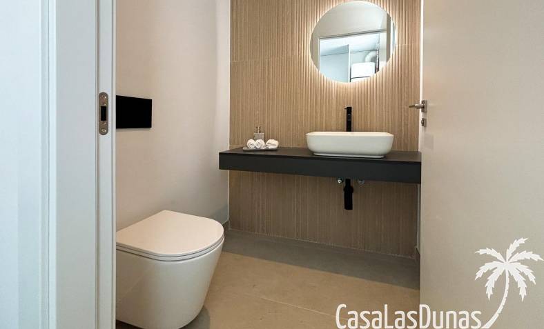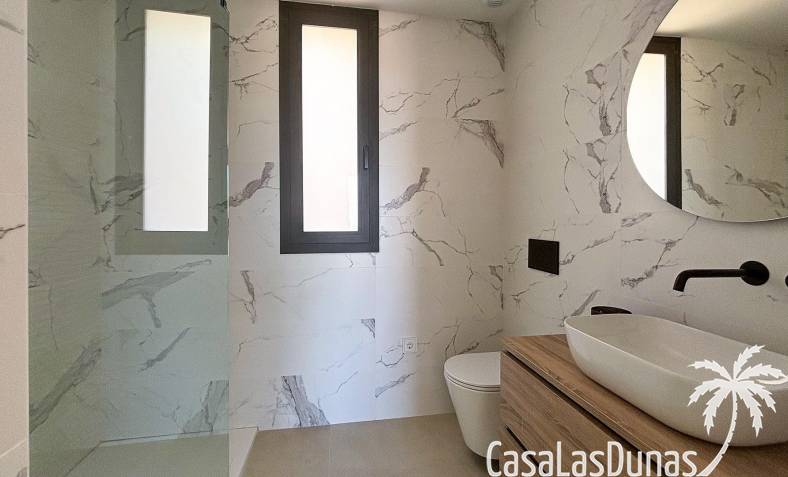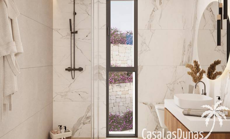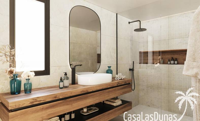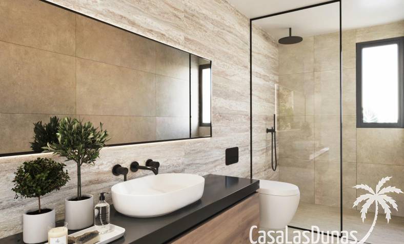 Die Aufteilung dieser Villen ist so konzipiert, dass sie Ihnen im täglichen Leben Komfort bietet, mit voll ausgestatteten Küchen mit offenem Konzept, einschließlich Herd, Induktionskochfeld, Backofen, Dunstabzugshaube und Spülbecken. Die Bäder sind ebenfalls ausgestattet.