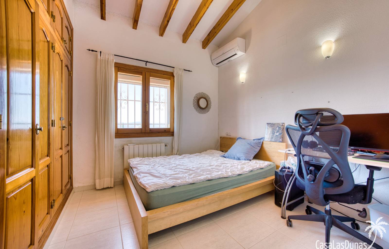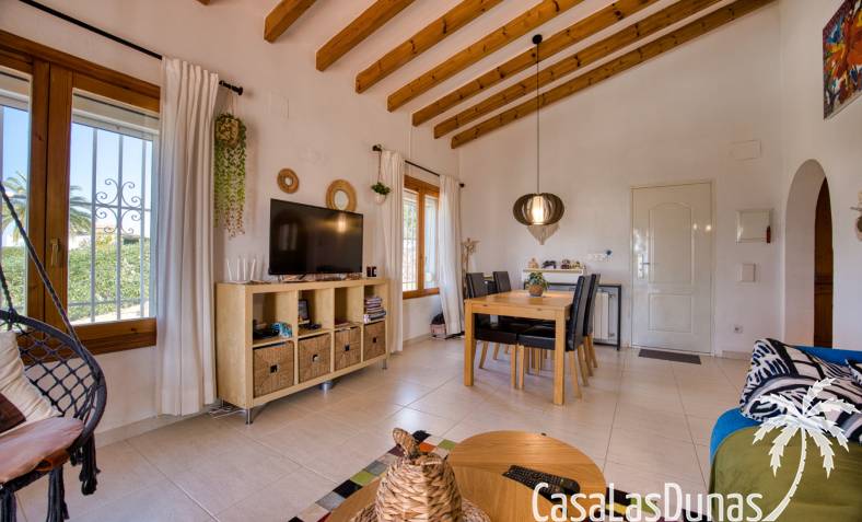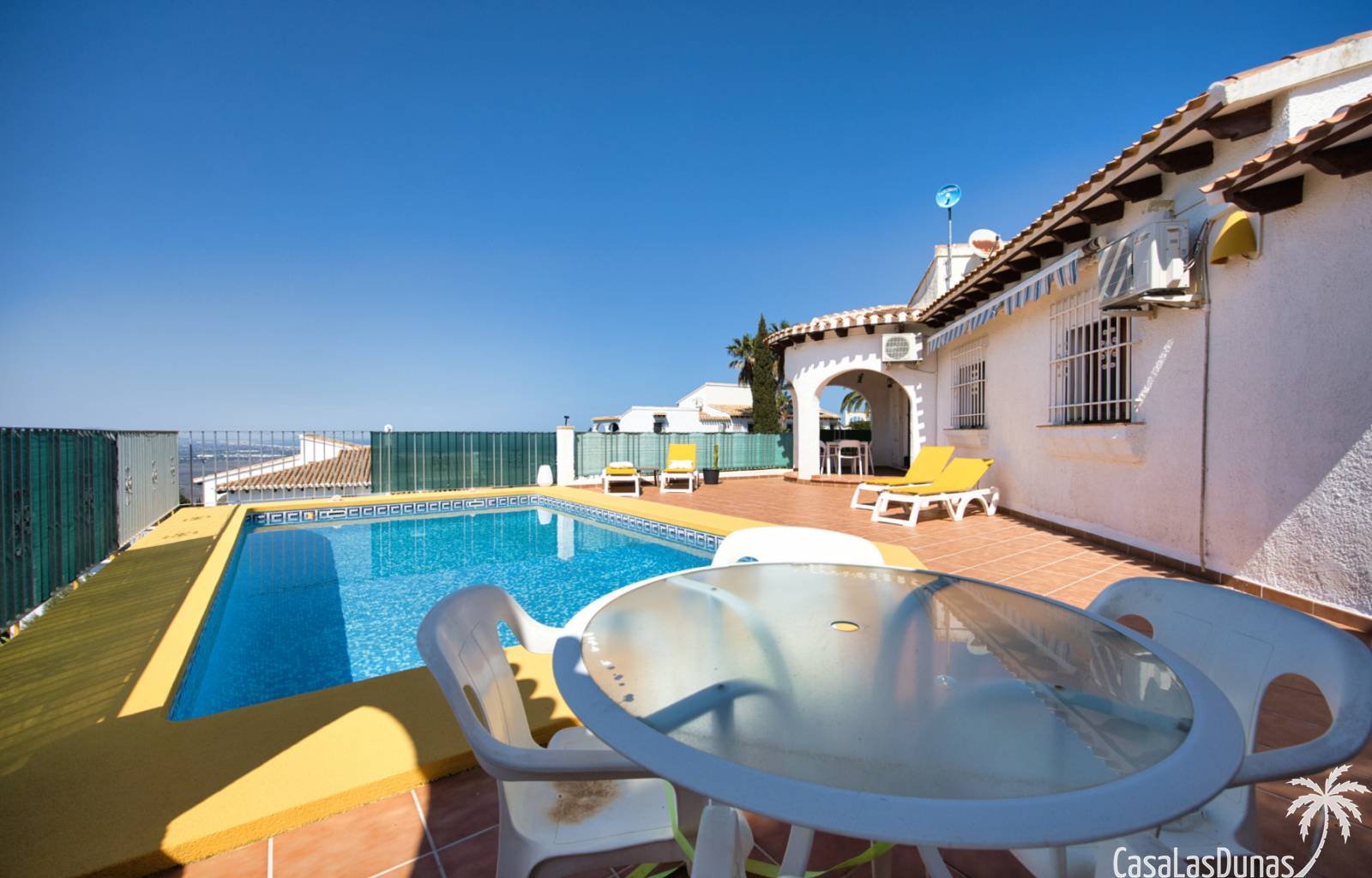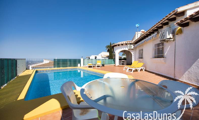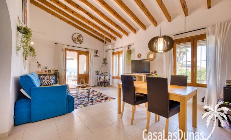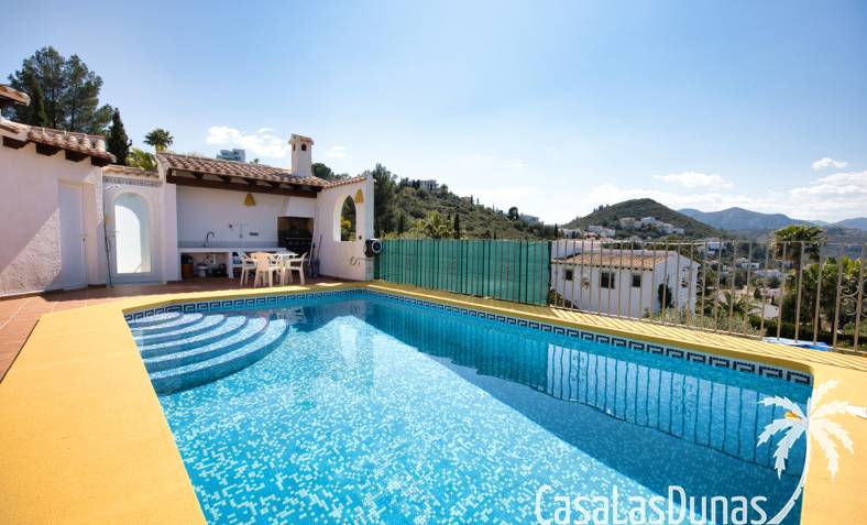 Diese ebenerdige Villa mit Wohnbereich und Pool auf einer Ebene liegt auf einem wunderschönen Grundstück im Wohngebiet Monte Pego und bietet einen Panoramablick auf die Küste von Denia-Oliva. Das Haus verfügt über ein Wohn-/Esszimmer, eine voll ausgestattete Küche, zwei geräumige Schlafzimmer und zwei Badezimmer, eines davon en suite. Vom Wohnzimmer aus gelangt man auf die großzügige Terrasse mit privatem Pool und atemberaubendem Panoramablick auf das Meer und die umliegenden Berge. Zusätzlich gibt es eine überdachte Terrasse, eine Sommerküche mit Grill und eine Außendusche. Ausreichend Parkplätze und eine Garage im Untergeschoss sind vorhanden. Bei Bedarf kann hier ein weiteres Schlafzimmer oder ein Studio eingerichtet werden.