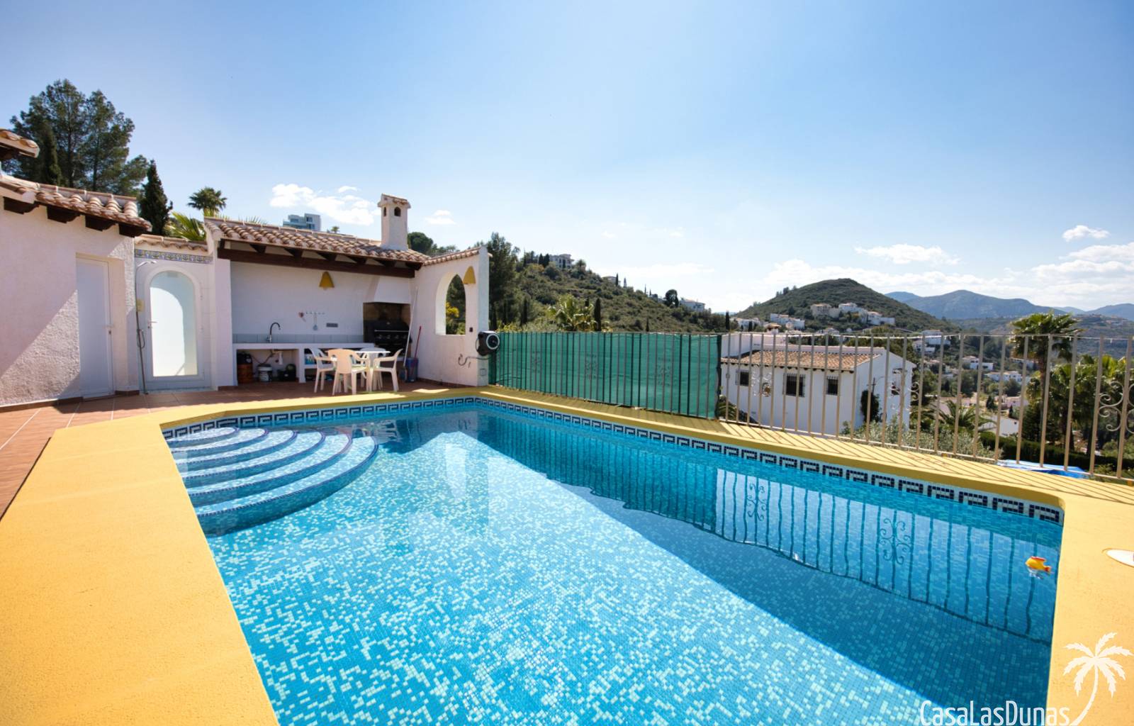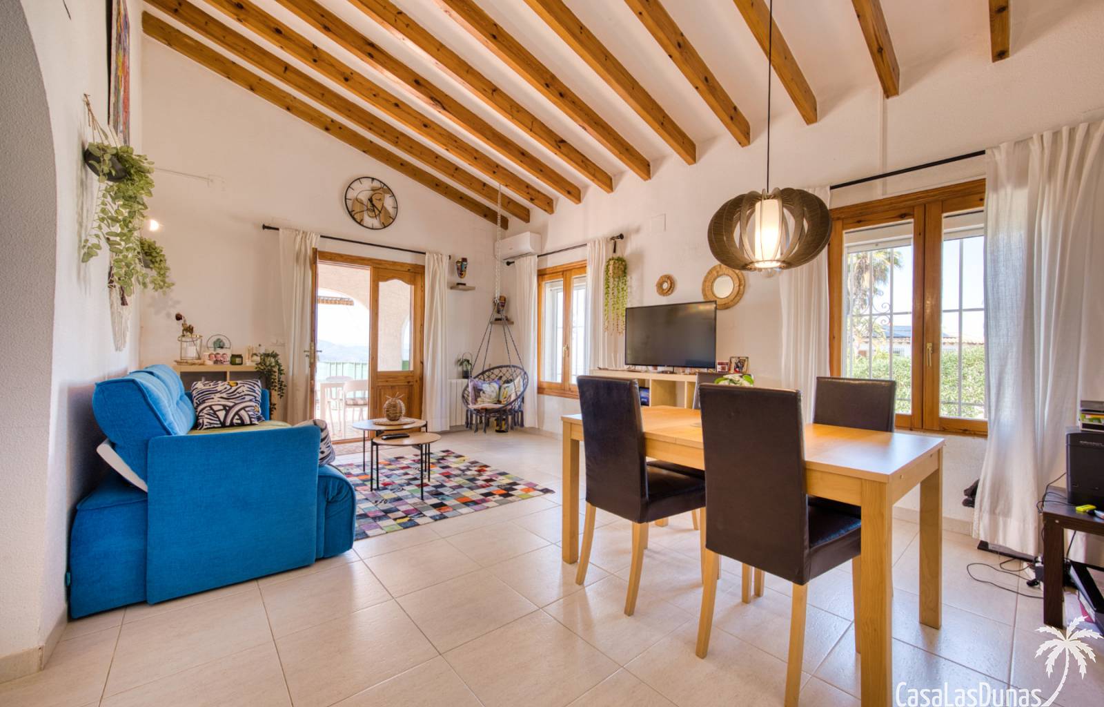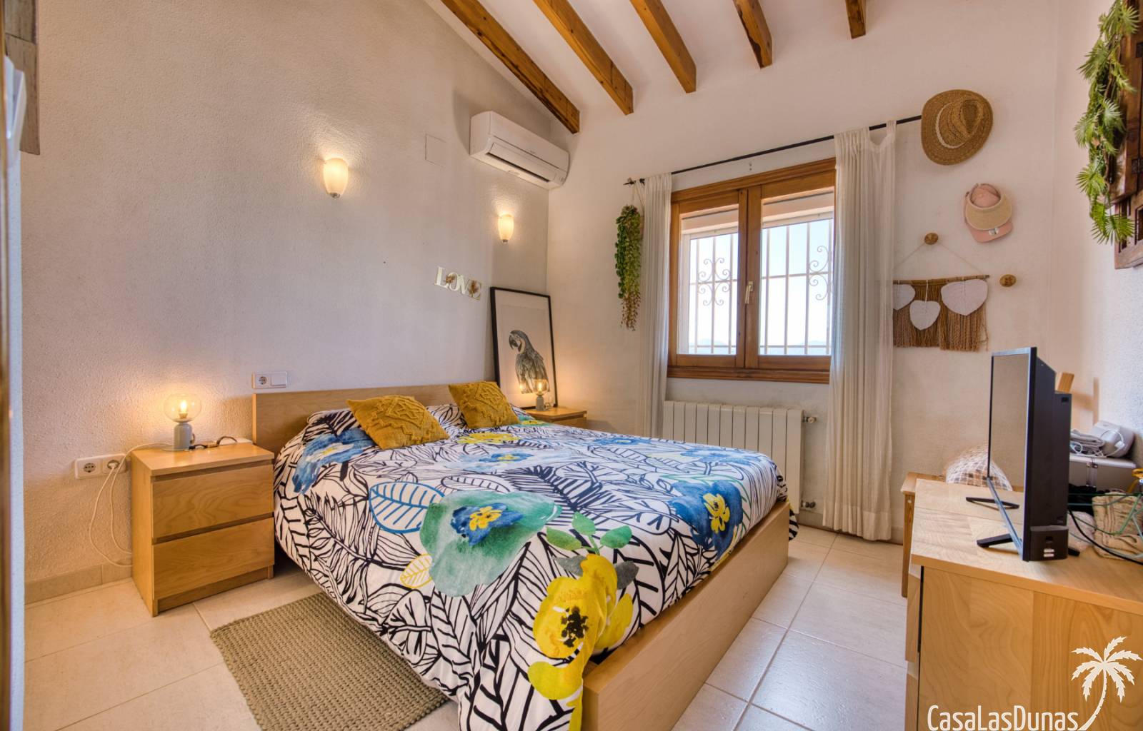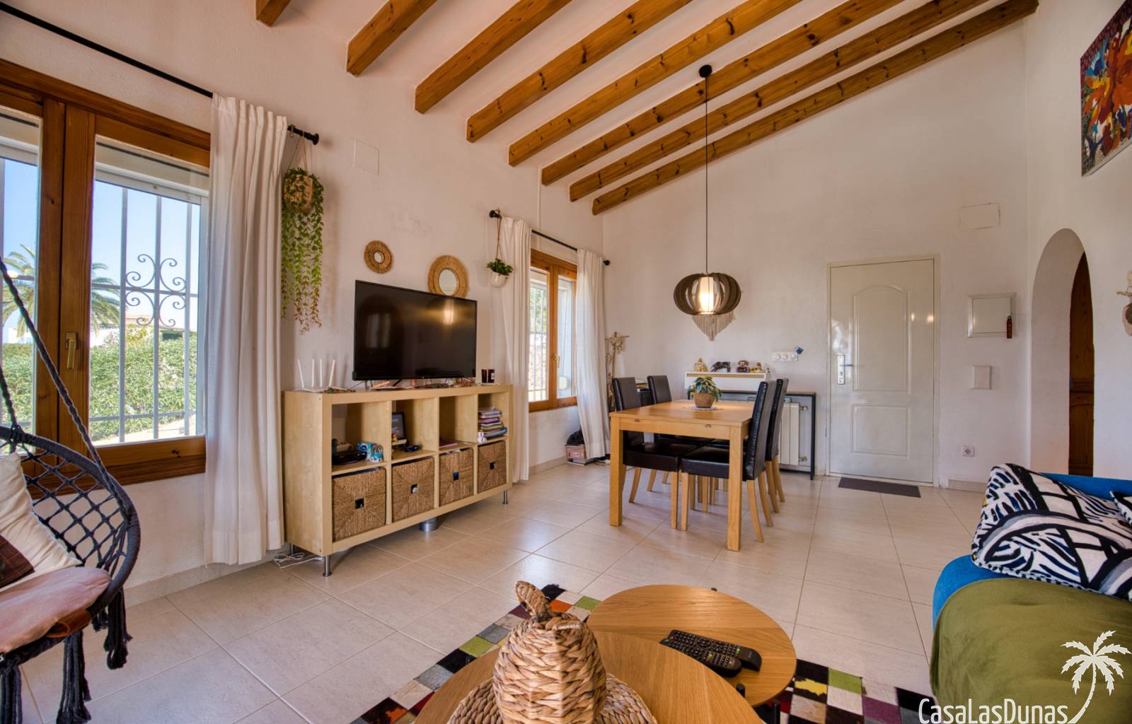 Diese ebenerdige Villa mit Wohnbereich und Pool auf einer Ebene liegt auf einem wunderschönen Grundstück im Wohngebiet Monte Pego und bietet einen Panoramablick auf die Küste von Denia-Oliva. Das Haus verfügt über ein Wohn-/Esszimmer, eine voll ausgestattete Küche, zwei geräumige Schlafzimmer und zwei Badezimmer, eines davon en suite. Vom Wohnzimmer aus gelangt man auf die großzügige Terrasse mit privatem Pool und atemberaubendem Panoramablick auf das Meer und die umliegenden Berge. Zusätzlich gibt es eine überdachte Terrasse, eine Sommerküche mit Grill und eine Außendusche. Ausreichend Parkplätze und eine Garage im Untergeschoss sind vorhanden. Bei Bedarf kann hier ein weiteres Schlafzimmer oder ein Studio eingerichtet werden.