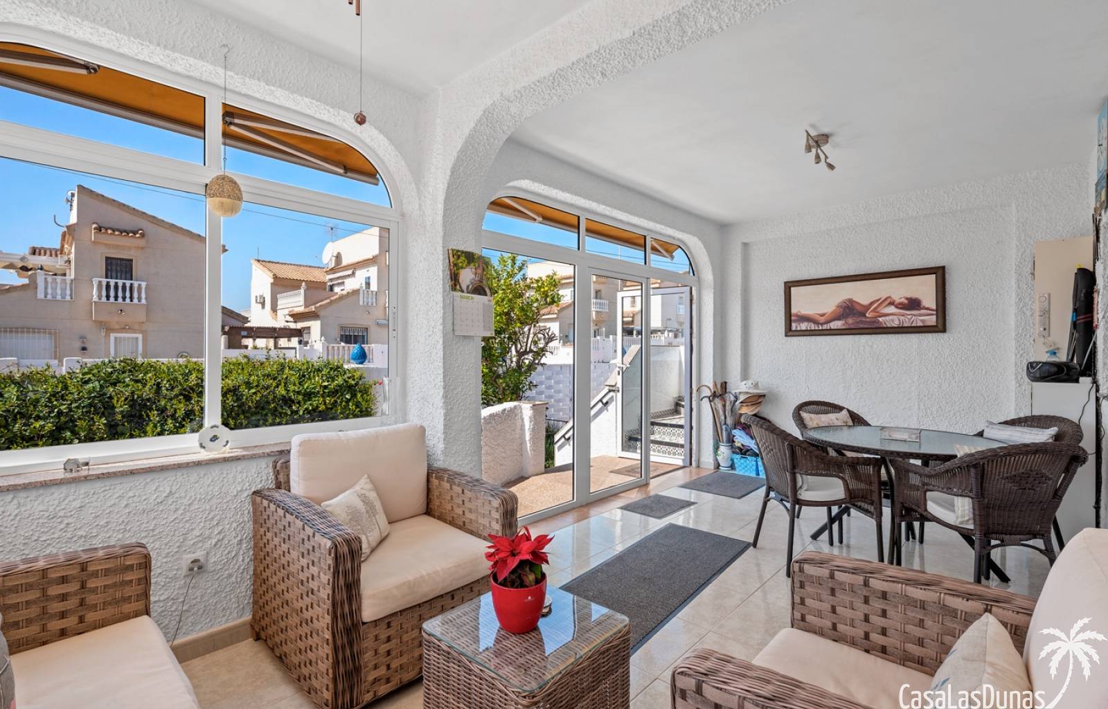 Das Haus besticht durch eine große, moderne Küche, die nahtlos in ein geräumiges Esszimmer übergeht und so eine ideale Atmosphäre für gesellige Treffen mit Freunden und Familie schafft. Angrenzend an das Esszimmer befindet sich ein helles Wohnzimmer, perfekt zum Entspannen und Genießen des Alltags. Zum Anwesen gehört außerdem ein Wintergarten, der zusätzlichen Wohnraum mit viel Tageslicht bietet.