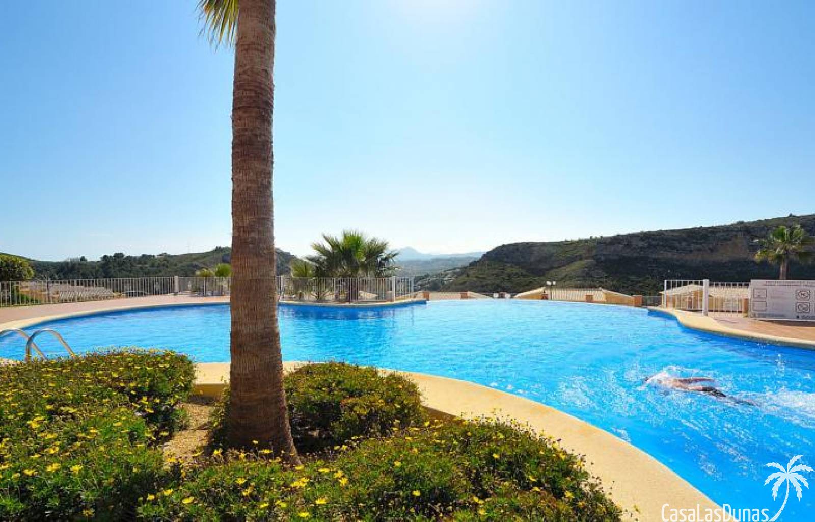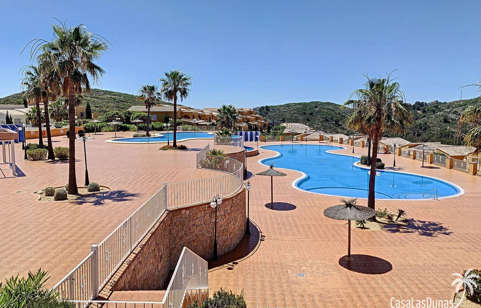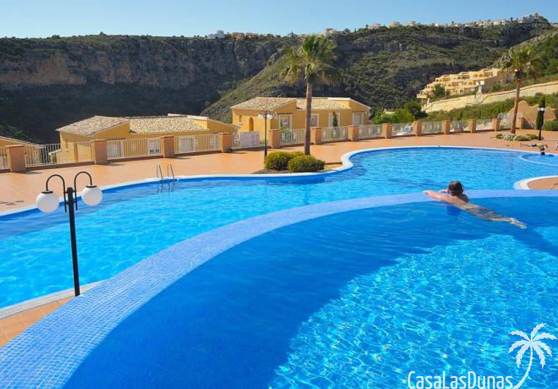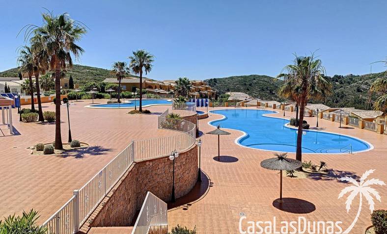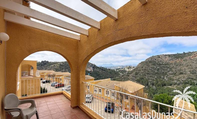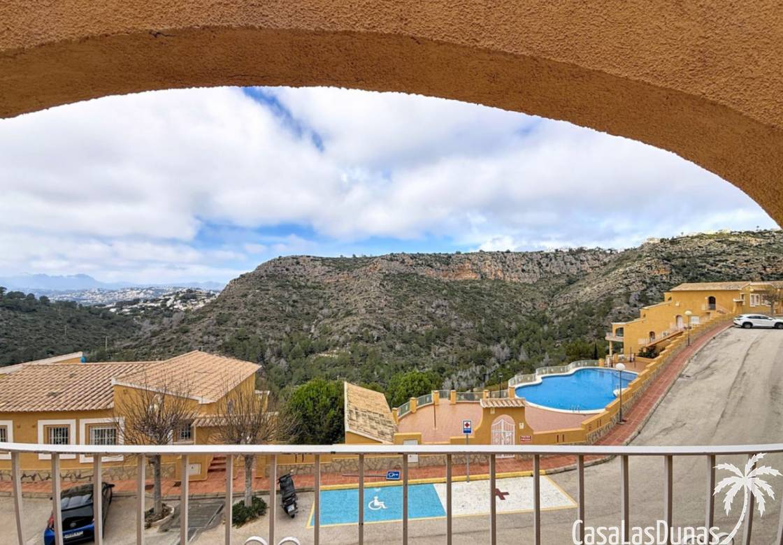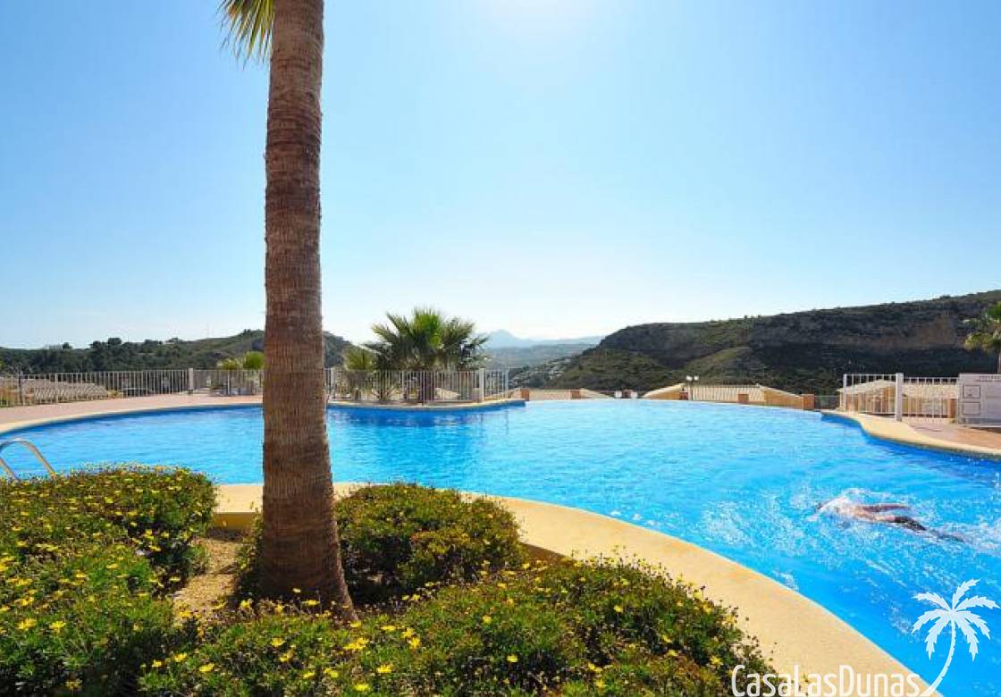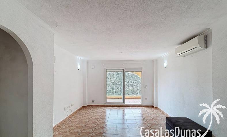Dieses komfortable Apartment in Cumbre del Sol besticht durch seinen praktischen Grundriss mit einem hellen Wohn-/Essbereich und einer offenen Küche sowie einem herrlichen Blick ins Tal. Die Wohnung verfügt über ein Schlafzimmer mit Doppelbett, ein zusätzliches Zimmer, das sich ideal als Büro oder Gästezimmer eignet, und ein voll ausgestattetes Badezimmer. Die 15 m² große private Terrasse mit Pergola bietet ganzjährig einen schönen Platz für ein Frühstück im Freien oder zum Entspannen. Dank der durchdachten Raumaufteilung und des geringen Pflegeaufwands ist diese Immobilie ideal als Hauptwohnsitz, Zweitwohnsitz oder Kapitalanlage an der Costa Blanca.
