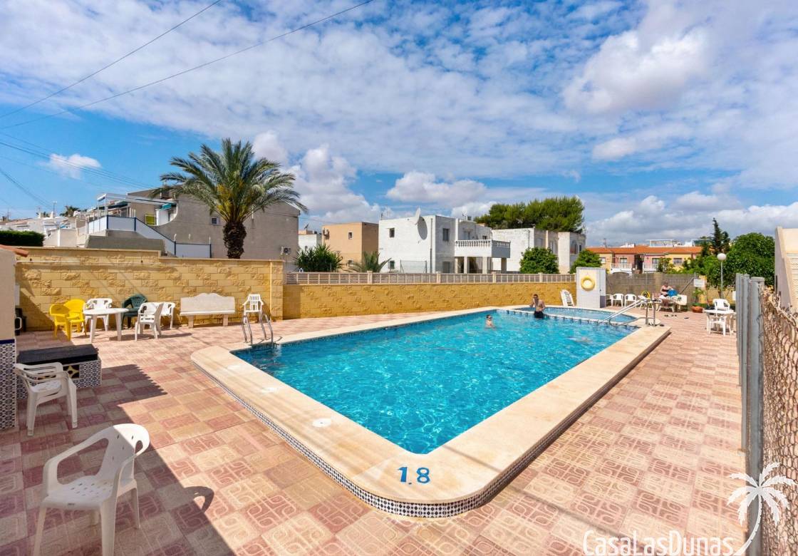Bungalow im Erdgeschoss mit privatem Garten und unabhängigem Zugang in einer Wohnanlage mit Gemeinschaftspool~Wenn Sie eine Immobilie mit Charme, Außenbereich und echter Unabhängigkeit suchen, ist dieses Bungalow eine sehr interessante Gelegenheit.~Die Wohnung verfügt über 1 Schlafzimmer, 1 Badezimmer sowie ein Wohnzimmer mit offener Küche, mit einer komfortablen und funktionalen Aufteilung. Besonders hervorzuheben ist die natürliche Helligkeit, die für ein angenehmes Wohngefühl sorgt.~Ein großer Vorteil ist der Außenbereich: ein großzügiger Vorgarten, ideal um das ganze Jahr über das Klima zu genießen, im Freien zu essen oder zu entspannen, sowie ein hinterer Patio, der zusätzlichen praktischen Raum bietet.~Die Immobilie befindet sich in einer Wohnanlage mit Gemeinschaftspool, hat jedoch einen entscheidenden Vorteil: einen eigenen privaten und unabhängigen Zugang, sodass Sie nicht durch die Anlage gehen müssen. Mehr Komfort, mehr Privatsphäre und das Gefühl eines eigenen Hauses.~Eine ideale Option sowohl als Hauptwohnsitz, Ferienimmobilie oder als Investition mit hoher Nachfrage in der Gegend.