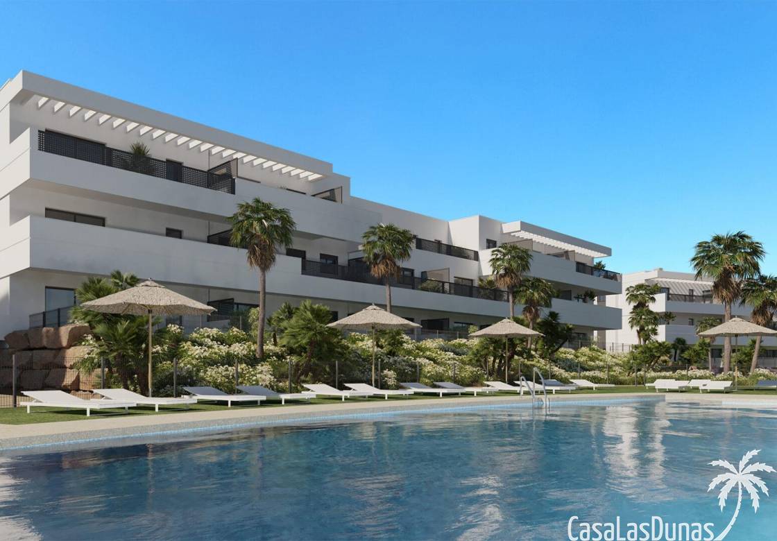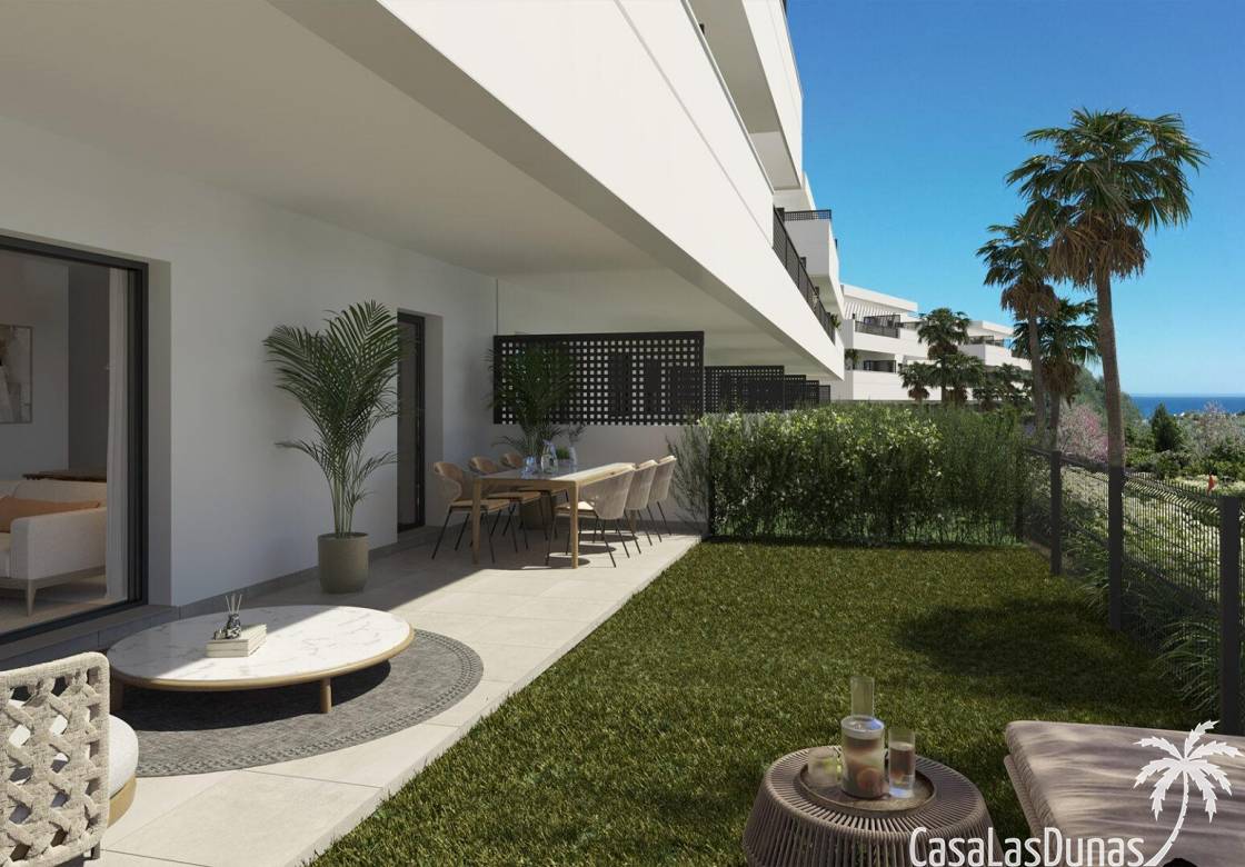 Neubau-Wohnanlage in Estepona, in der Sie viel mehr als nur ein Haus finden: Sie werden einen schönen Garten finden, in dem Sie Ihr Haus erweitern können.