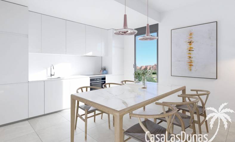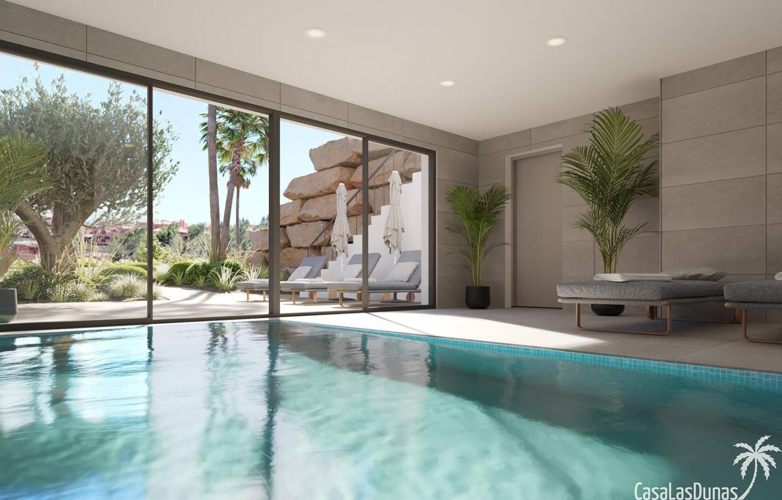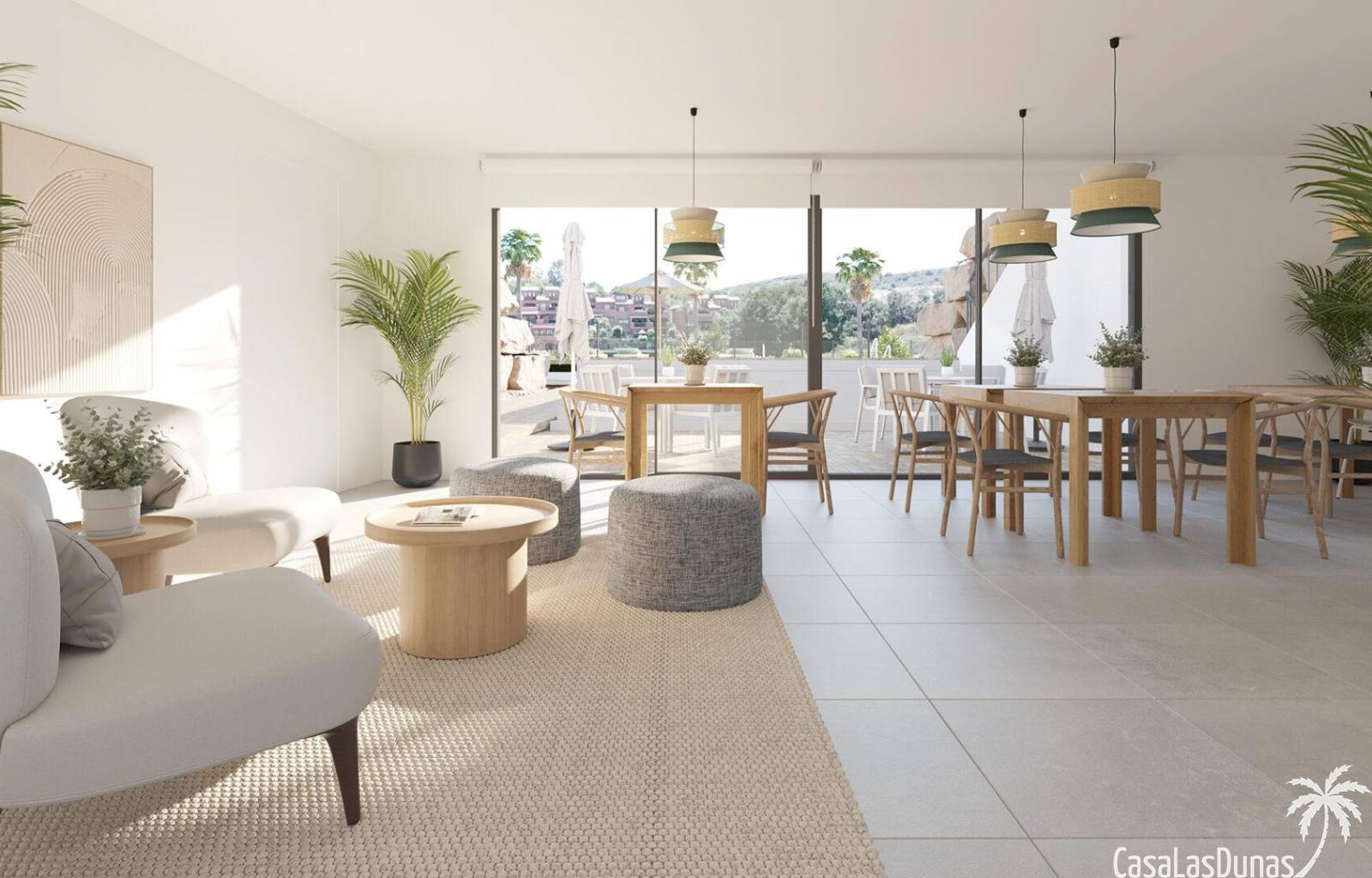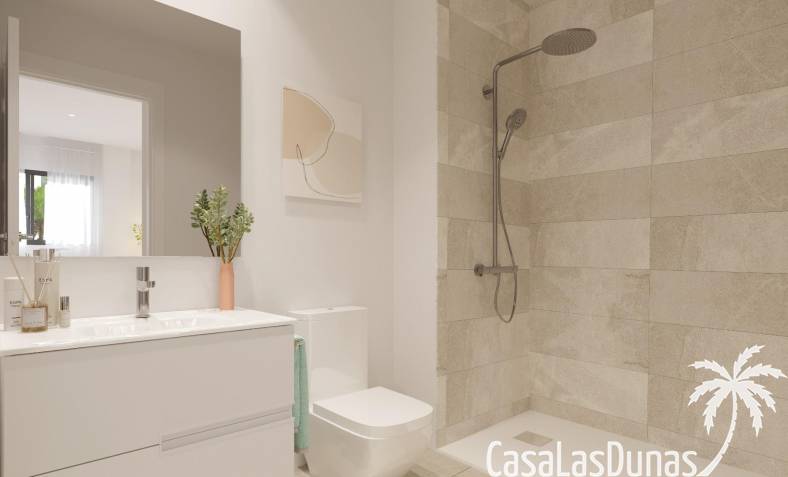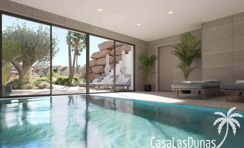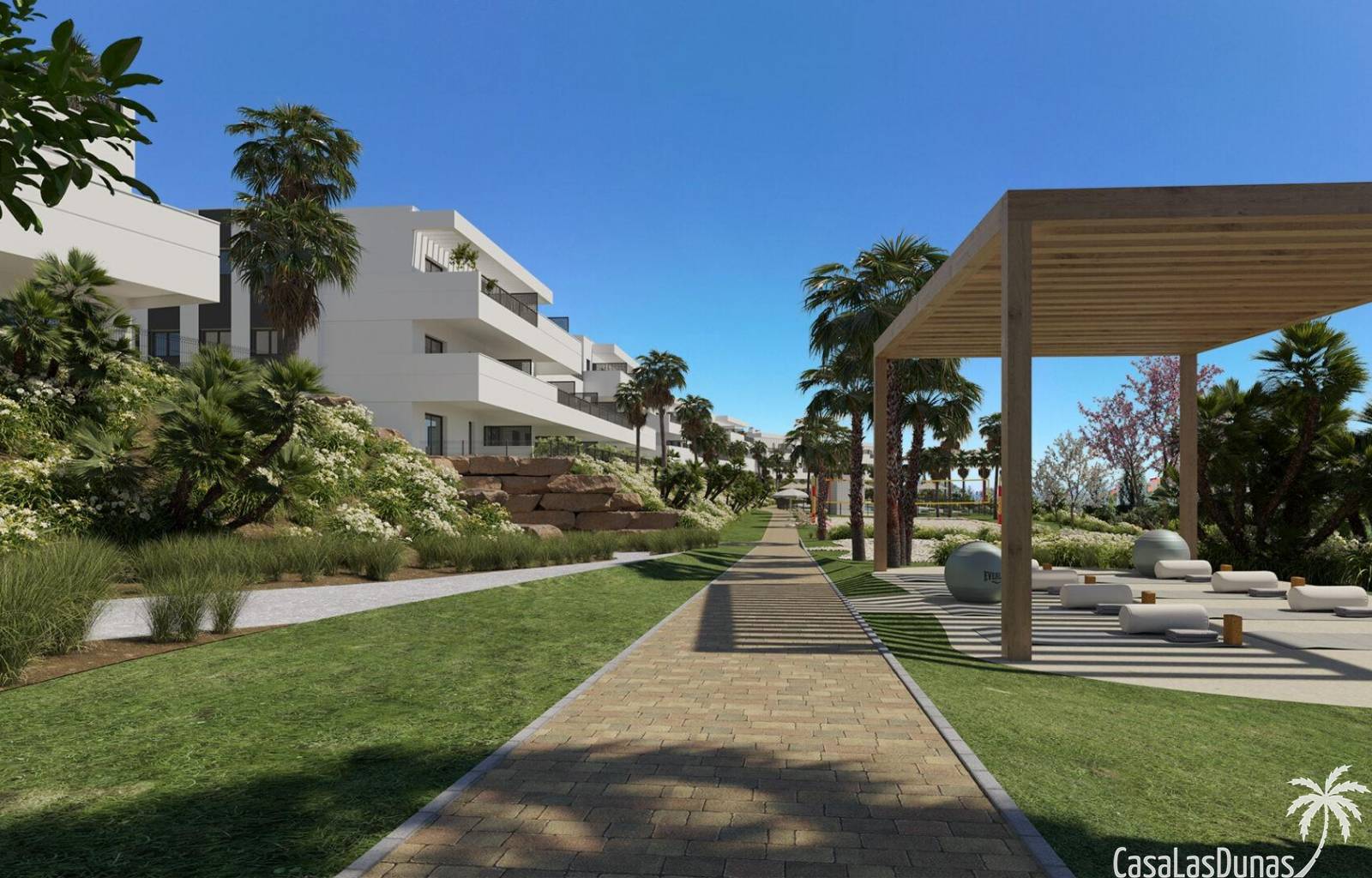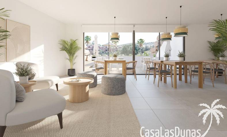 In den großzügigen Gemeinschaftsbereichen finden wir eine große Anzahl von Pflanzenarten rund um den Swimmingpool sowie eine Sporthalle, einen Meditationsbereich im Freien, ein Spa, einen Gemeinschaftsraum mit Co-Working, ein Beachvolleyballfeld, einen Kinderbereich und ein Putting Green. All diese gemeinschaftlichen Nutzungen und die herausragenden Gärten mit Palmen, Zitrus- und Aromapflanzen sowie die Wege, die durch diese Grünflächen führen, machen diese Anlage zu einem perfekten Ort, um das Klima, die Natur und die Ruhe zu genießen.
