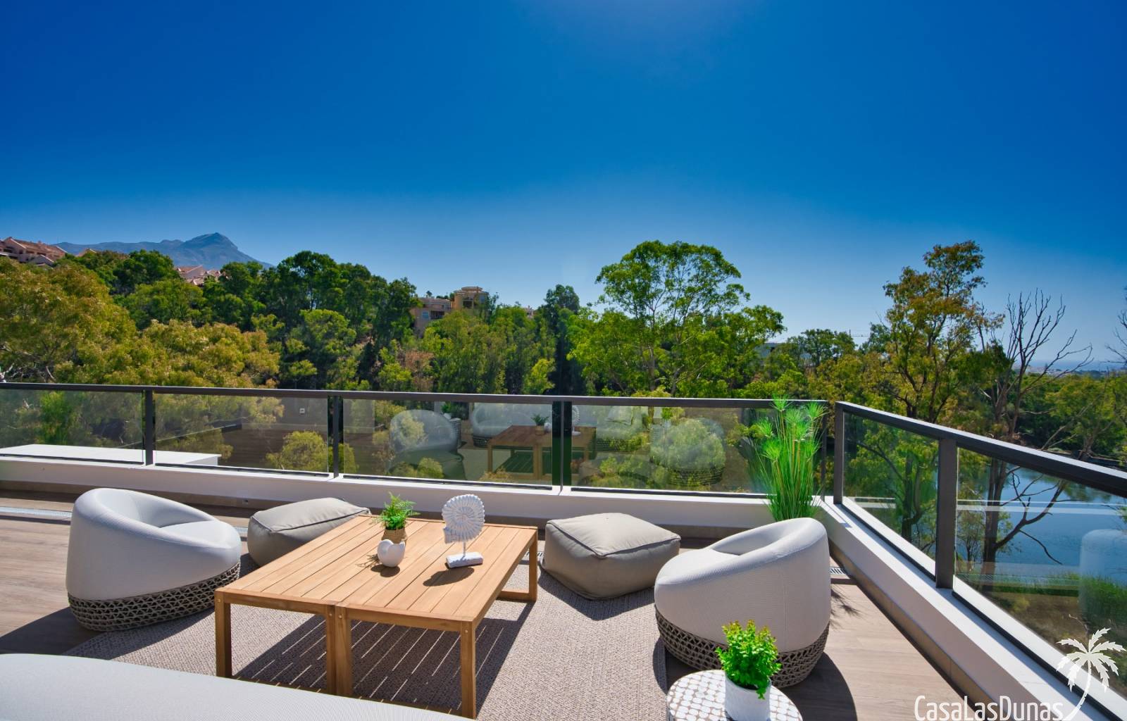 This new development comprises of 98 apartments distributed throughout several three storey buildings in contemporary Mediterranean style. This exclusive development has ground floor, first floor, penthouse and duplex apartments. All top floor apartments have direct access to their own private solarium. The properties are fully equipped with quality finishes, recognised brands and will be ready to move in. A storeroom and garage parking space are included in the price. The homes are surrounded by carefully landscaped gardens and four communal pools. The project has been designed to ensure that all of the homes enjoy impressive panoramic views from the generously sized terraces and living rooms. Architecture in the communal areas is inspired by the “Boho Chic” and “Country Chic” aesthetic concepts where natural materials and colours are combined to blend into the local scenery in a balanced way, favouring a relaxed ambience and an escape to peaceful surroundings. The complex is located in a luxurious area of Nueva Andalucia with quiet street and a select ambience, surrounded by luxury homes and villas. This community sits between Marbella and San Pedro Alcantara. Nearby to this idyllic location, you will find a variety of different restaurants offering both international and traditional cuisine, wines and culture. Also available are plenty of other shops and amenities to satisfy all your daily needs. Marbella Lake is less that one hours’ drive from Malaga airport. Would you like to know more about this great new-construction project? Make sure to contact us!