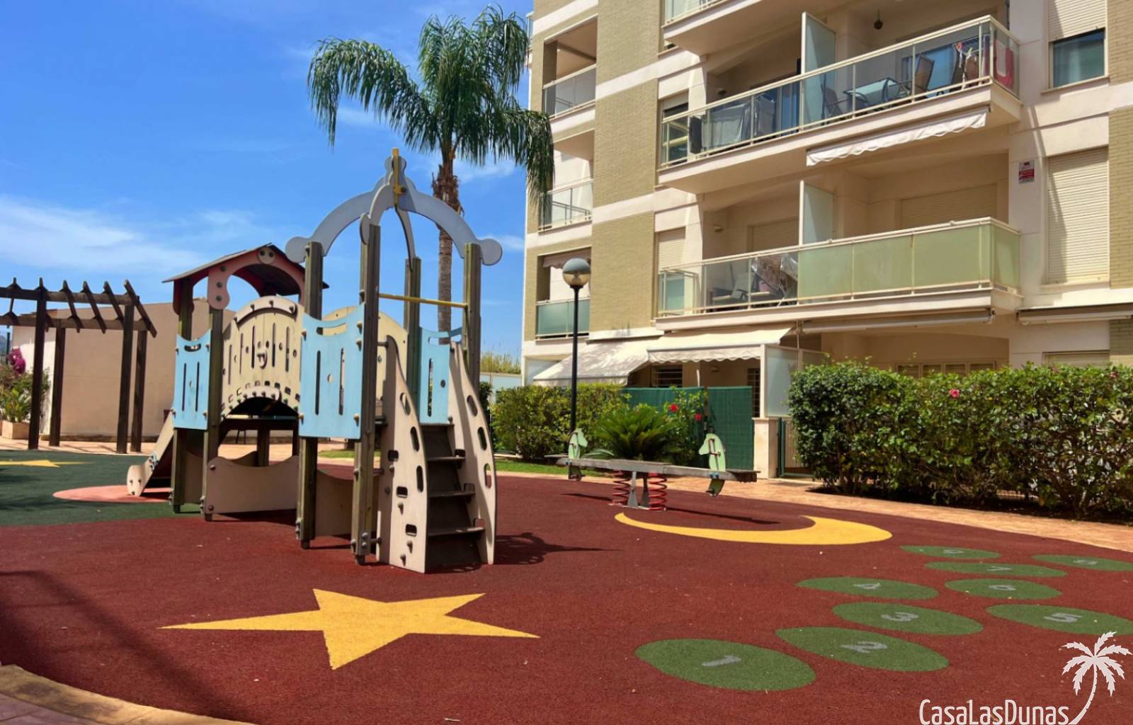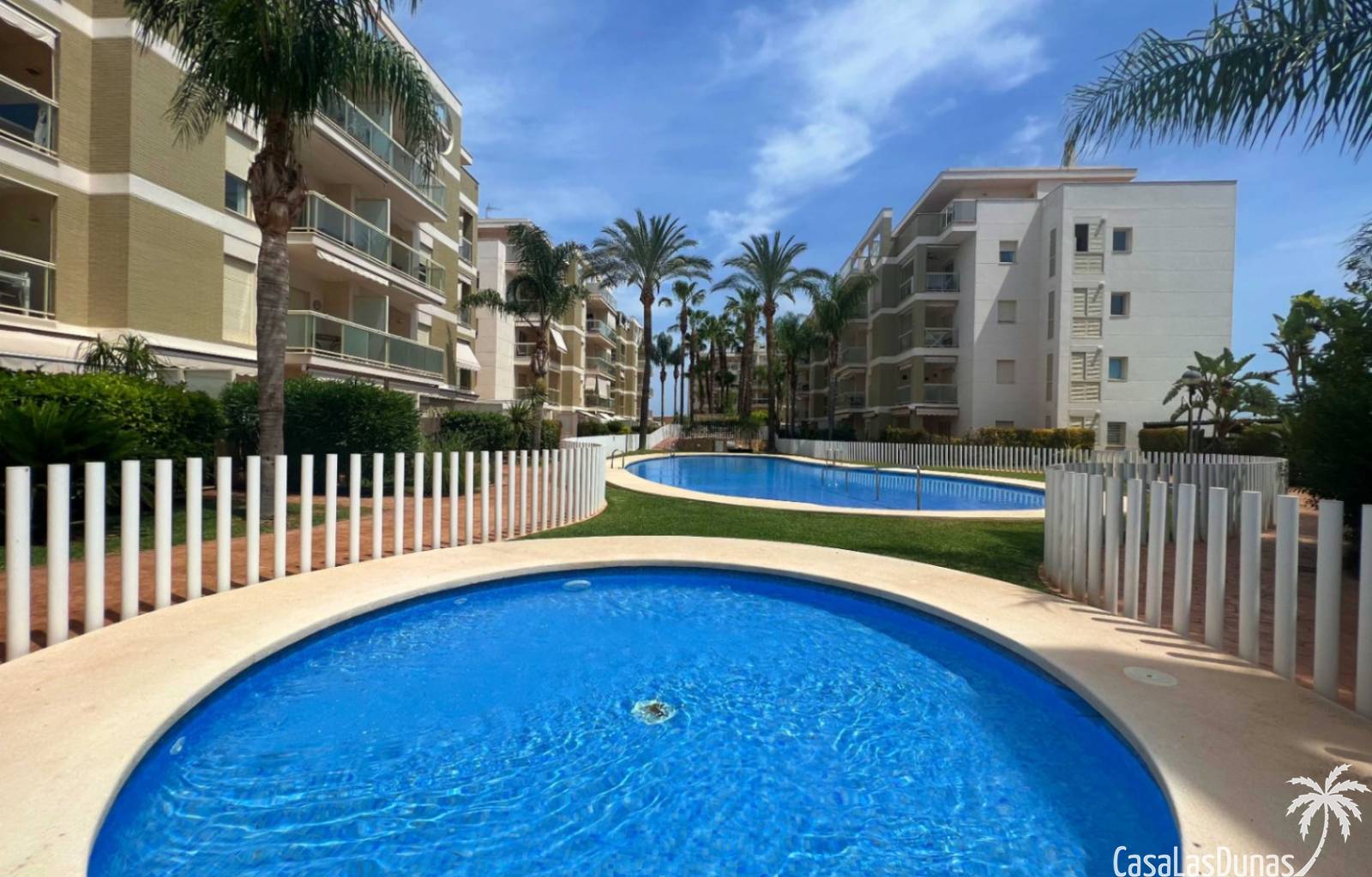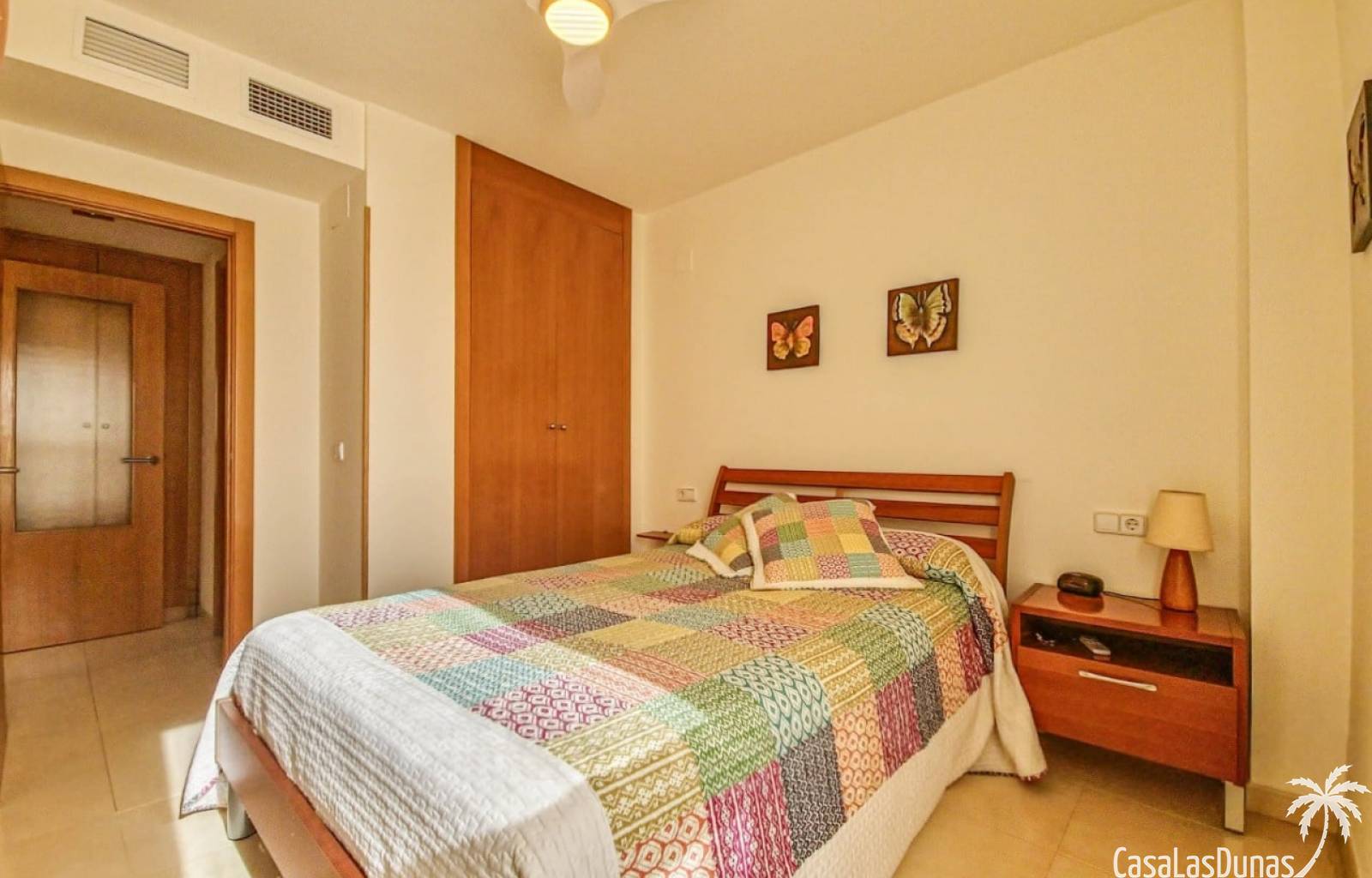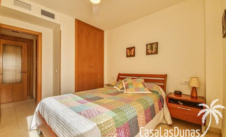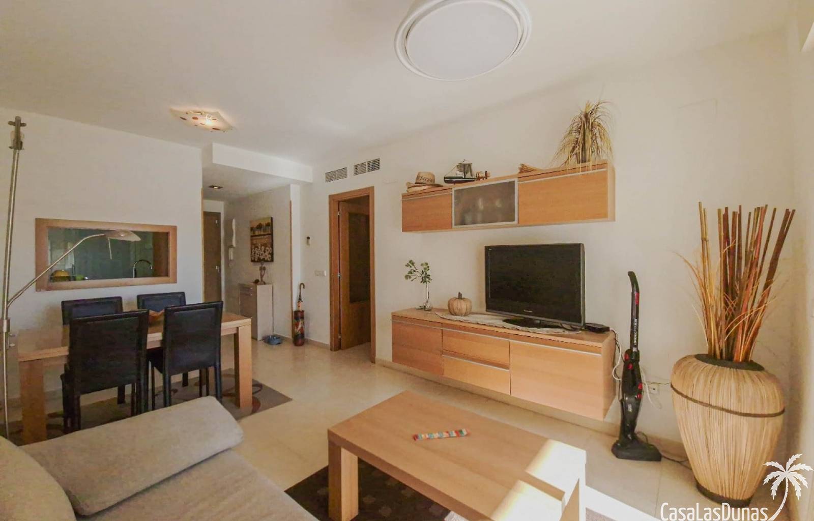 This apartment was built in 2007 in a beautiful complex with large communal garden with swimming pool just 500m from the centre and 1.5km from the beach of Denia. The house has a living/dining room with access to a terrace overlooking the pool, a kitchen, a bedroom and bathroom. There is air conditioning, a private parking space and storage room.