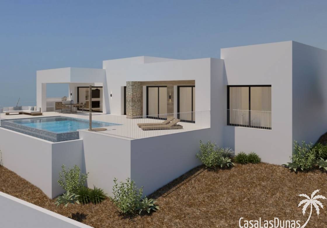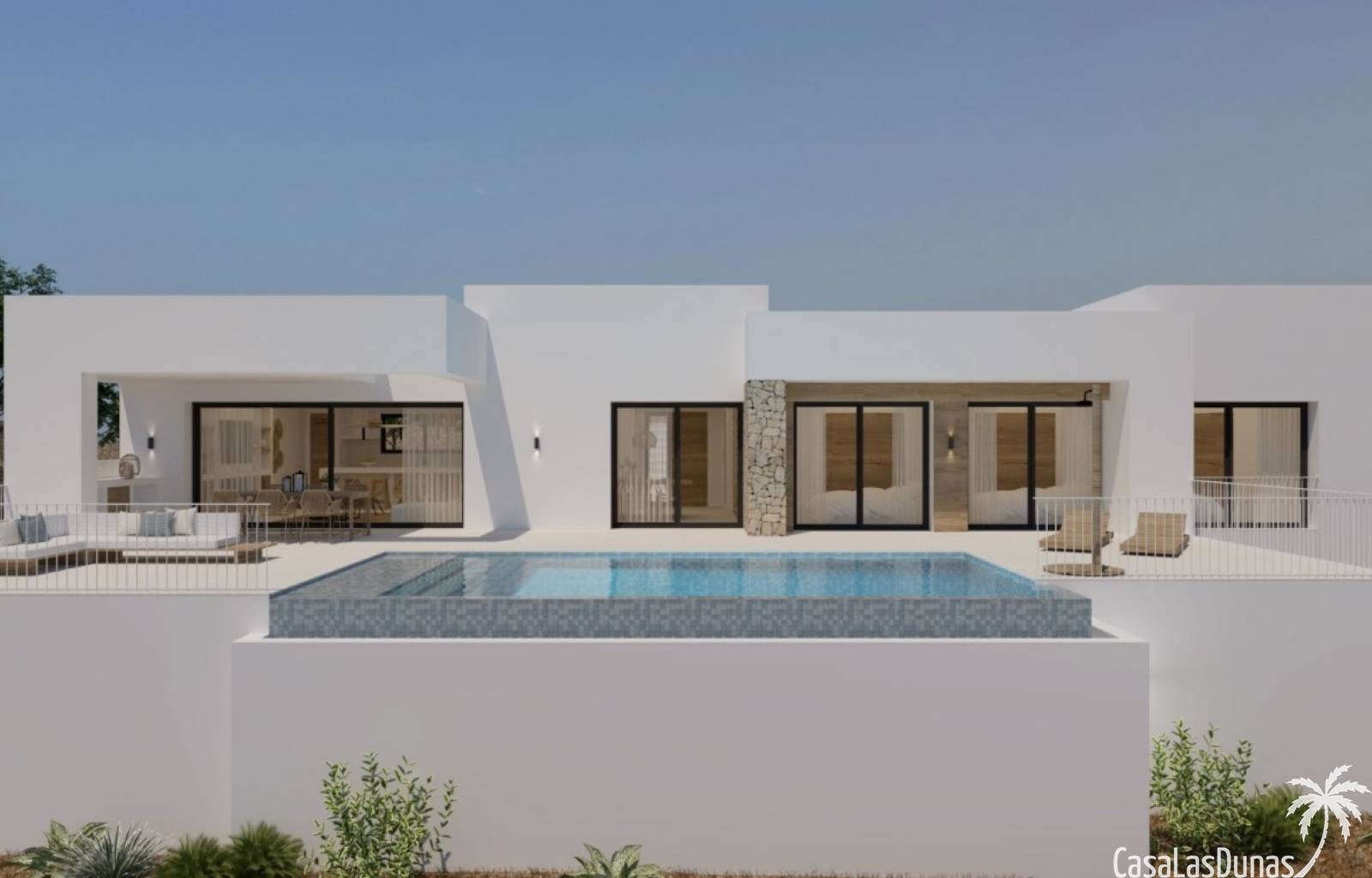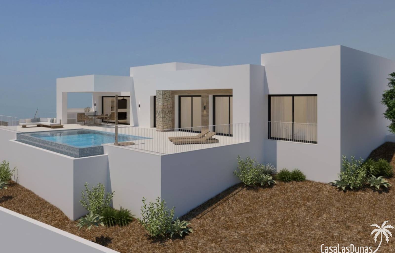This beautiful single-storey newly built villa is located in a quiet location in Alcalali. The villa offers a spacious lounge with dining area, a fully fitted modern kitchen, 2 double bedrooms, a bathroom and the master bedroom with bathroom en suite. In addition, a garage with storage room in the underbuild can be created at an additional cost. From the spacious terrace with pool you can enjoy the beautiful views over the mountainous landscape.
