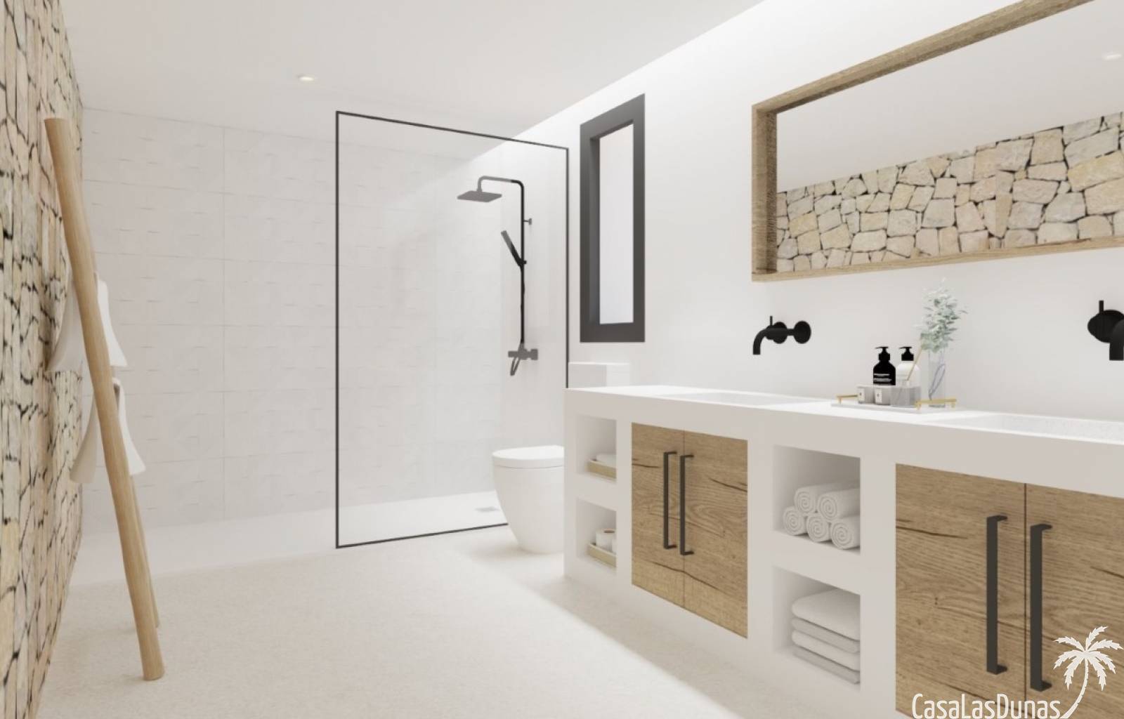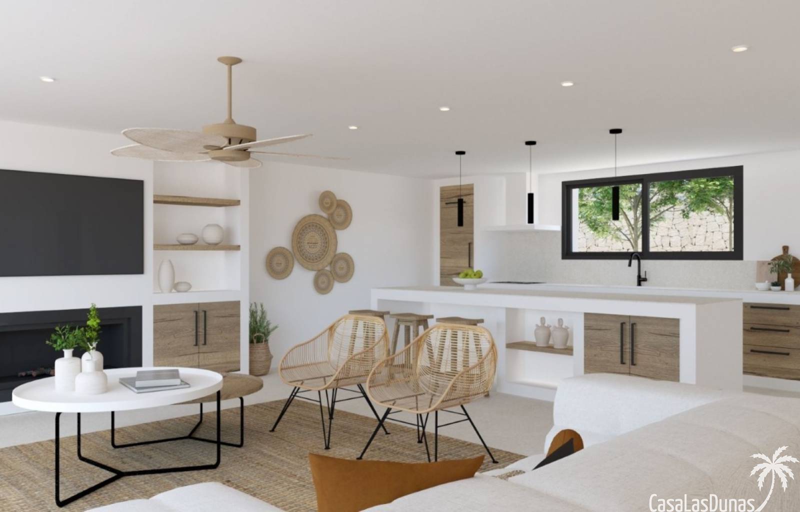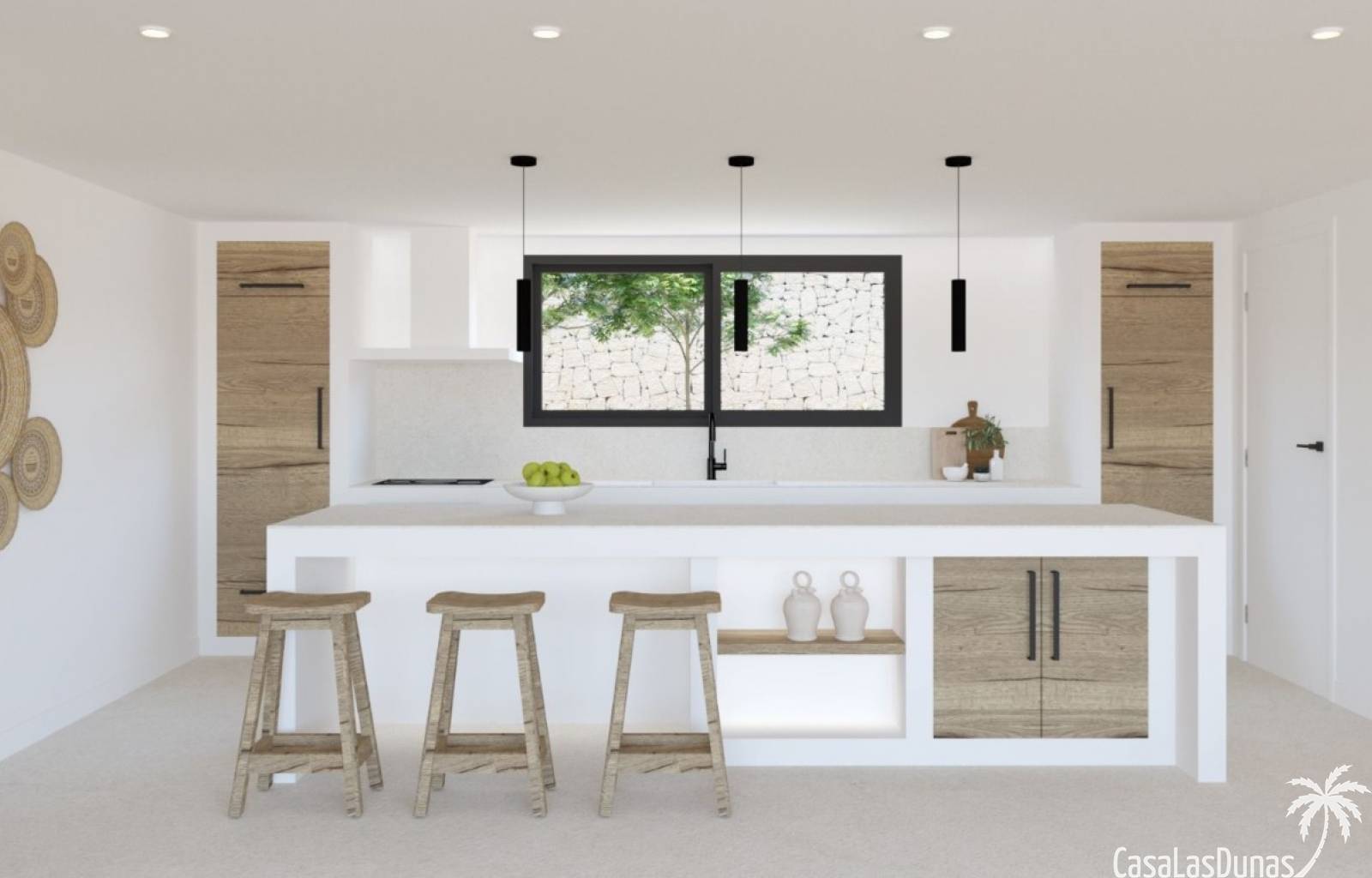 This beautiful single-storey newly built villa is located in a quiet location in Alcalali. The villa offers a spacious lounge with dining area, a fully fitted modern kitchen, 2 double bedrooms, a bathroom and the master bedroom with bathroom en suite. In addition, a garage with storage room in the underbuild can be created at an additional cost. From the spacious terrace with pool you can enjoy the beautiful views over the mountainous landscape.