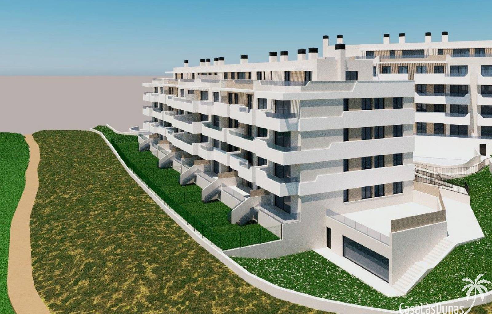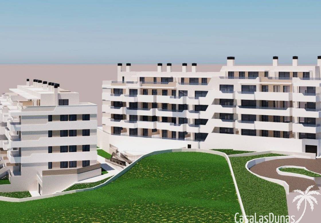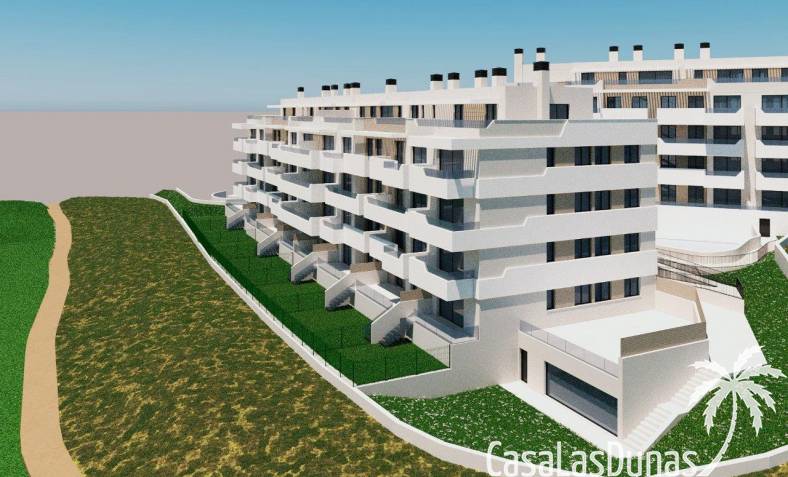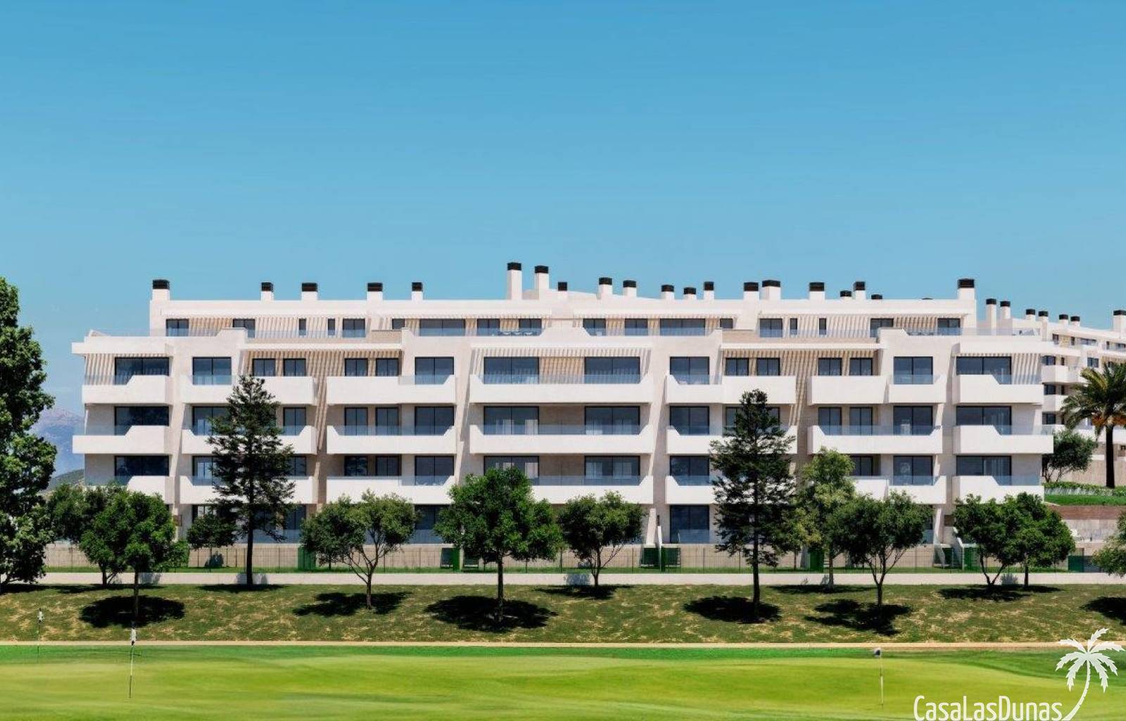 Homes with one, two, three and four bedrooms, spacious living areas, natural light and high-quality finishes, located next to the golf course. The kitchen is equipped with wall and base units, a 2 cm thick quartz worktop and a kitchen front in the same material. A ceramic hob, oven, extractor hood, metal sink and a lever tap. Full ducted air conditioning installation with supply grille in the living room and bedrooms. The hot water for the home is produced using a centralised aerothermal system. Enjoy fully equipped common areas, designed for comfort and well-being: swimming pool, spa, gym, garden and relaxation areas, children's play area, common areas to enjoy with family or friends. You can choose from the following additional options for a fee: A modernised kitchen with all high-quality appliances. Jacuzzi installation on the penthouse floor and on the ground floor.