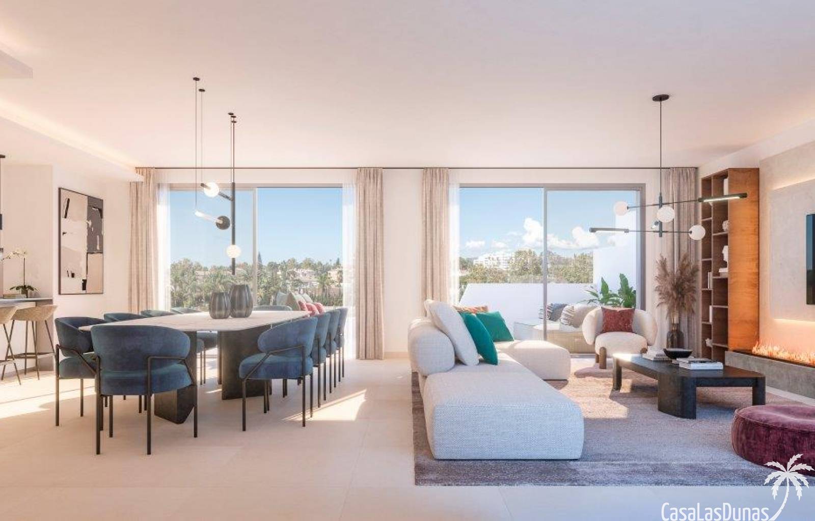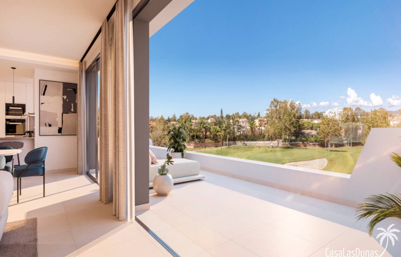 The architecturally designed development comprises 34 apartments and penthouses with 2, 3, and 4 bedrooms, situated on a golf course, offering stunning sunsets from their spacious terraces, making it a true paradise for golf enthusiasts. Each home features the comfort and elegance of large windows, combining open and bright spaces with a variety of decorative options, allowing you to relax in one of the most privileged settings in the world. The kitchens are superbly equipped with high-quality Siemens appliances or equivalent, solid-surface countertops, and sleek stainless steel faucets. The communal areas include a swimming pool, gym, and co-working space, along with carefully landscaped gardens with automated irrigation systems. The fully secure development includes pre-installed security cameras and accessible spaces for all residents. All this, nestled in a setting surrounded by nature. The perfect choice for those seeking quality and exclusivity in their home. This luxury residential area is located in Guadalmina, Marbella, one of the most spectacular corners of the Costa del Sol, near San Pedro de Alcántara and Puerto Banús.
