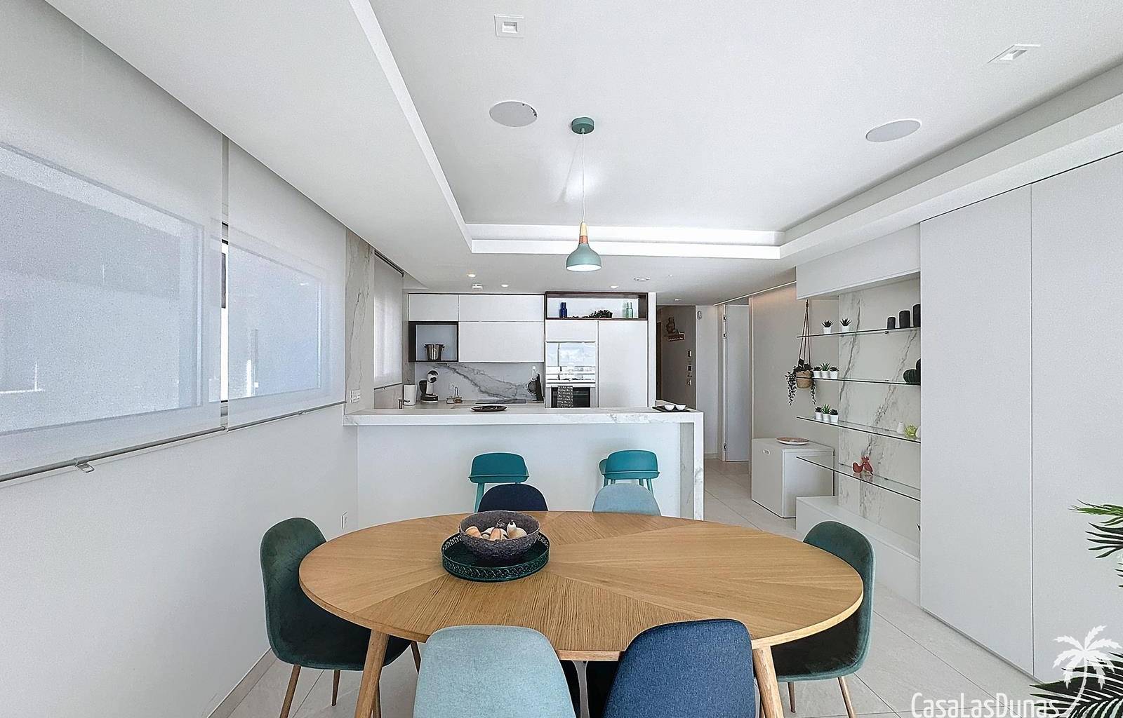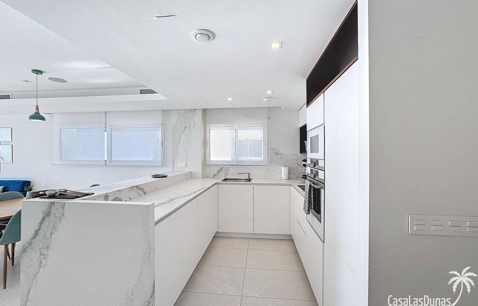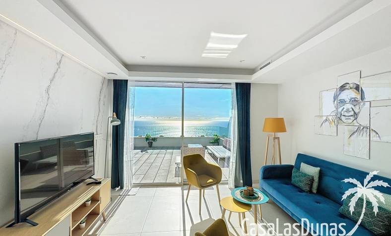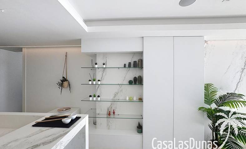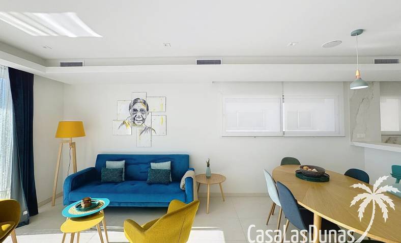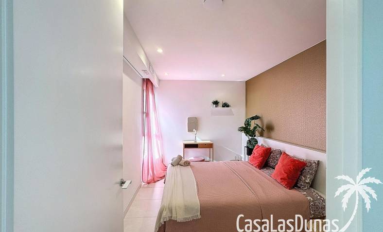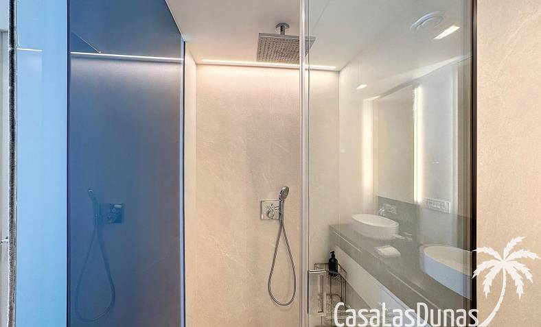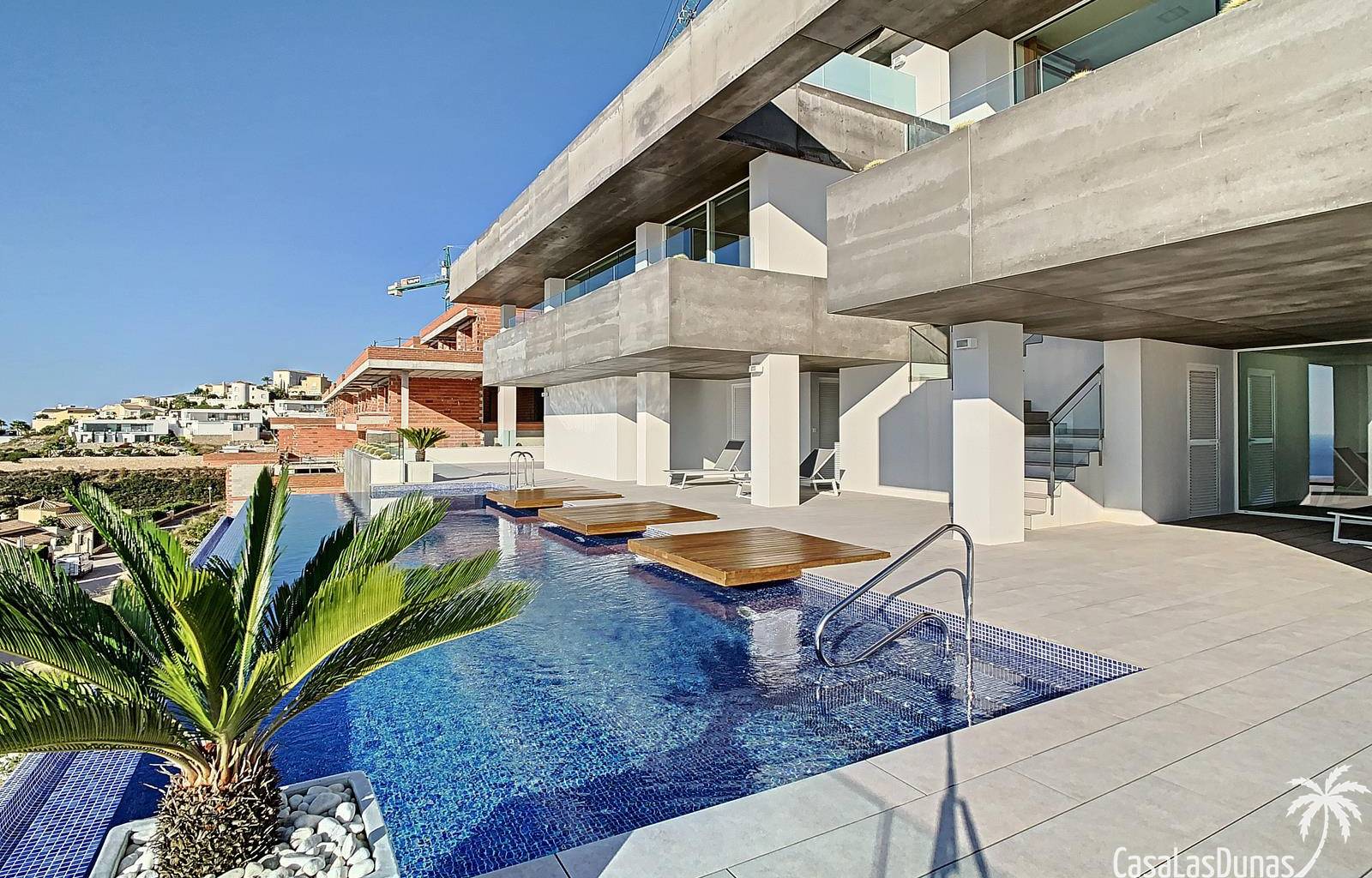 This luxury apartment on the Cumbre offers stunning views of the Mediterranean Sea and was built in 2020 in a modern complex with both indoor and outdoor pools. The property boasts 106m² of living space and a generous 50m² of terrace. The apartment comprises an entrance hall, a kitchen with a utility/storage room, a spacious living/dining room, two guest bedrooms with a separate bathroom, and a spacious master bedroom with an en-suite bathroom. The apartment boasts an optimal layout, with access to the front terrace from both the living area and the master bedroom. A 6m² storage room and a 13m² covered parking space are also included.