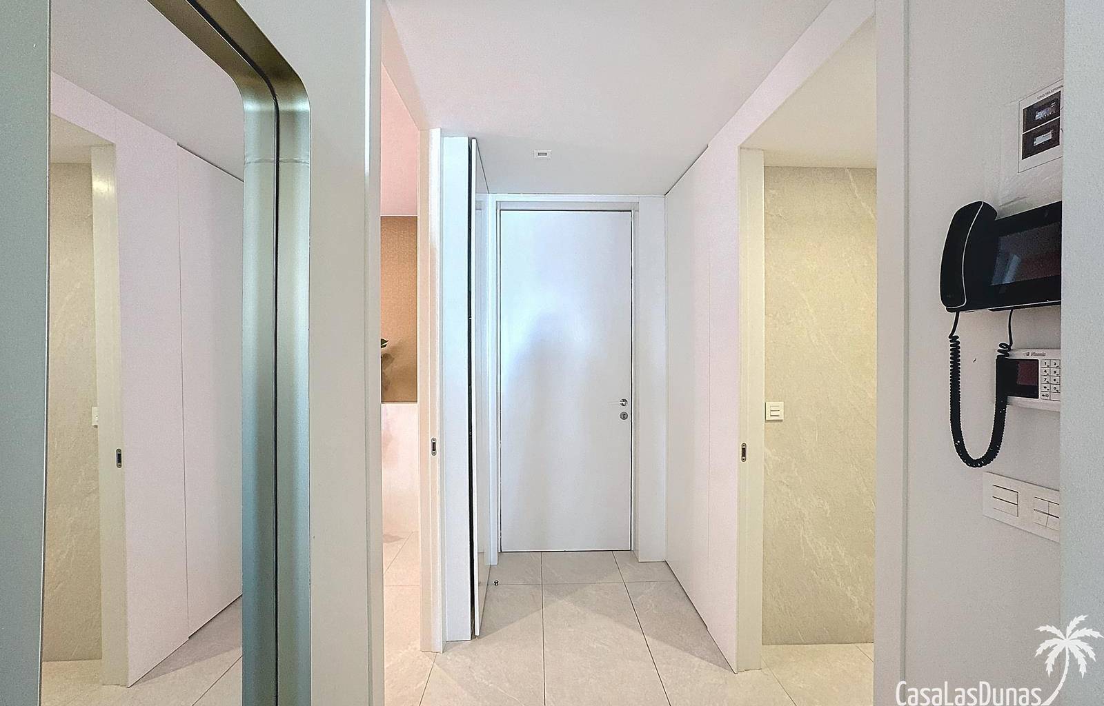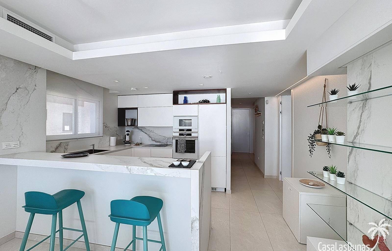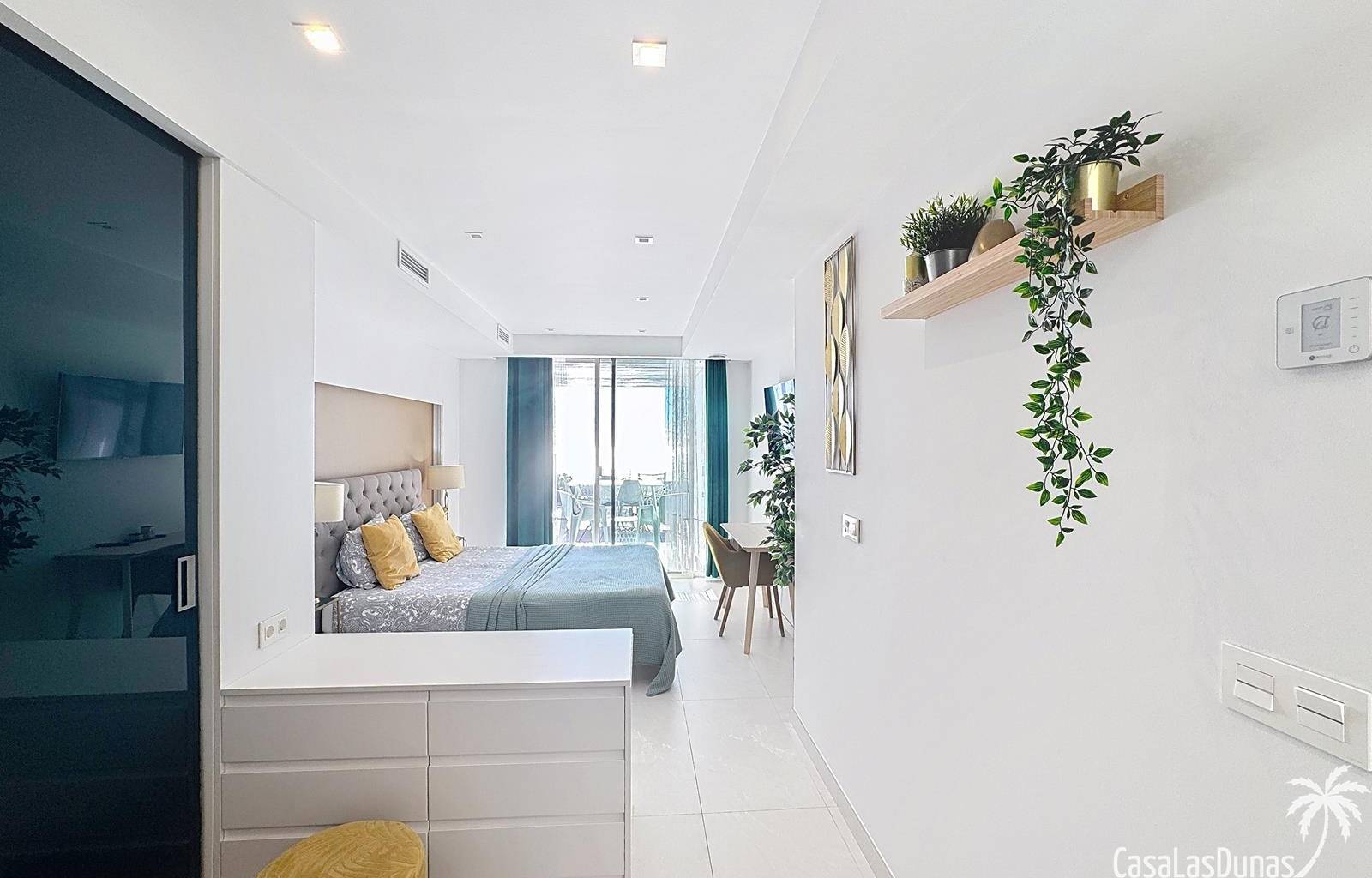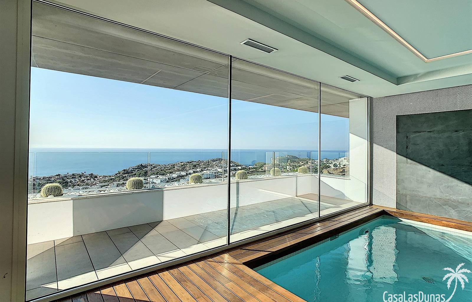 This luxury apartment on the Cumbre offers stunning views of the Mediterranean Sea and was built in 2020 in a modern complex with both indoor and outdoor pools. The property boasts 106m² of living space and a generous 50m² of terrace. The apartment comprises an entrance hall, a kitchen with a utility/storage room, a spacious living/dining room, two guest bedrooms with a separate bathroom, and a spacious master bedroom with an en-suite bathroom. The apartment boasts an optimal layout, with access to the front terrace from both the living area and the master bedroom. A 6m² storage room and a 13m² covered parking space are also included.