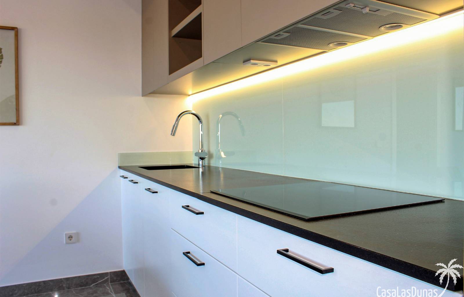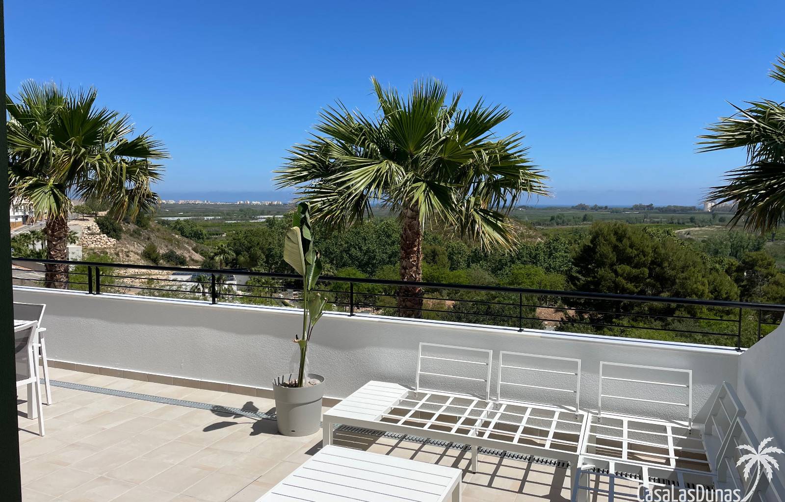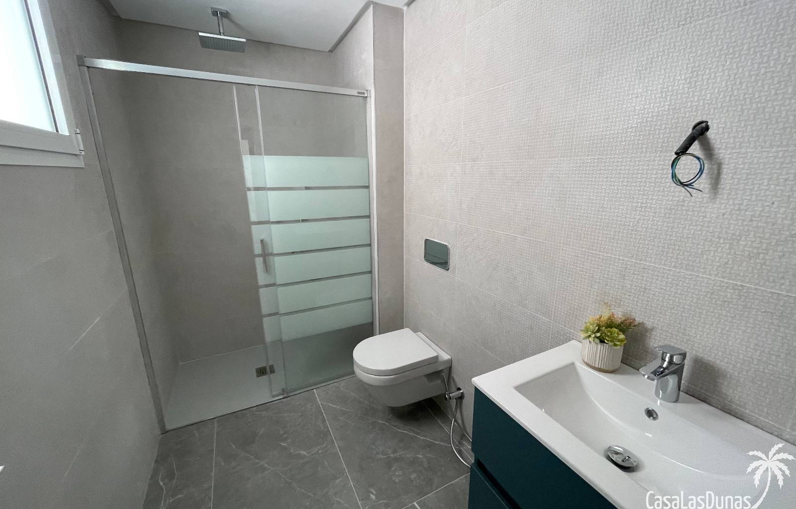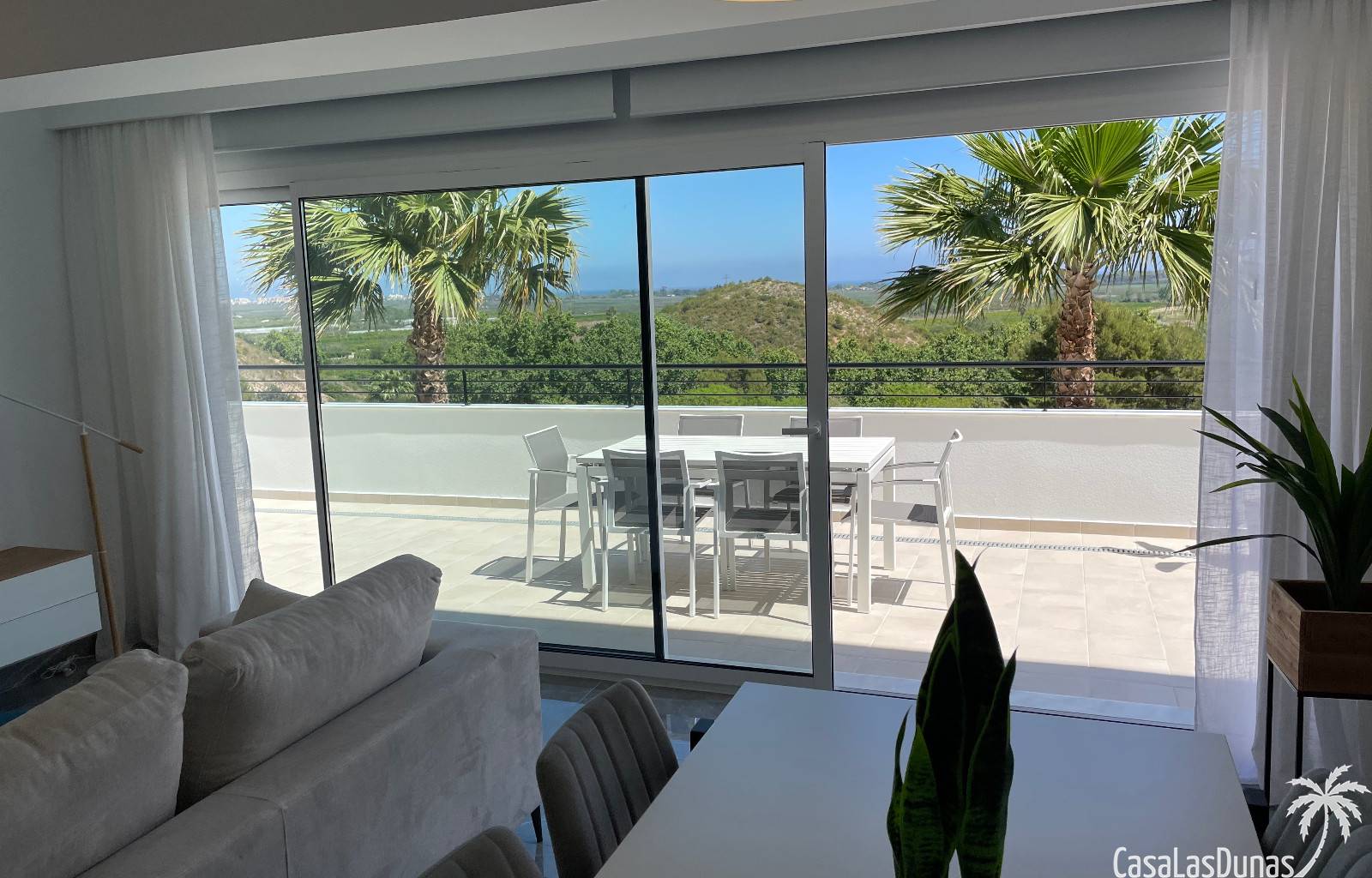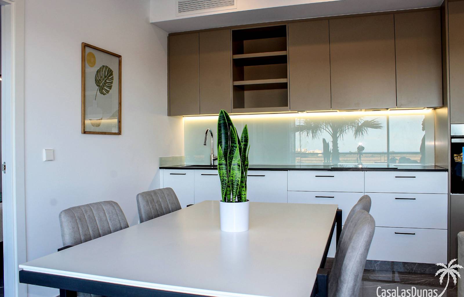 This modern three-bedroom apartment currently under construction offers a spacious, open-plan living area with large sliding doors leading to a terrace with panoramic views of the coastline. The apartment boasts an ideal layout with a bright, open-plan living area featuring an open-plan kitchen and access to the front terrace. It comprises two bedrooms and two bathrooms, with the master bedroom also offering sea views and access to the terrace. The complex is less than a 10-minute drive from the beach and features beautiful communal gardens with several swimming pools and a fitness room. The apartments are sold with a parking space and storage unit in the underground garage.